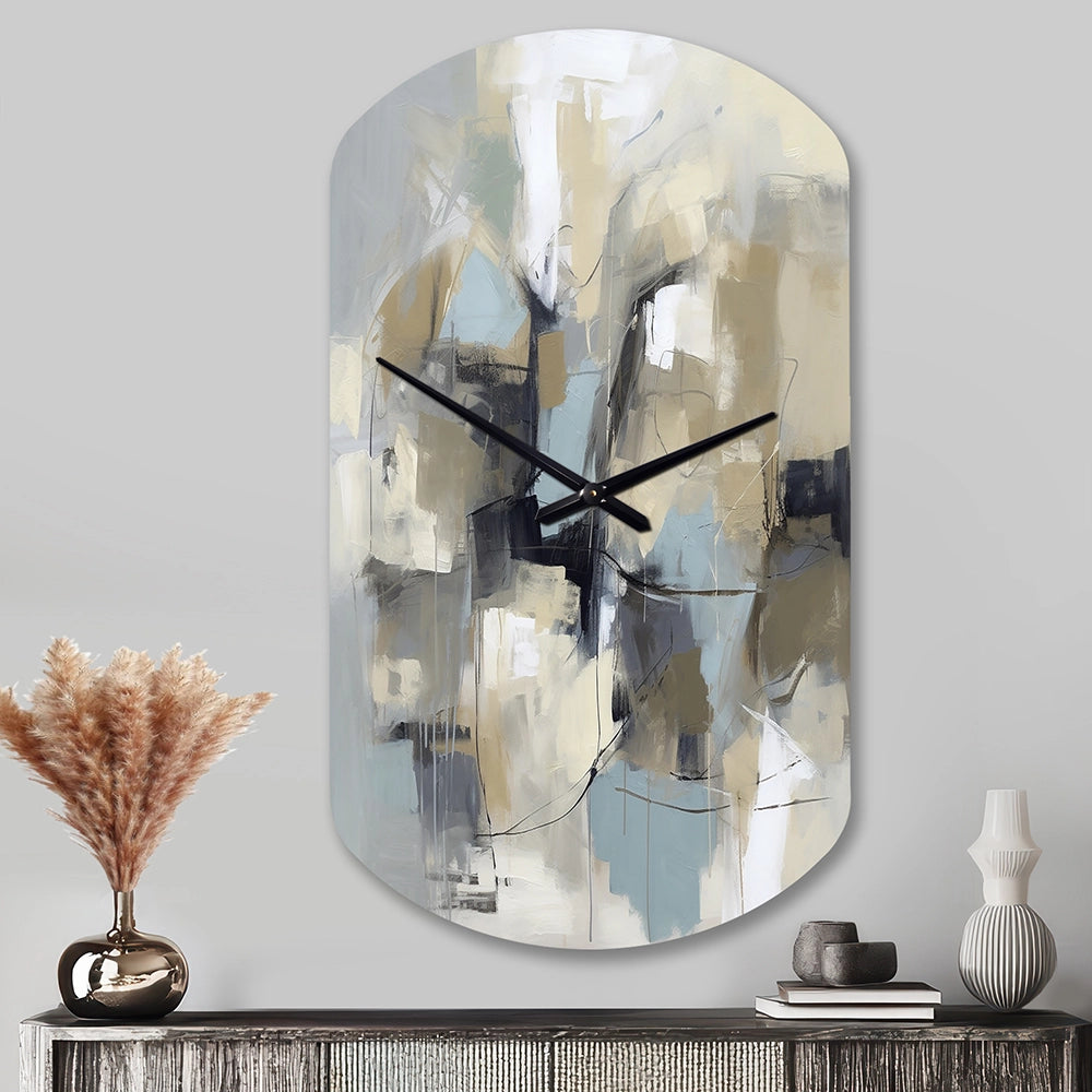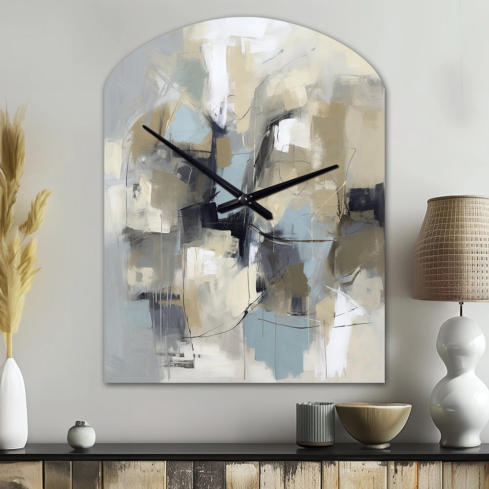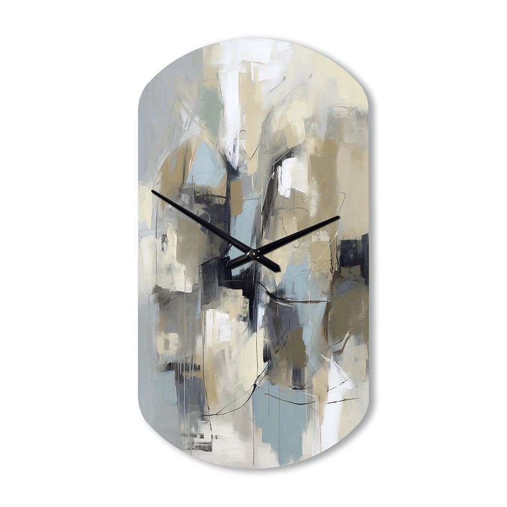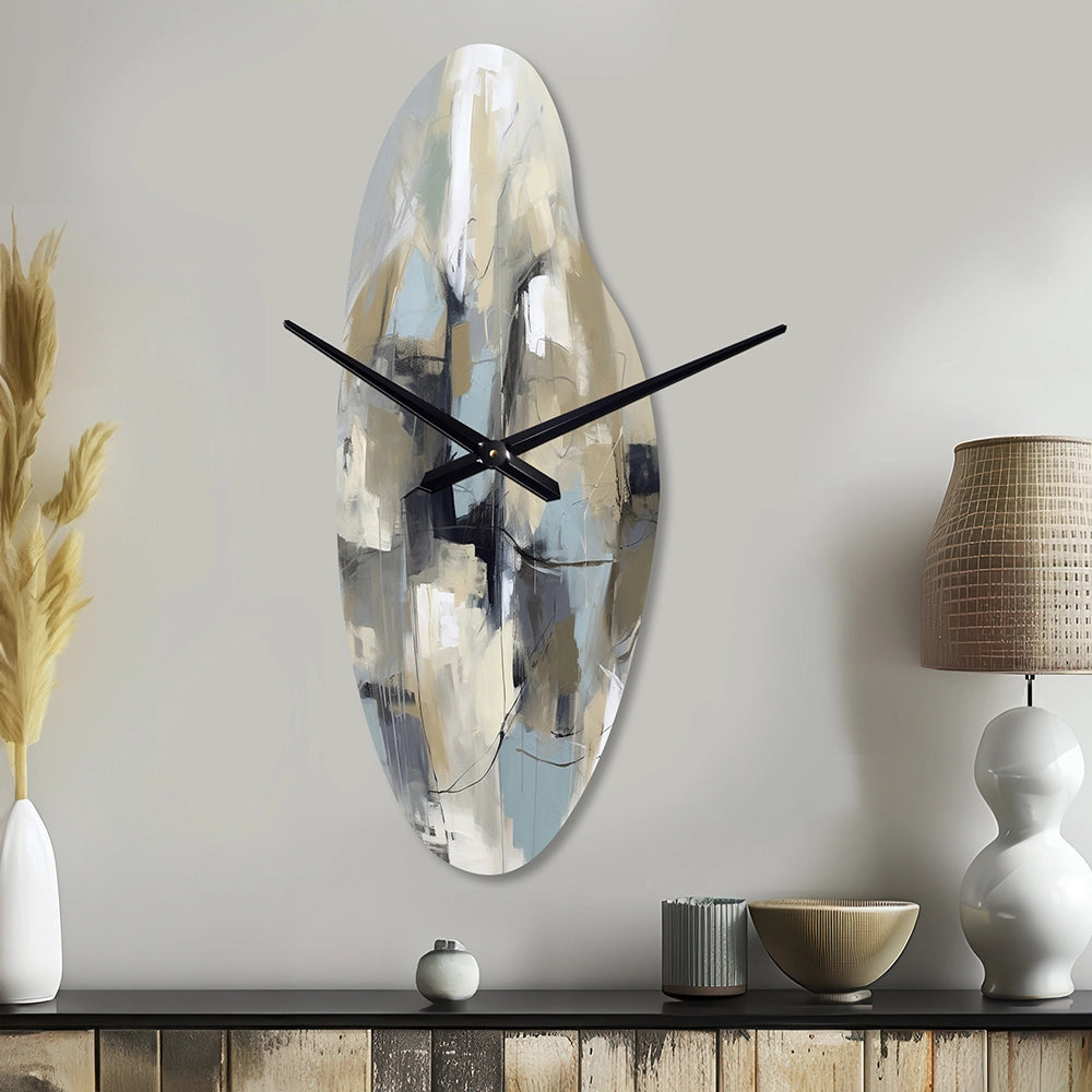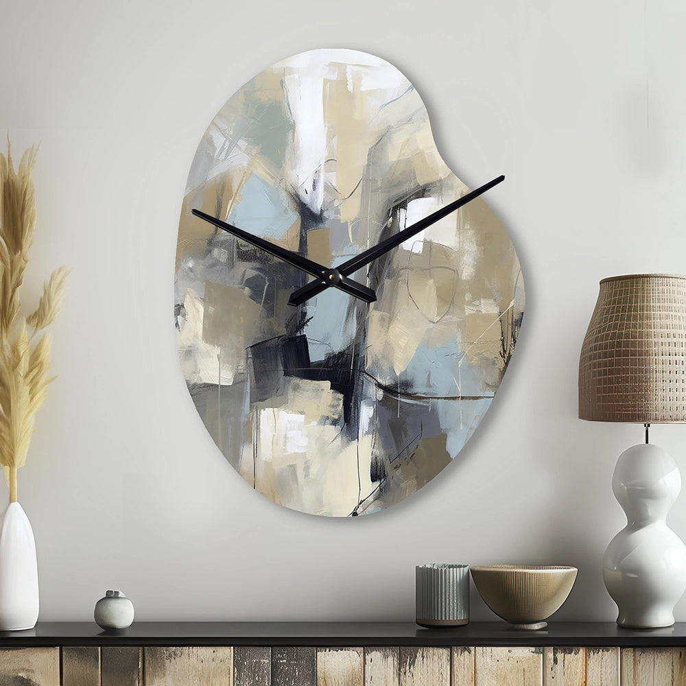 Beige And Grey Unbounded Creativity I - Asymmetric Metal Wall Clock