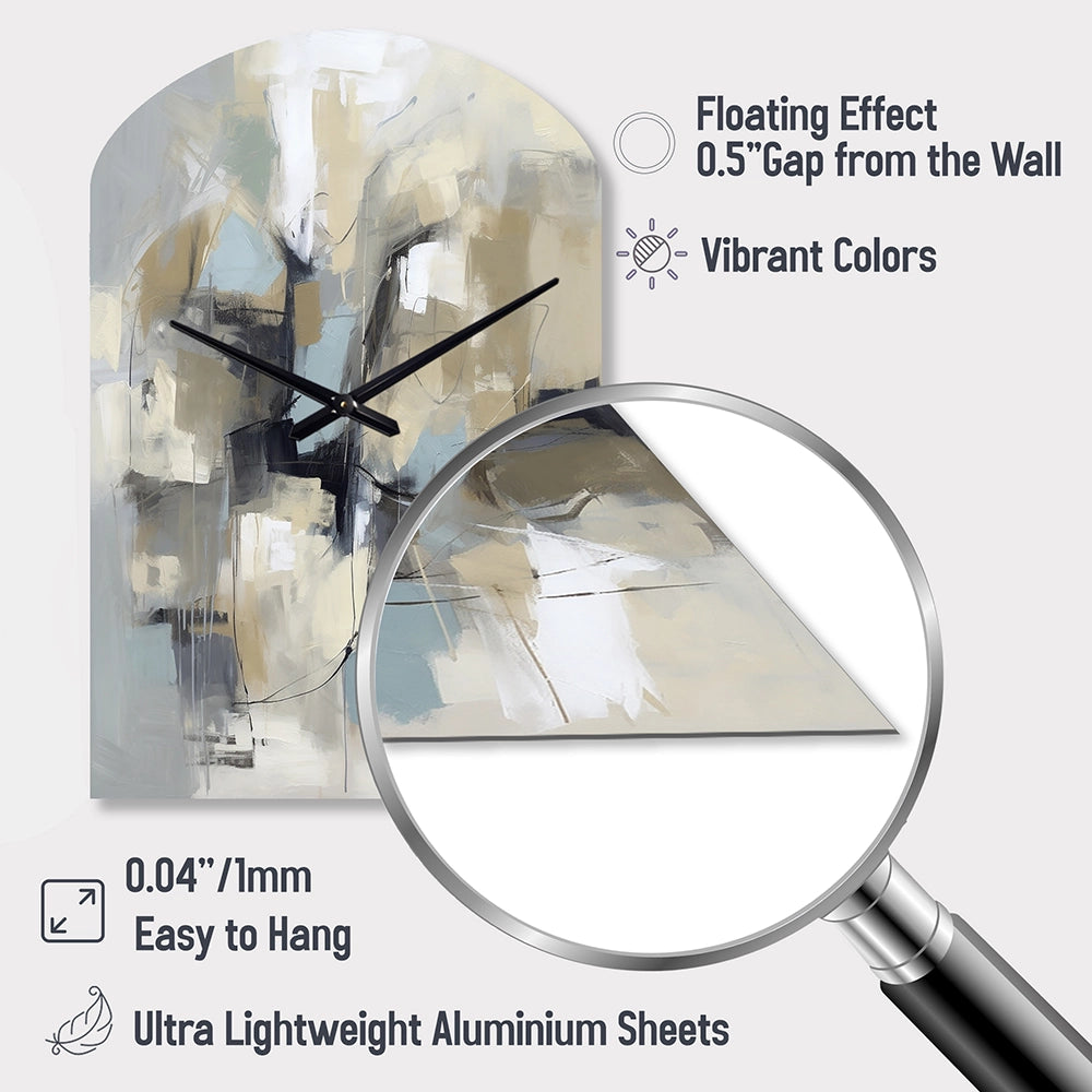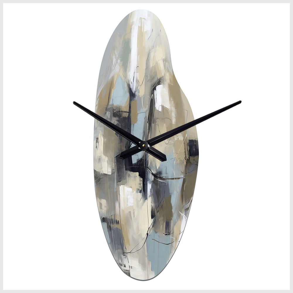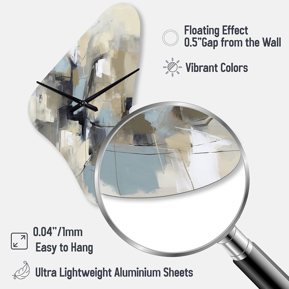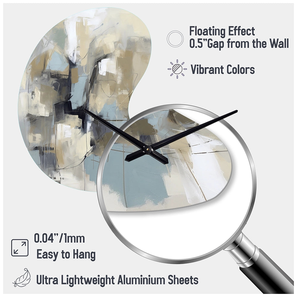 Elevate your space with this Modern asymmetrical metal wall Clock. Our handcrafted metal wall sculptures combine modern design with artistic elegance, creating a striking focal point in any room. This asymmetric metal wall Clock features unique, irregular shapes that bring dynamic movement and depth to your walls. Perfect for Abstract decor, these Beige irregular metal wall sculptures are printed on aluminum panel, with extra gloss ensuring long-lasting beauty. Ideal for living rooms, offices decor, or entrance, this statement piece adds a bold, Abstract touch to any decor.