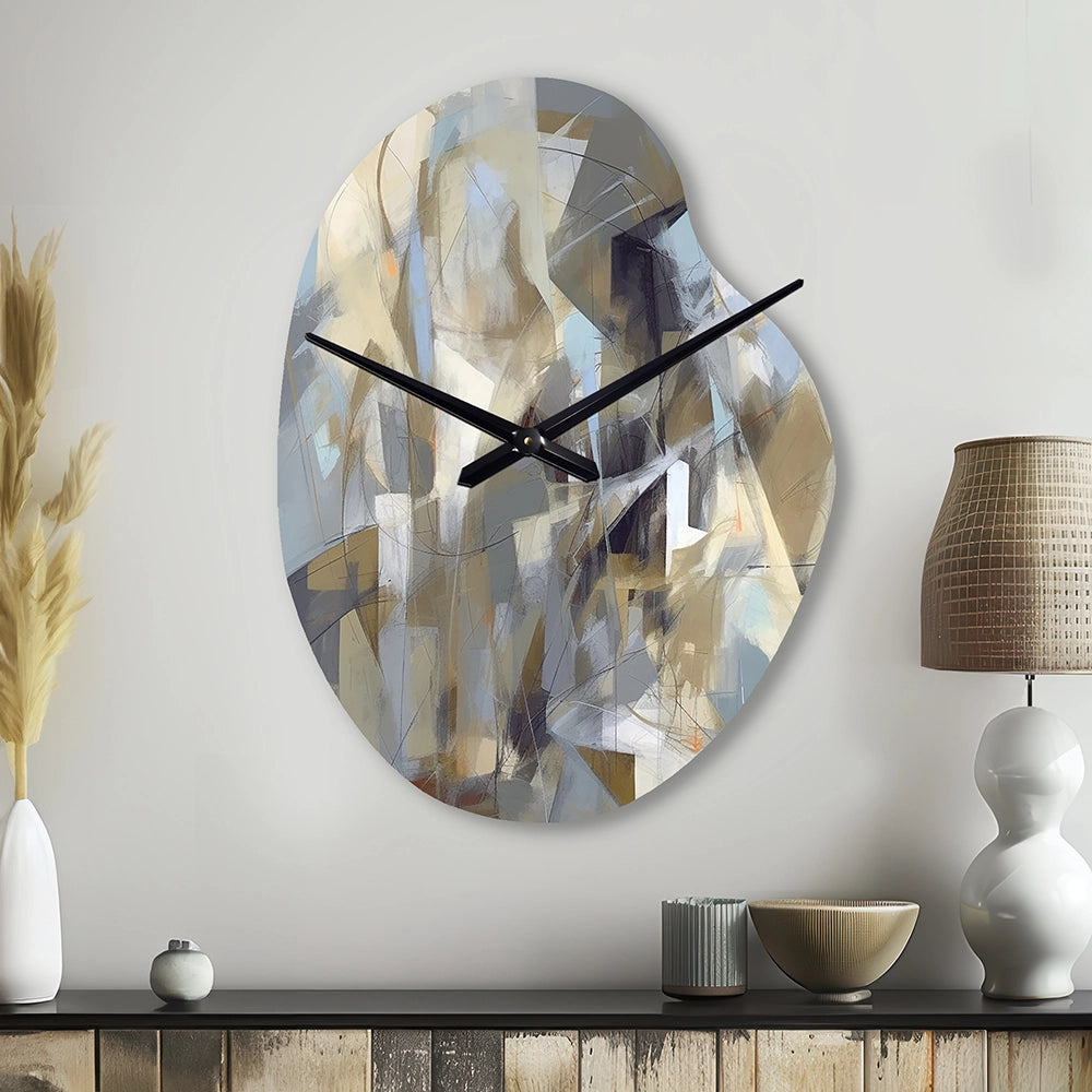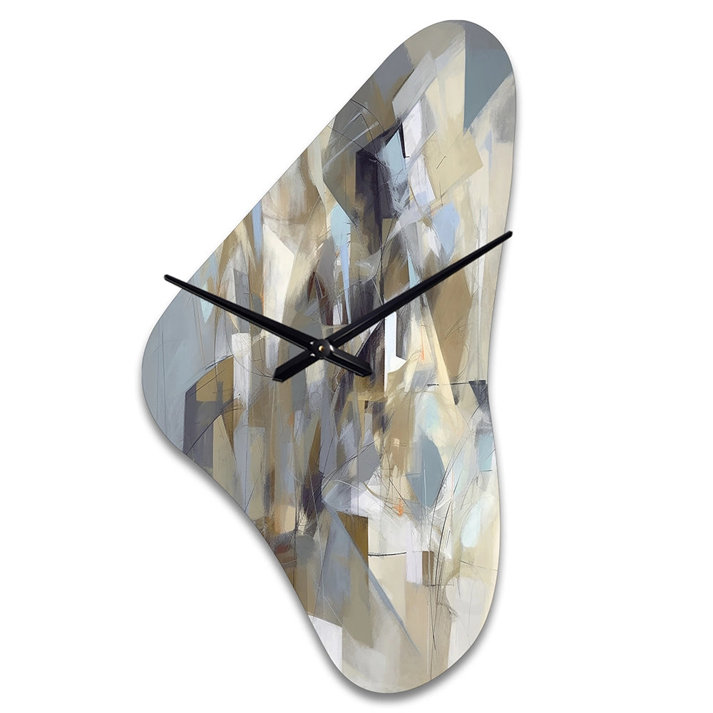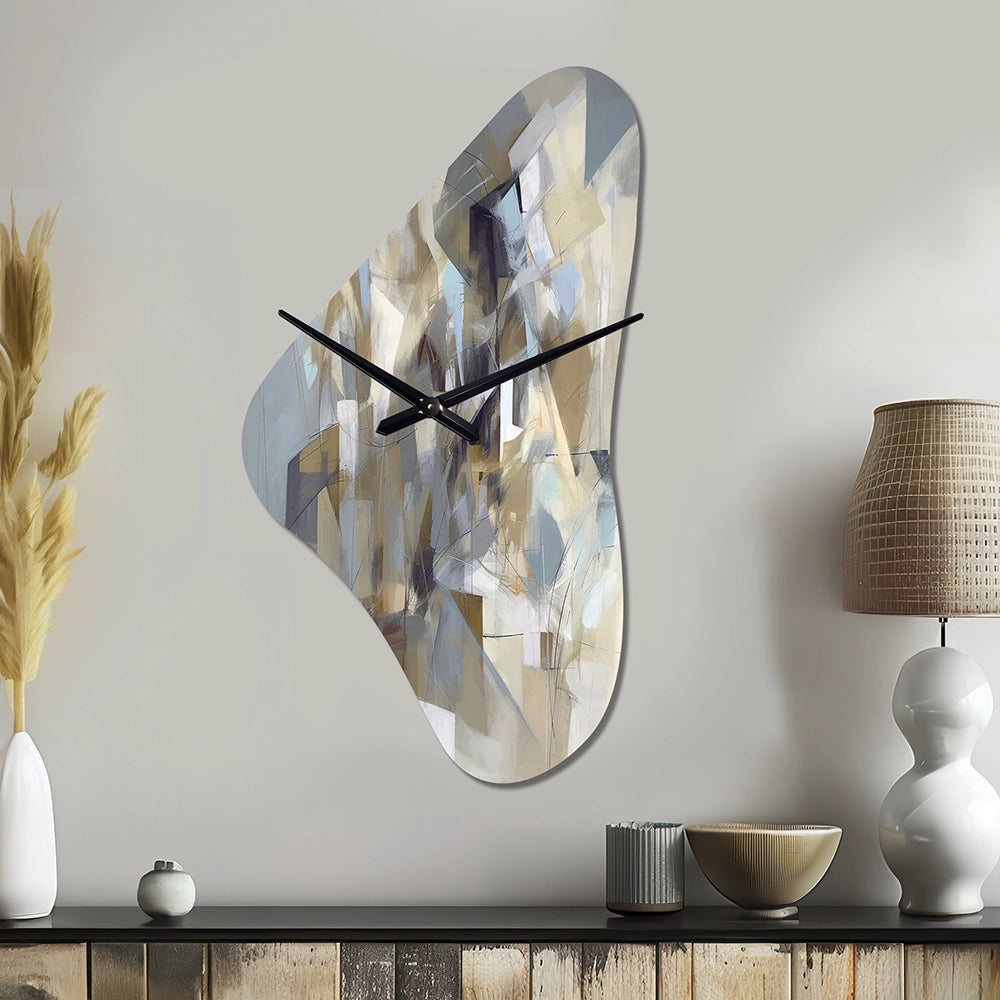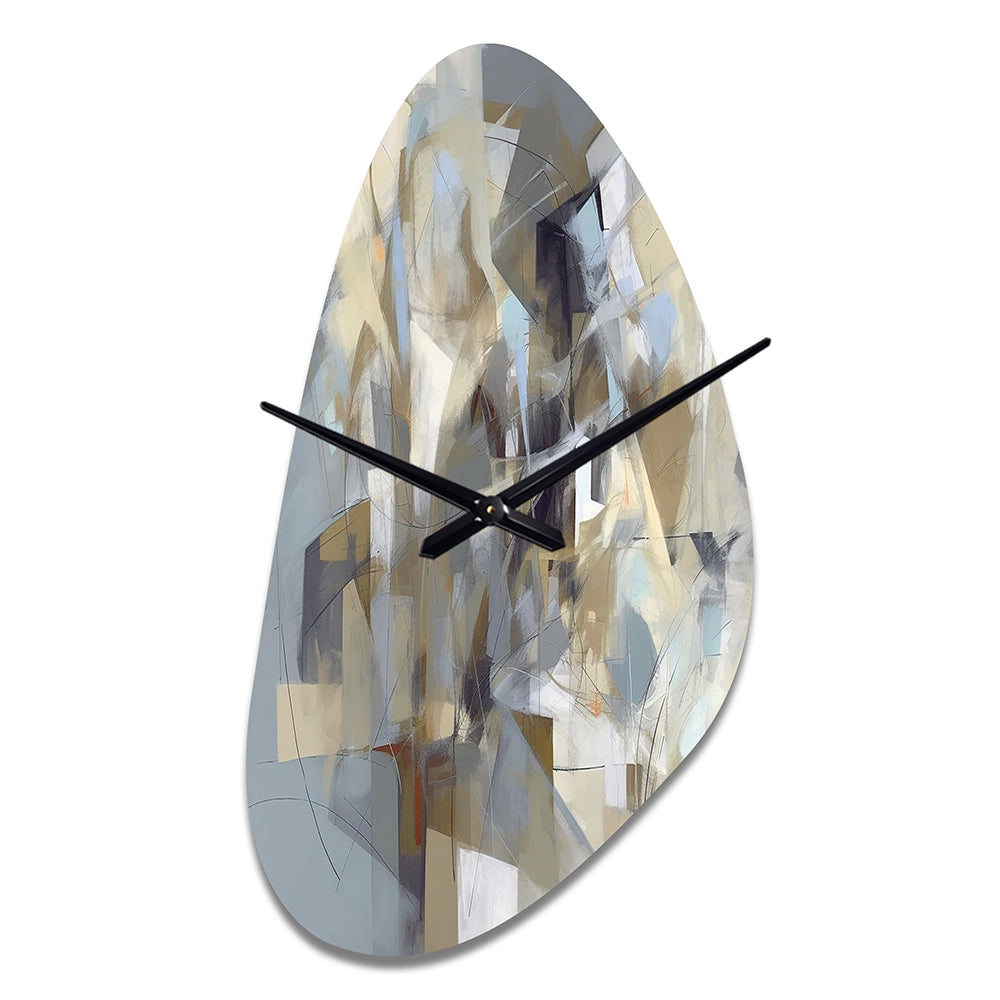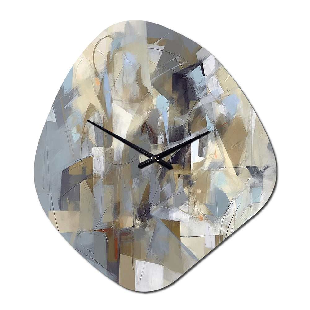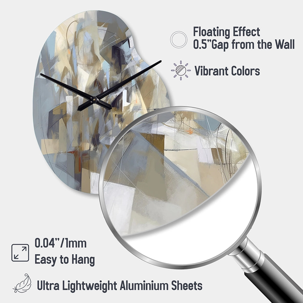 Beige And Grey Unbounded Creativity III - Asymmetric Metal Wall Clock