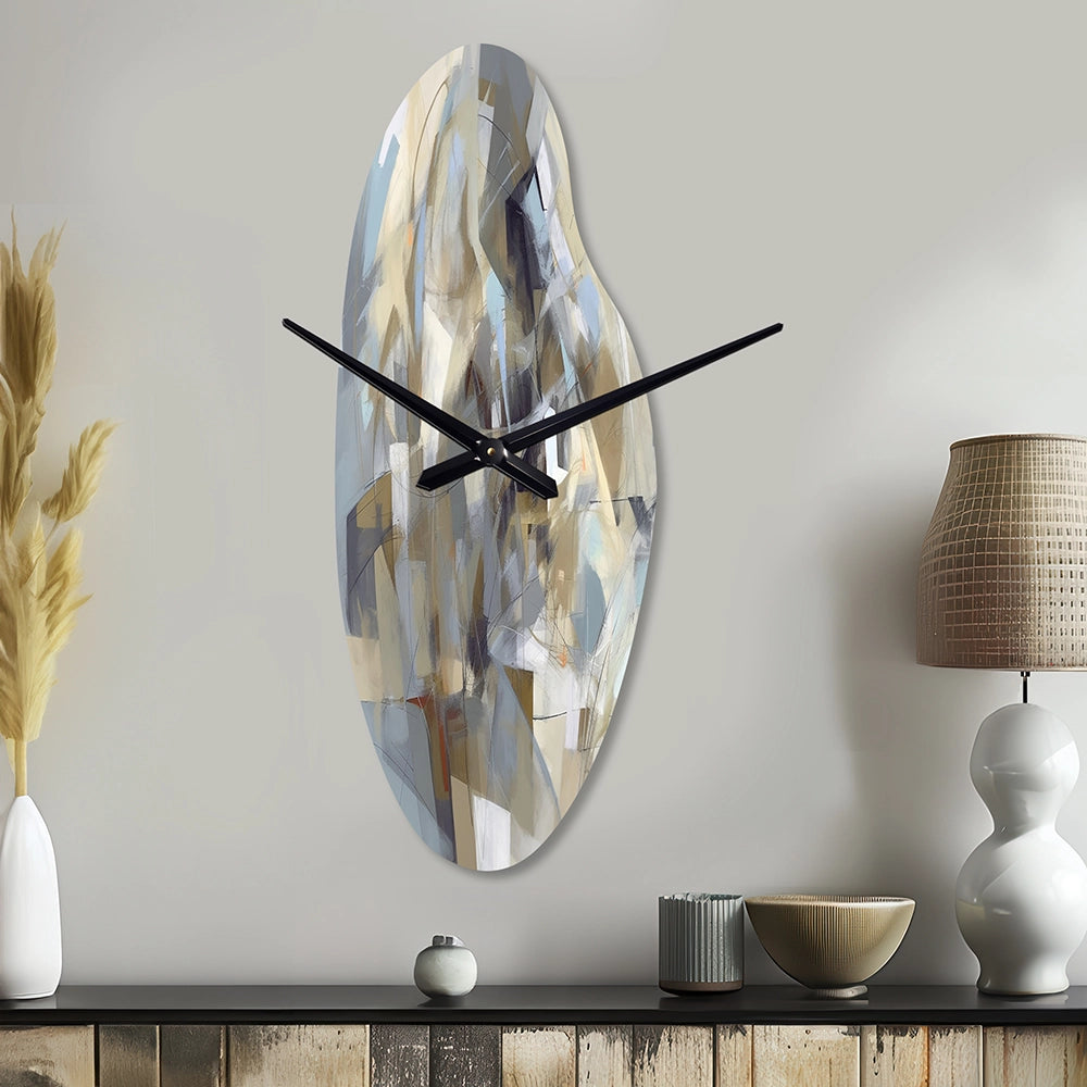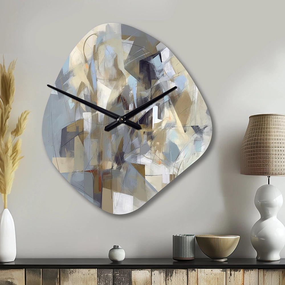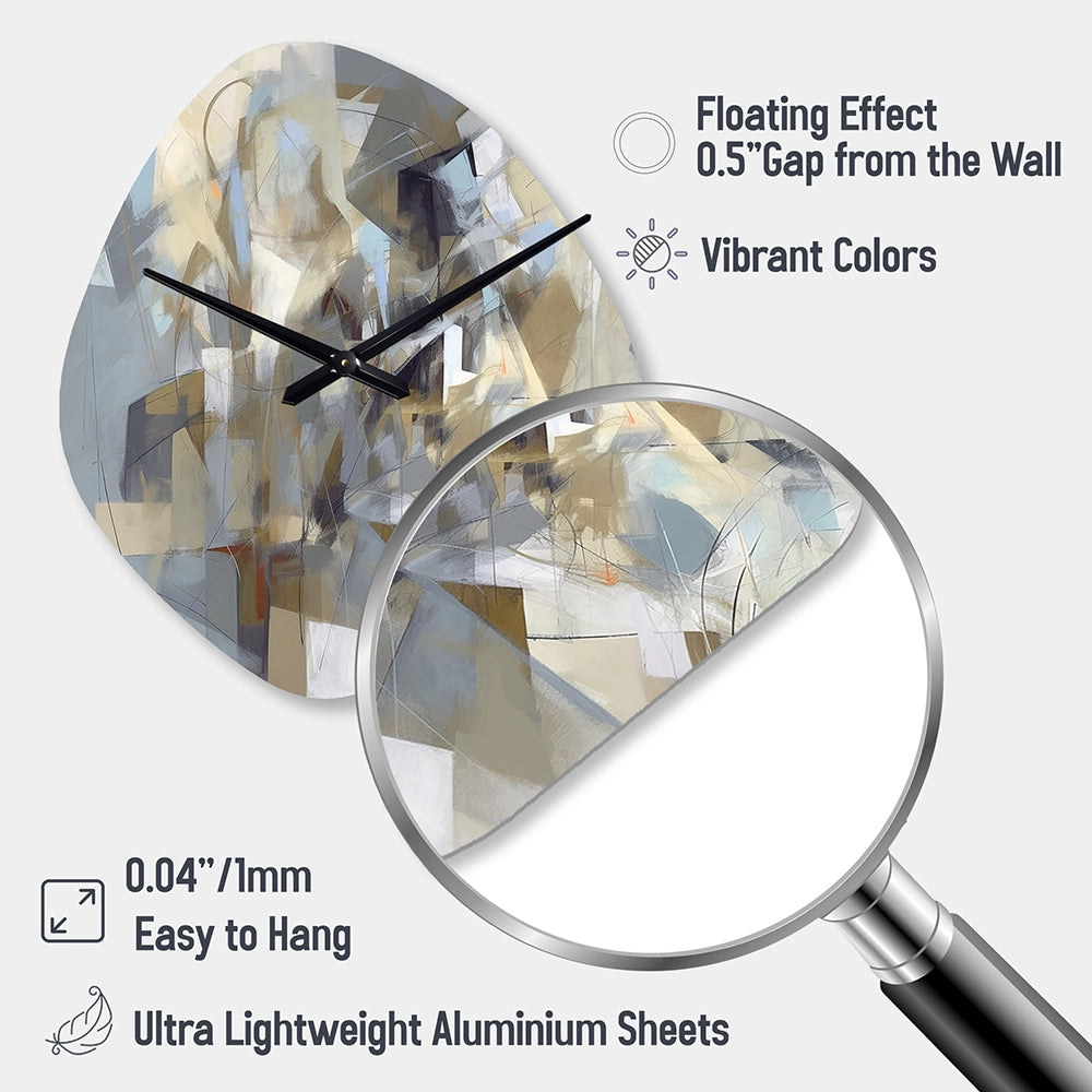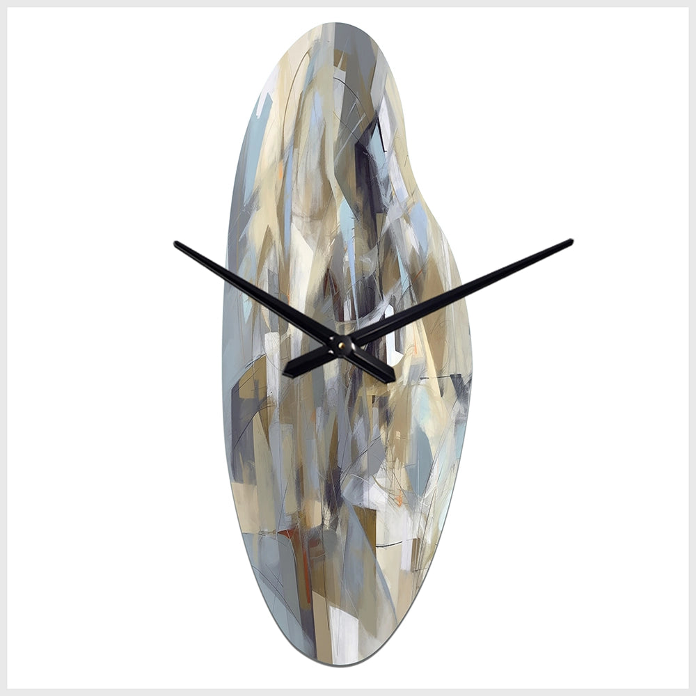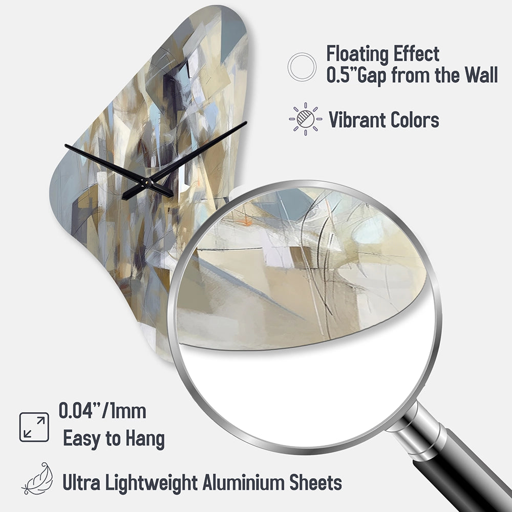 Beige And Grey Unbounded Creativity III - Asymmetric Metal Wall Clock