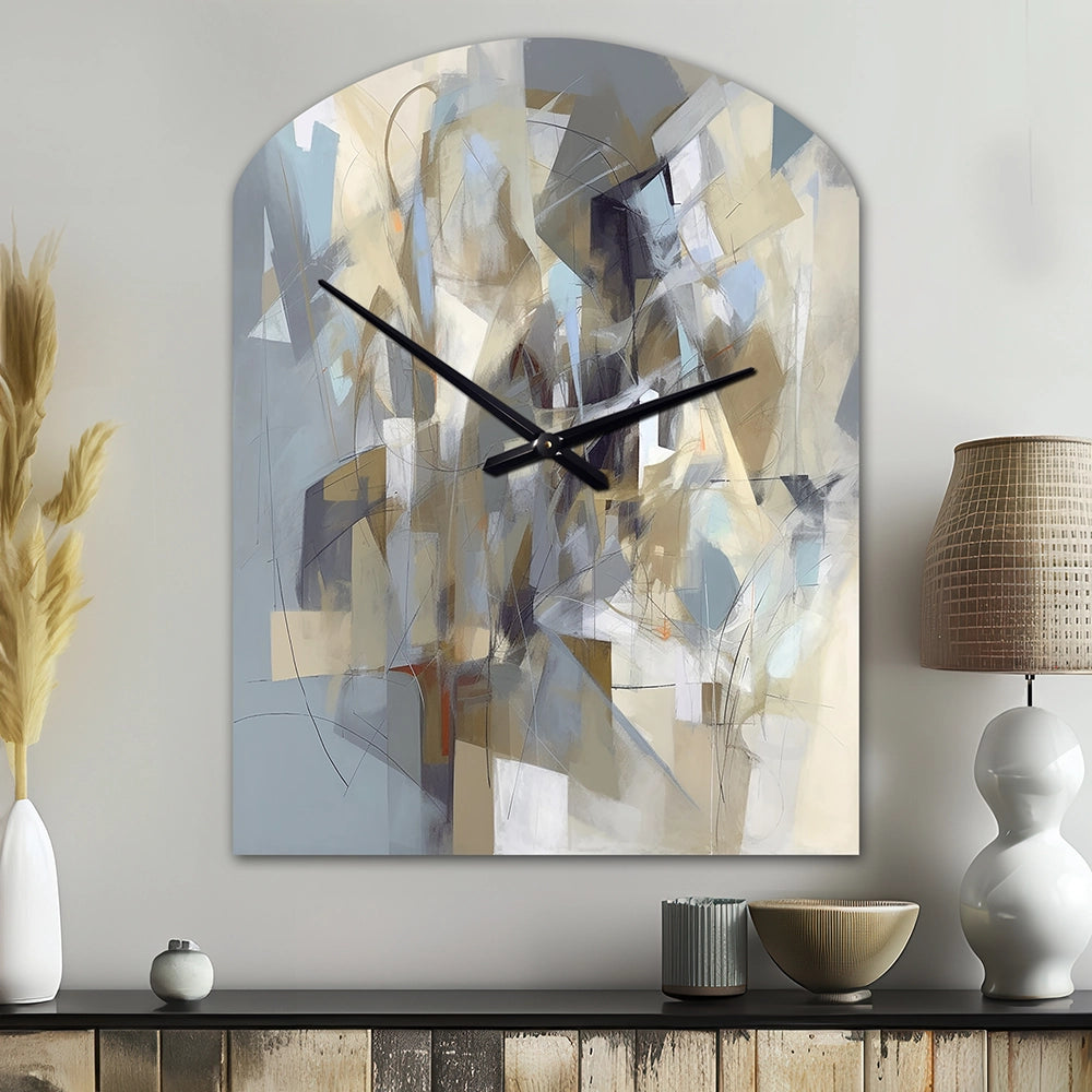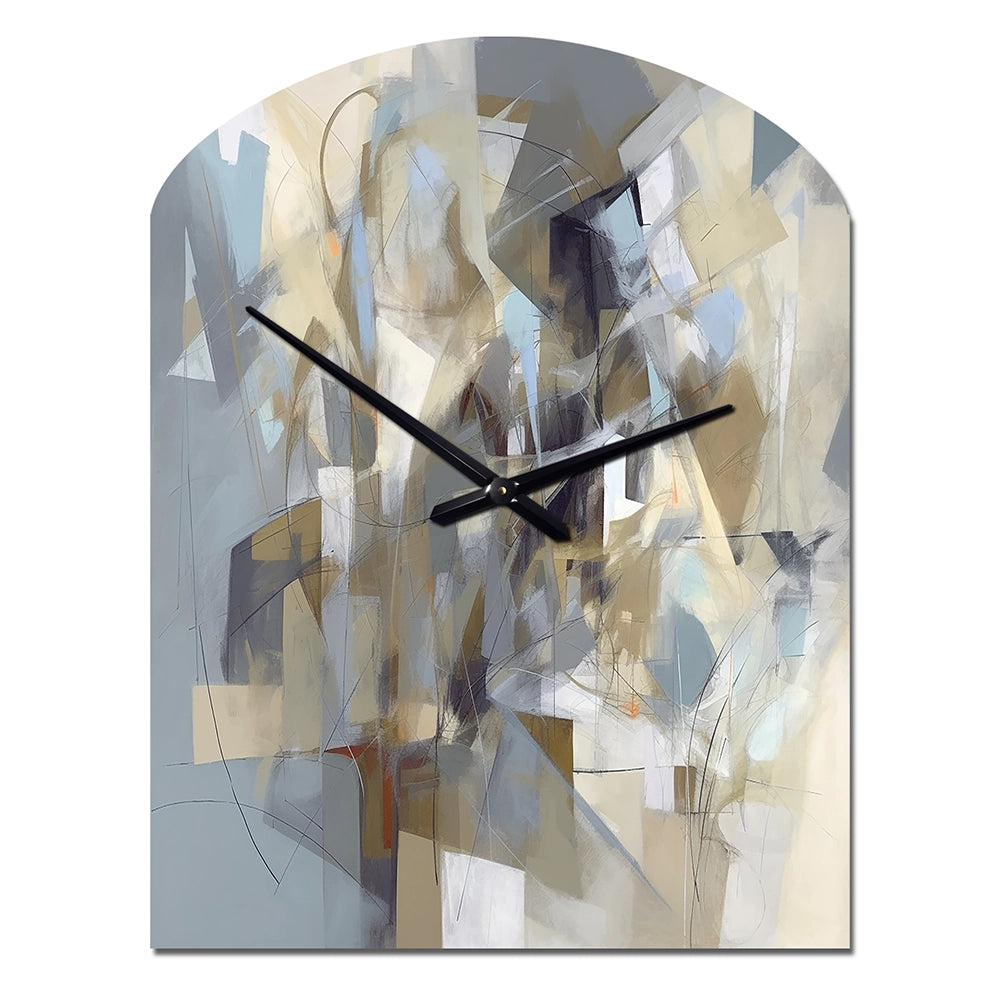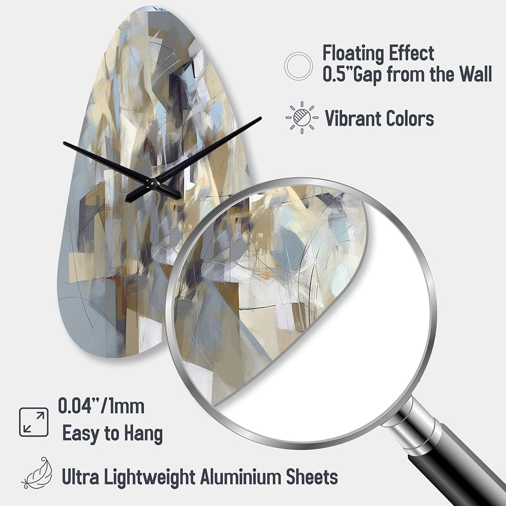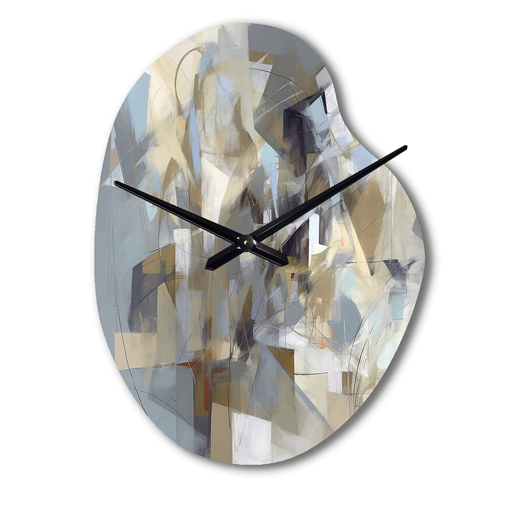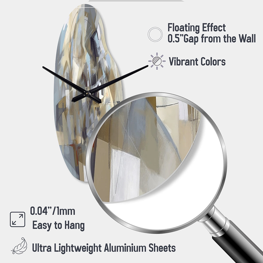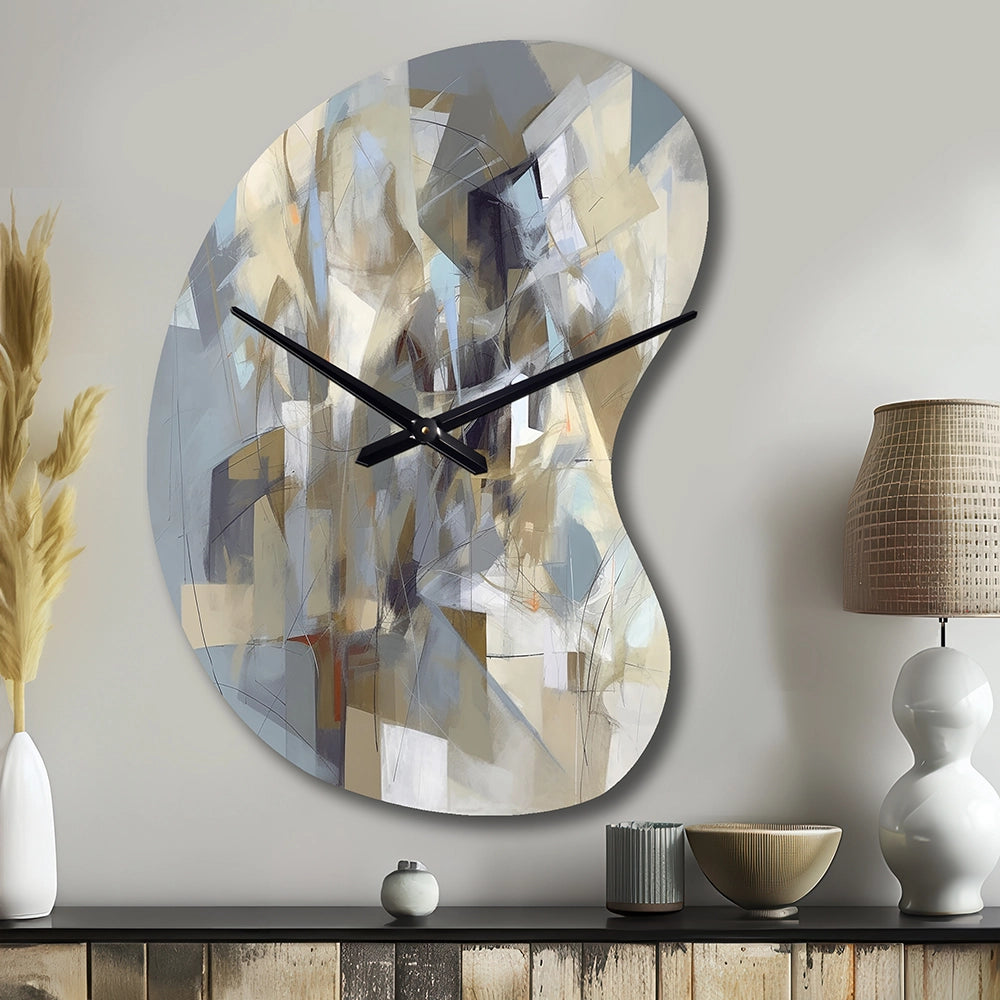 Beige And Grey Unbounded Creativity III - Asymmetric Metal Wall Clock