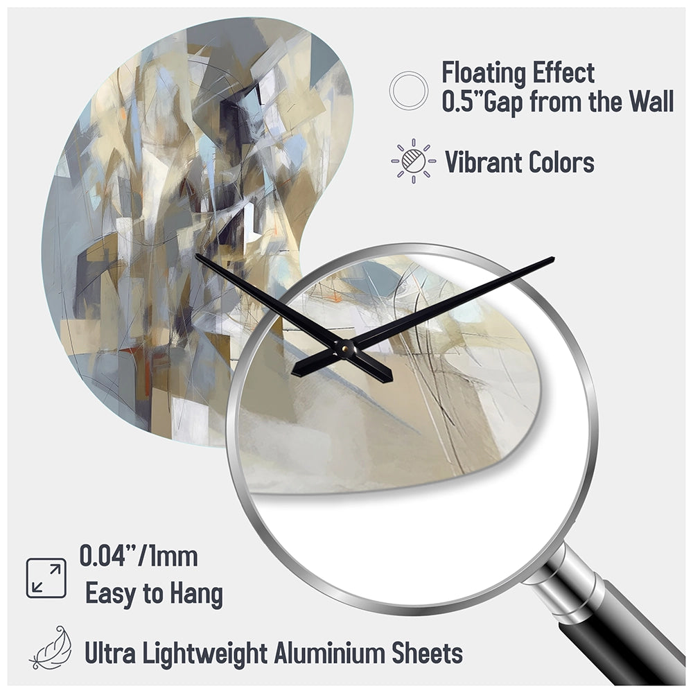 Elevate your space with this Modern asymmetrical metal wall Clock. Our handcrafted metal wall sculptures combine modern design with artistic elegance, creating a striking focal point in any room. This asymmetric metal wall Clock features unique, irregular shapes that bring dynamic movement and depth to your walls. Perfect for Abstract decor, these Beige irregular metal wall sculptures are printed on aluminum panel, with extra gloss ensuring long-lasting beauty. Ideal for living rooms, offices decor, or entrance, this statement piece adds a bold, Abstract touch to any decor.