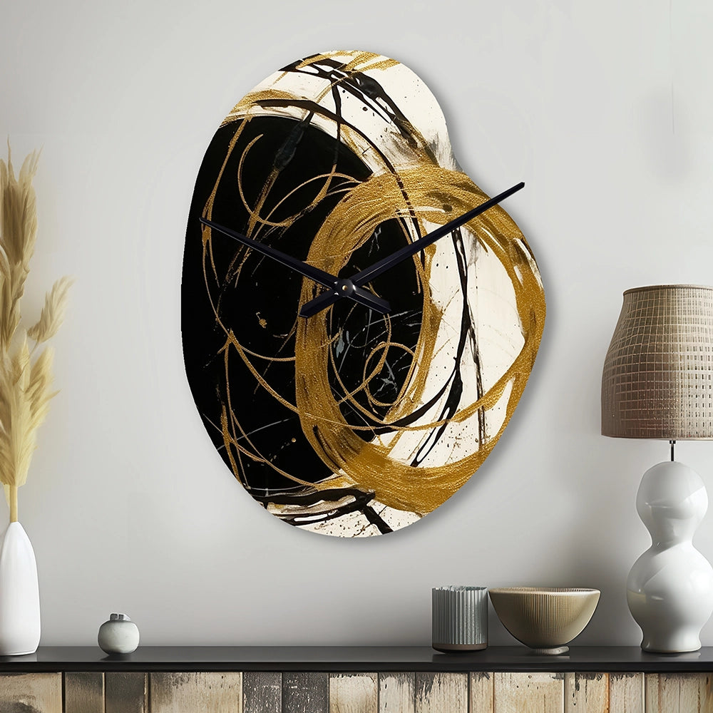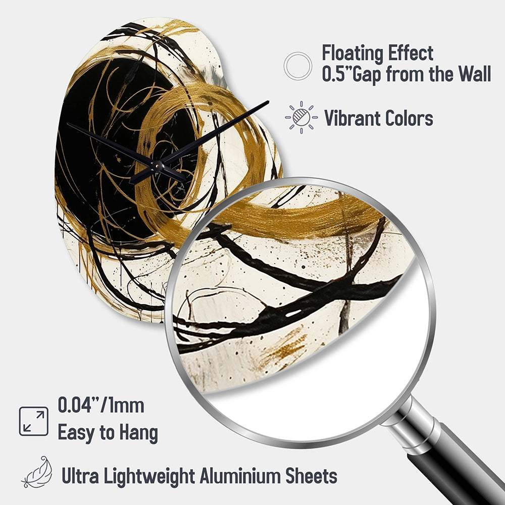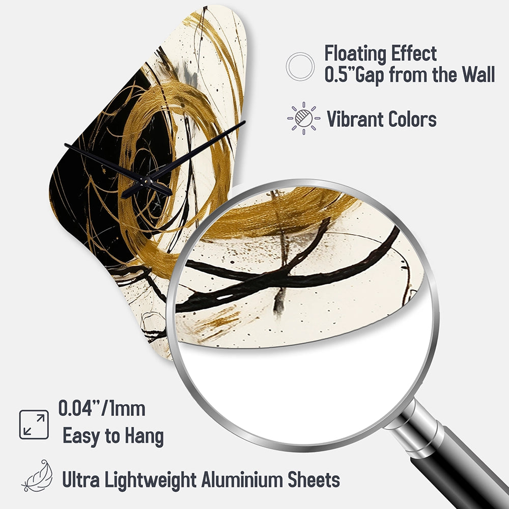 Black And Gold The Art Of Chaos I - Asymmetric Metal Wall Clock