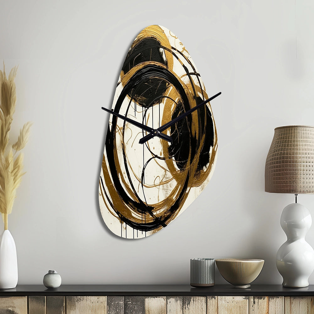 Black And Gold The Art Of Chaos II - Asymmetric Metal Wall Clock