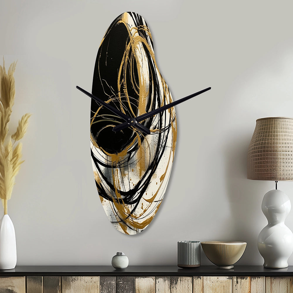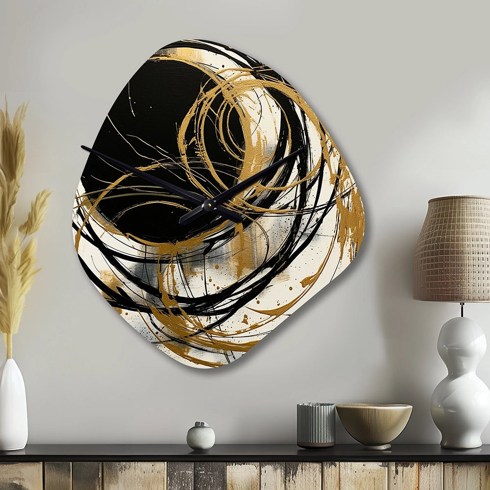 Black And Gold The Art Of Chaos V - Asymmetric Metal Wall Clock