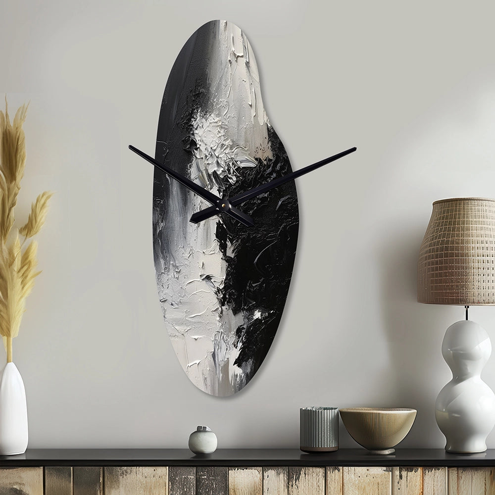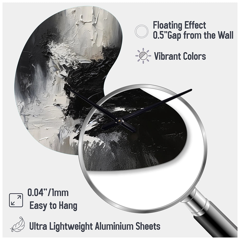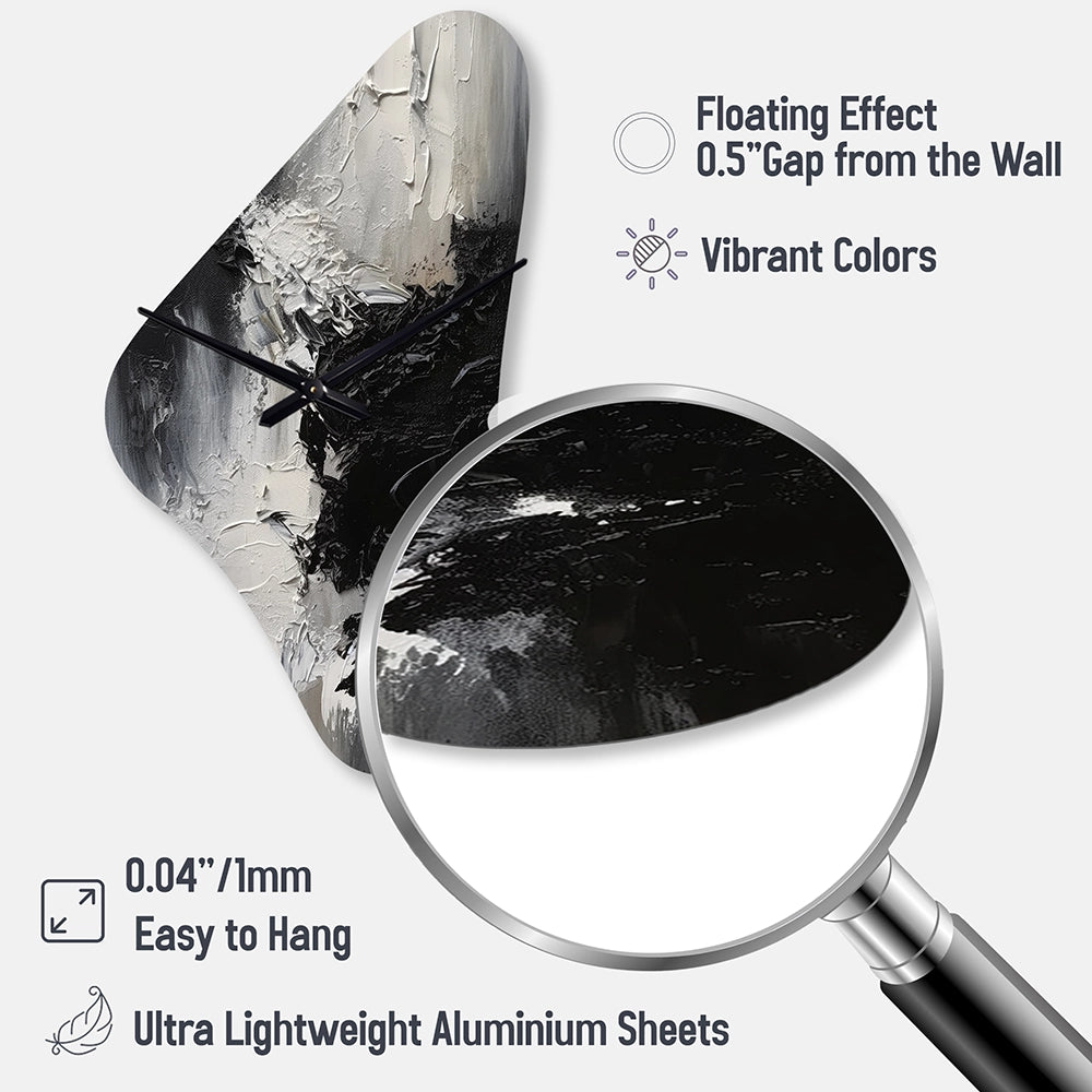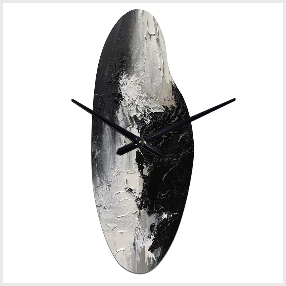 Elevate your space with this Modern asymmetrical metal wall Clock. Our handcrafted metal wall sculptures combine modern design with artistic elegance, creating a striking focal point in any room. This asymmetric metal wall Clock features unique, irregular shapes that bring dynamic movement and depth to your walls. Perfect for Abstract decor, these Black irregular metal wall sculptures are printed on aluminum panel, with extra gloss ensuring long-lasting beauty. Ideal for living rooms, offices decor, or entrance, this statement piece adds a bold, Abstract touch to any decor.