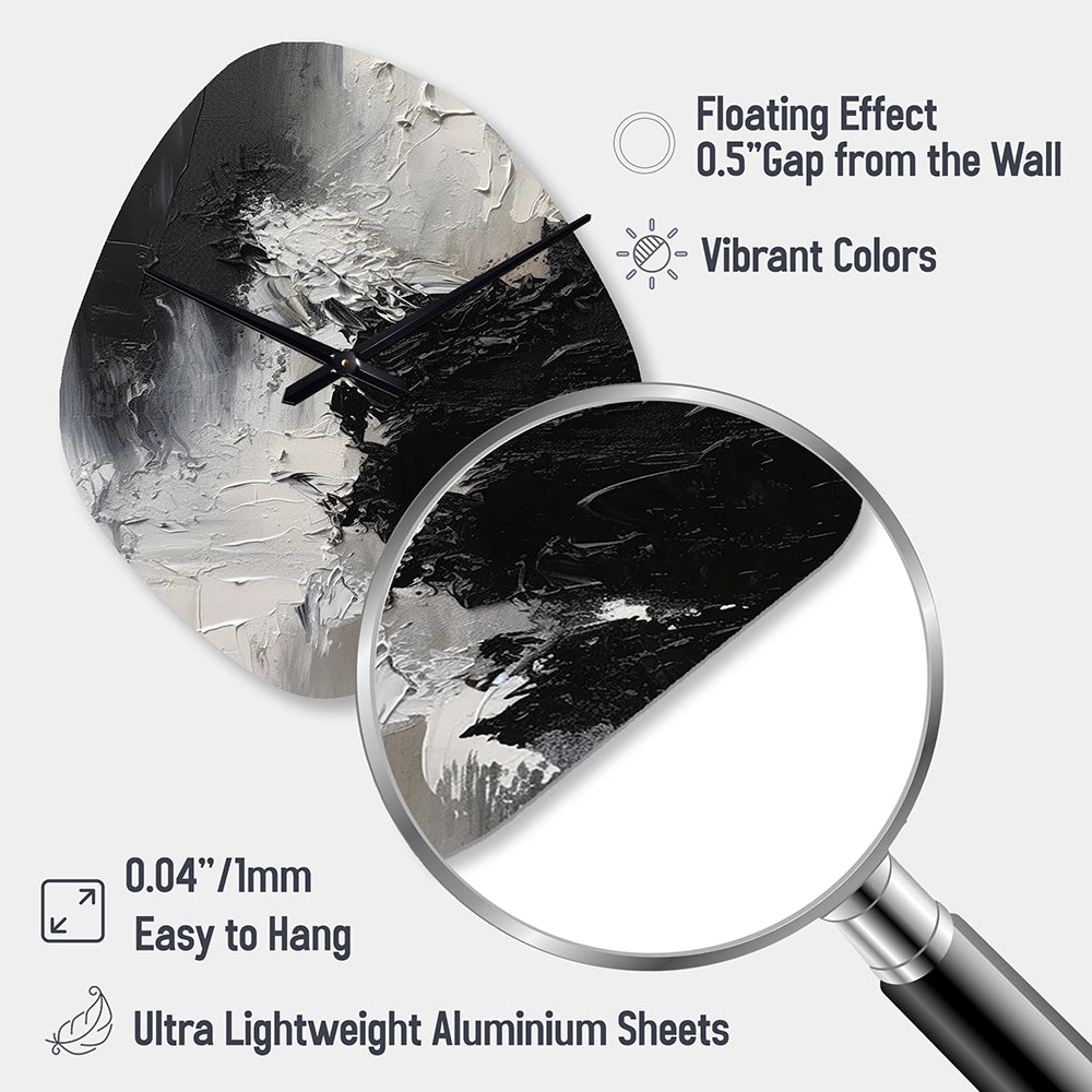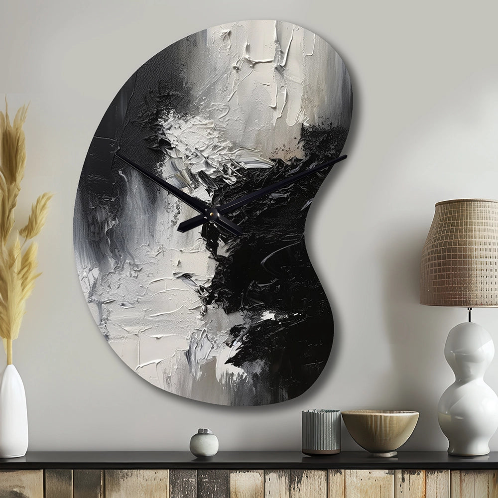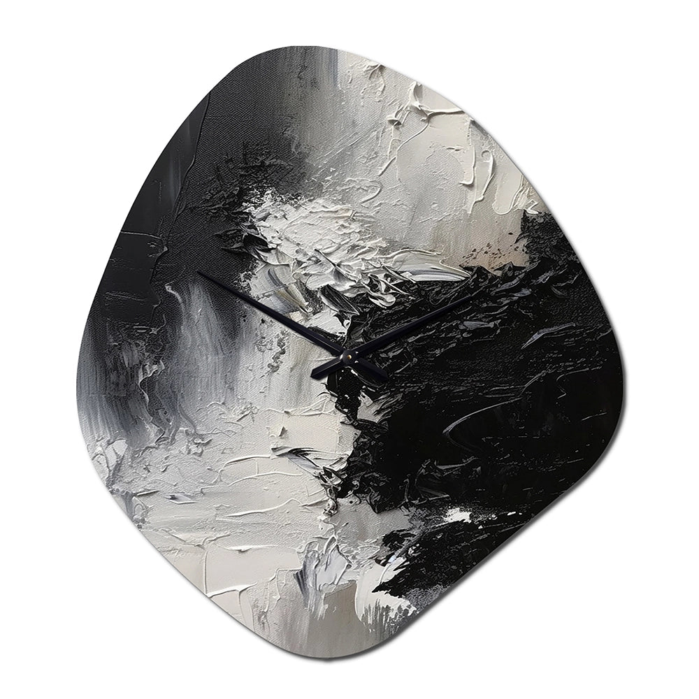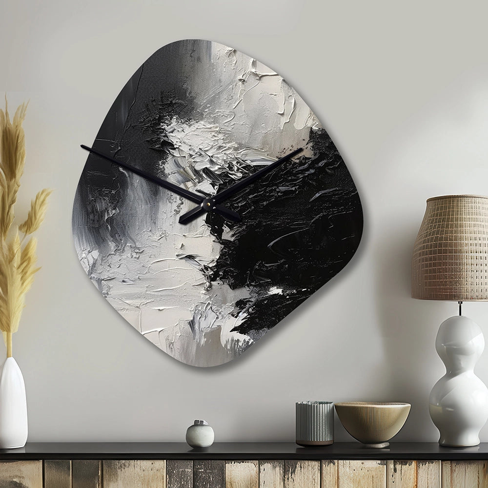 Black And White Delicate Brushstrokes II - Asymmetric Metal Wall Clock