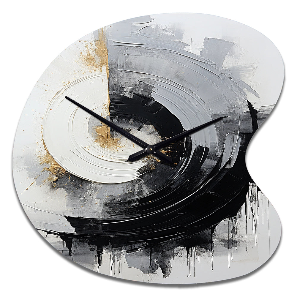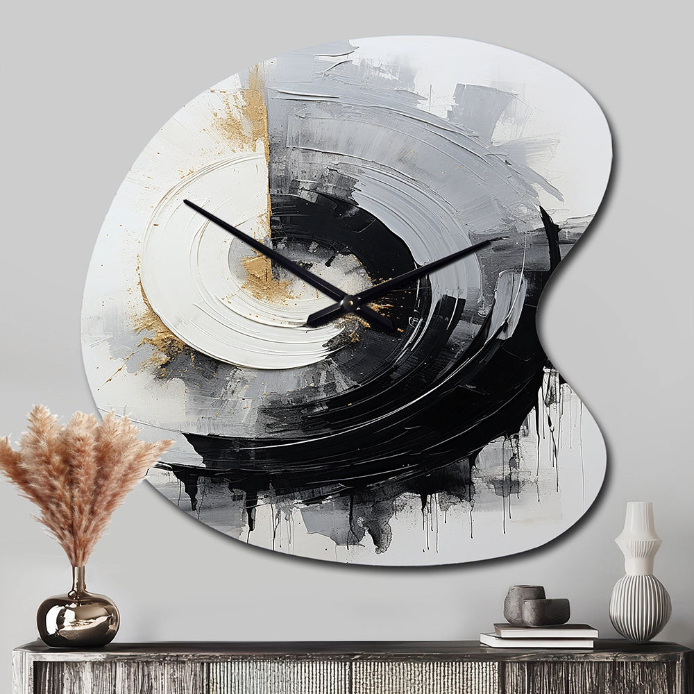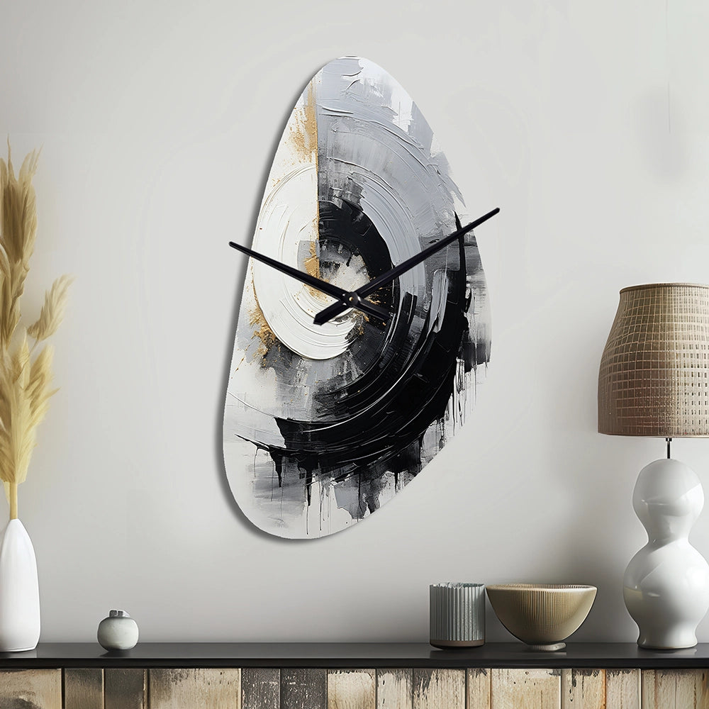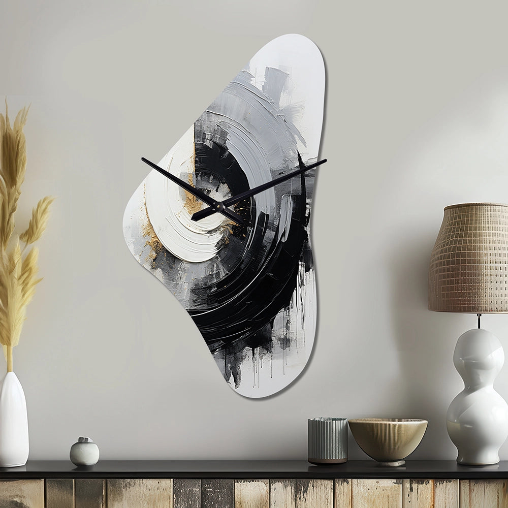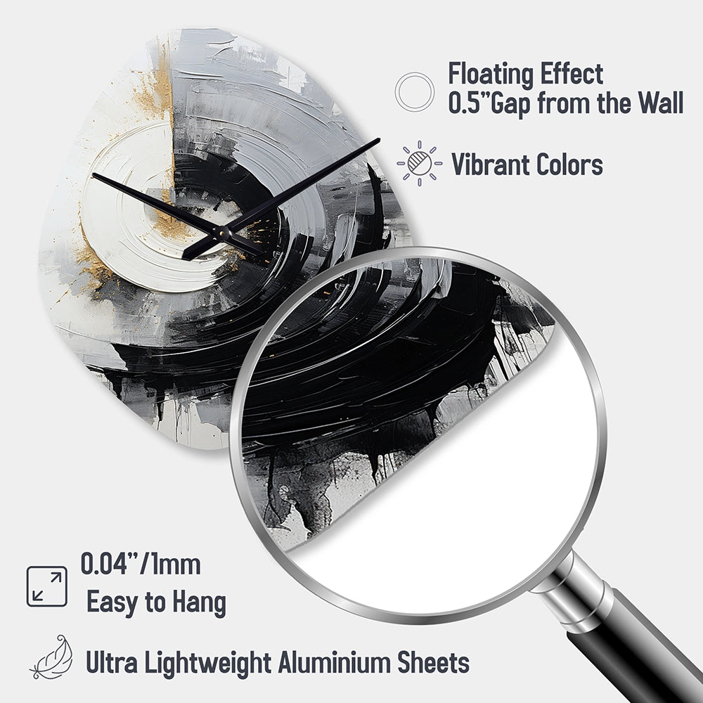 Black And White Zen Spiral II - Asymmetric Metal Wall Clock