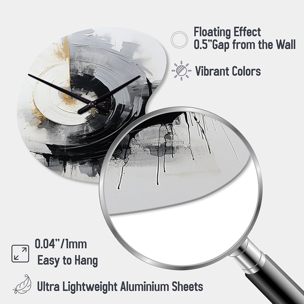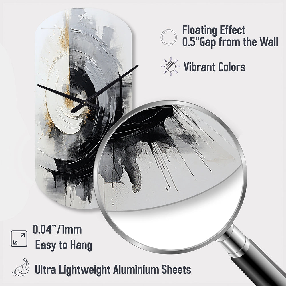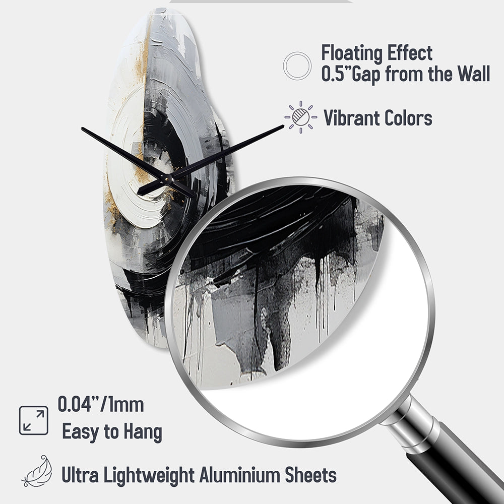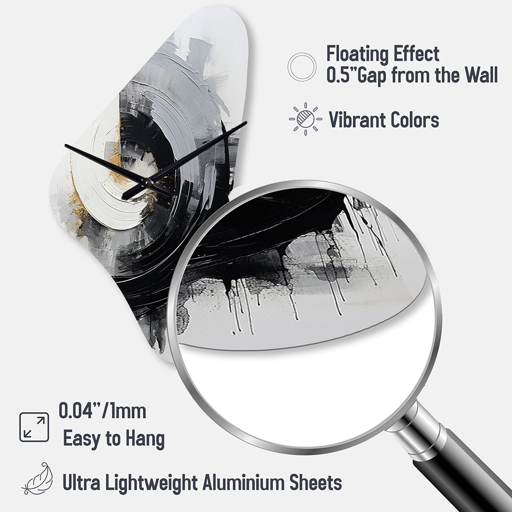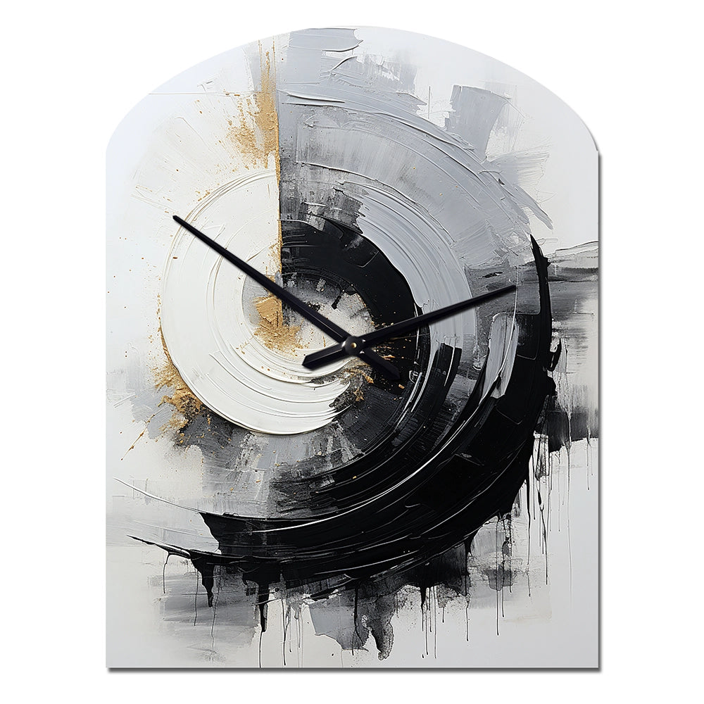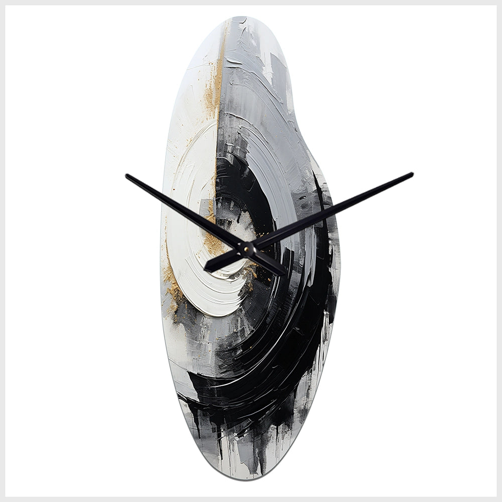 Black And White Zen Spiral II - Asymmetric Metal Wall Clock