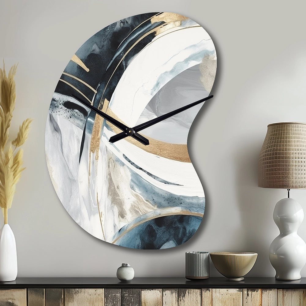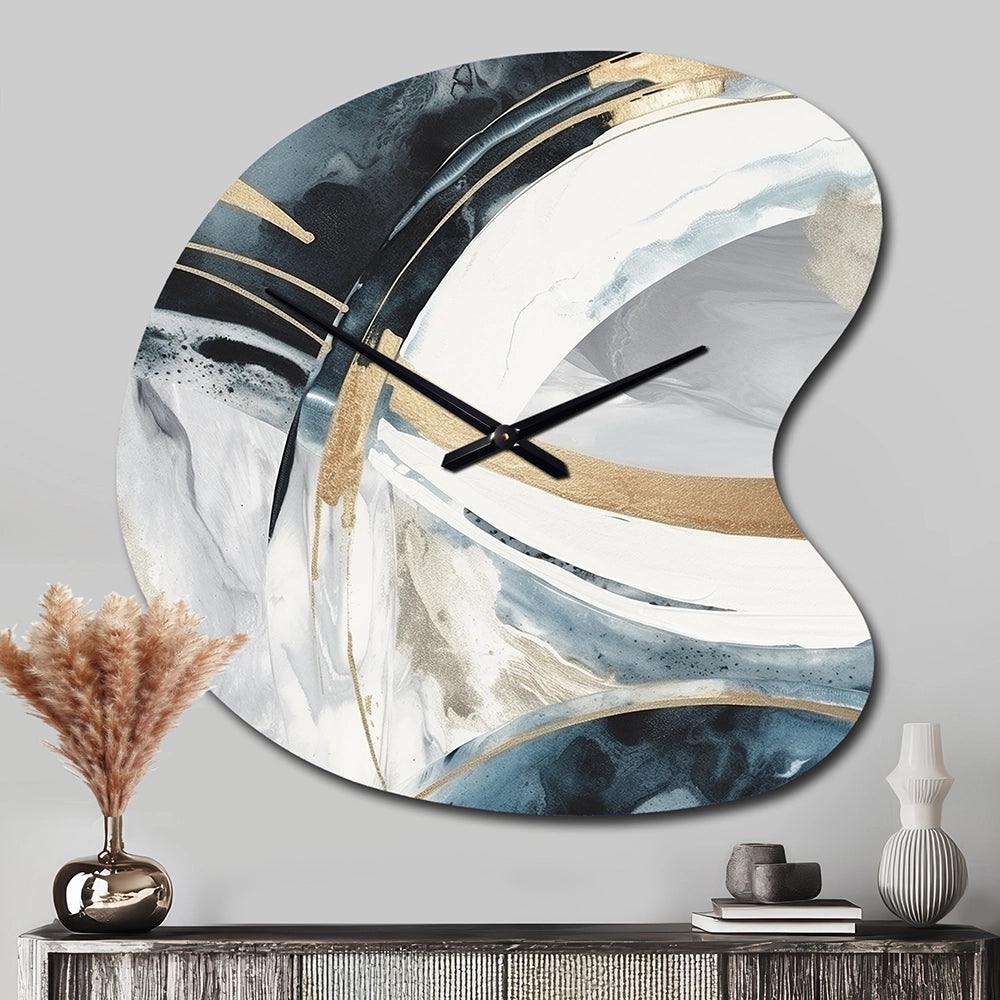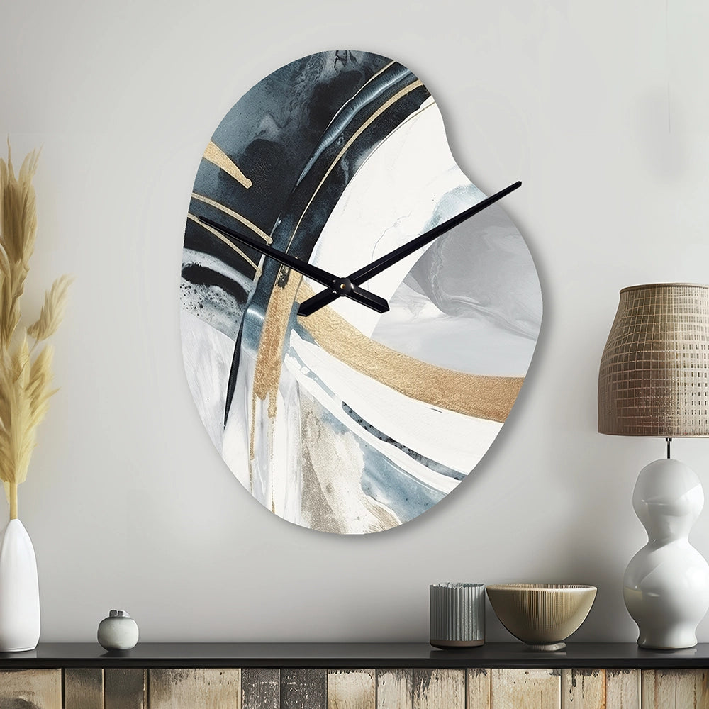 Black Gold Fusion Of Marble II - Asymmetric Metal Wall Clock