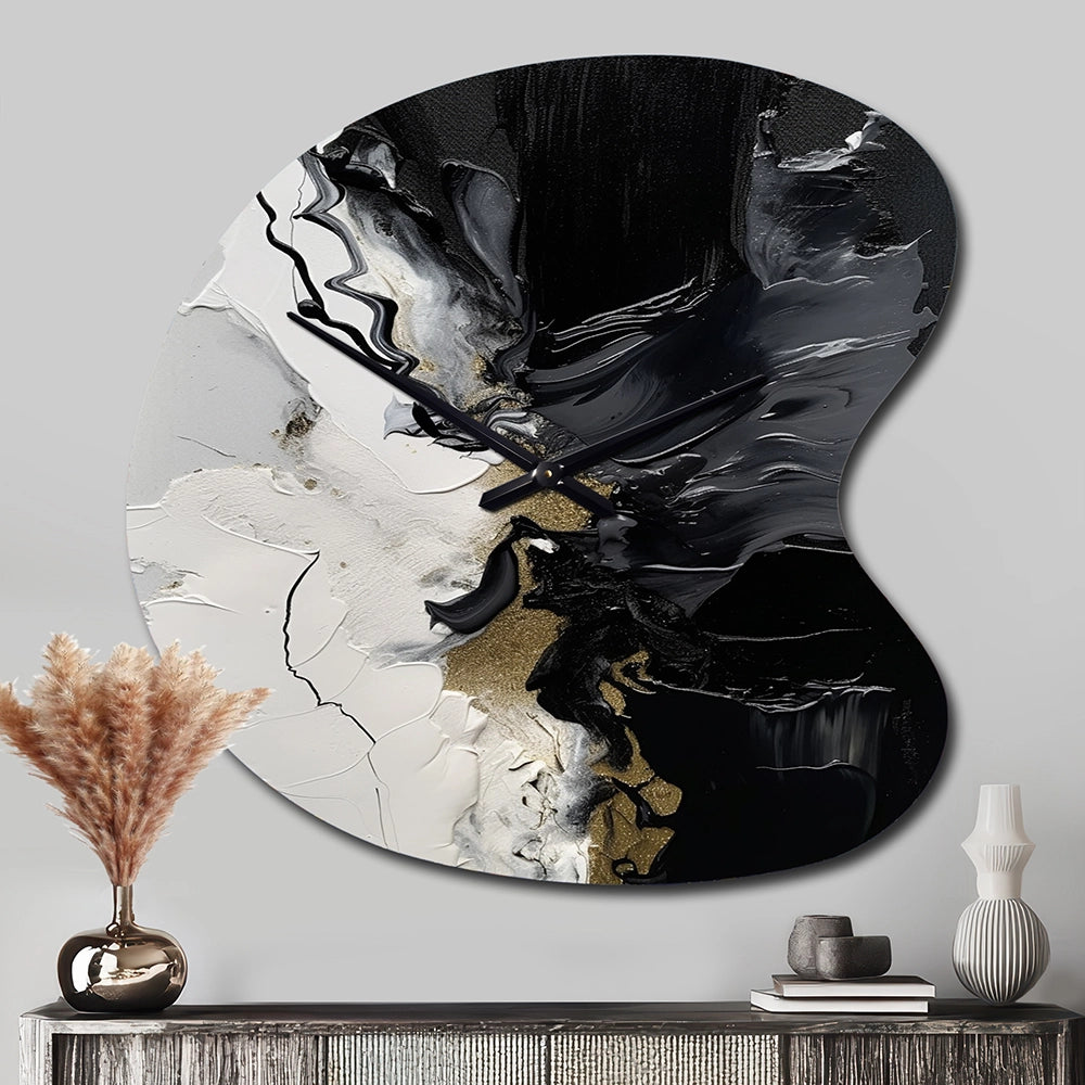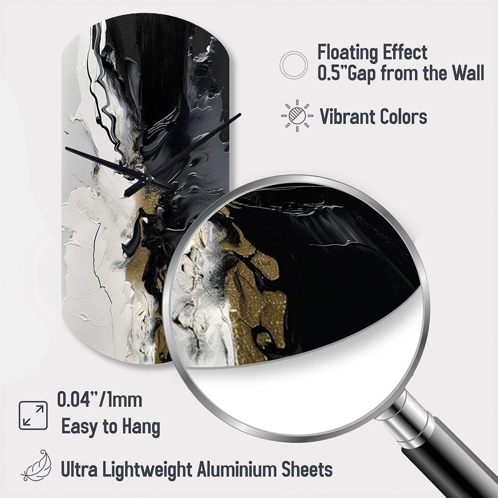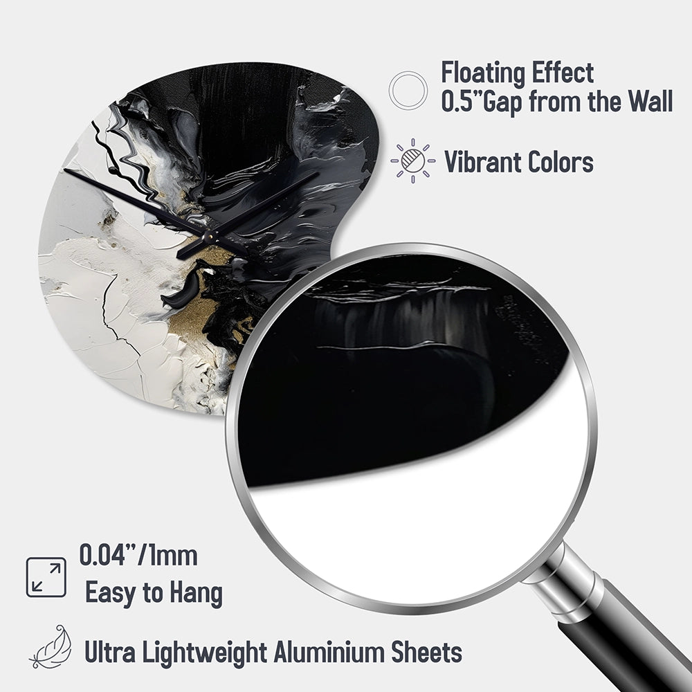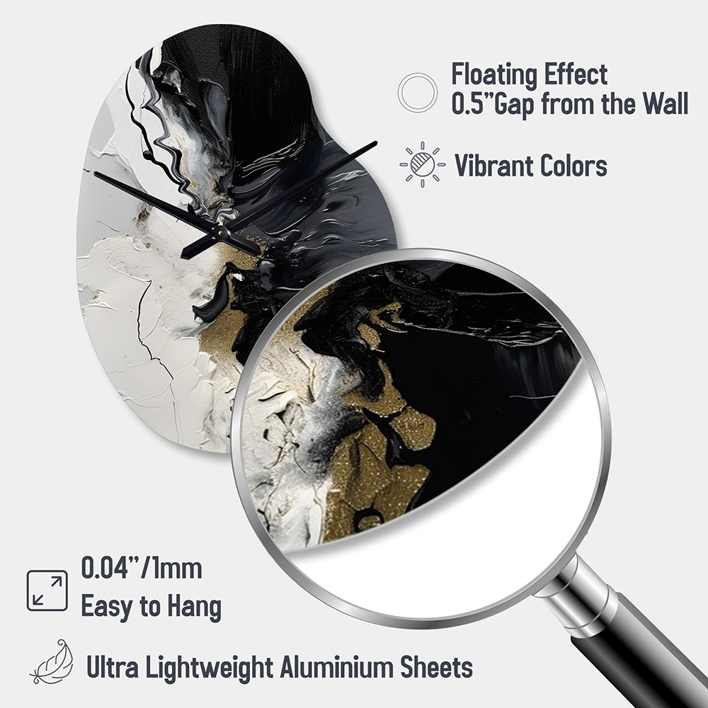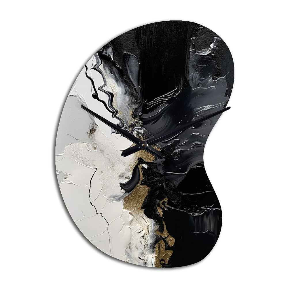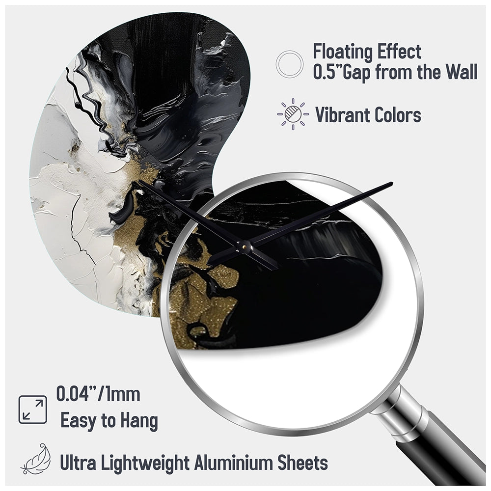 Elevate your space with this Modern asymmetrical metal wall Clock. Our handcrafted metal wall sculptures combine modern design with artistic elegance, creating a striking focal point in any room. This asymmetric metal wall Clock features unique, irregular shapes that bring dynamic movement and depth to your walls. Perfect for Abstract decor, these Black irregular metal wall sculptures are printed on aluminum panel, with extra gloss ensuring long-lasting beauty. Ideal for living rooms, offices decor, or entrance, this statement piece adds a bold, Abstract touch to any decor.
