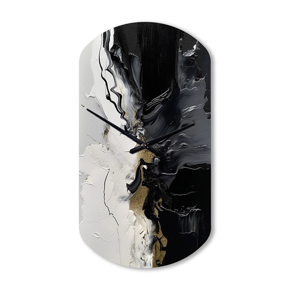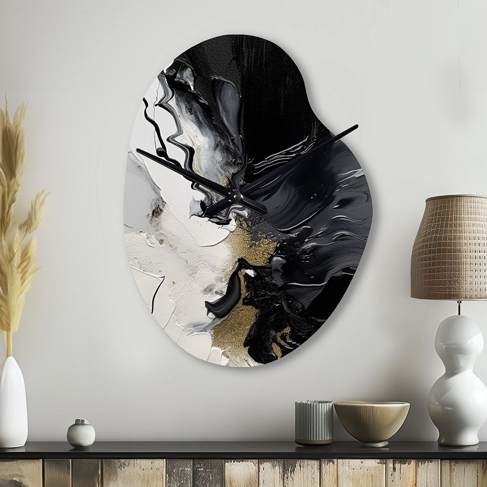 Black Textured Splash Paint Art I - Asymmetric Metal Wall Clock