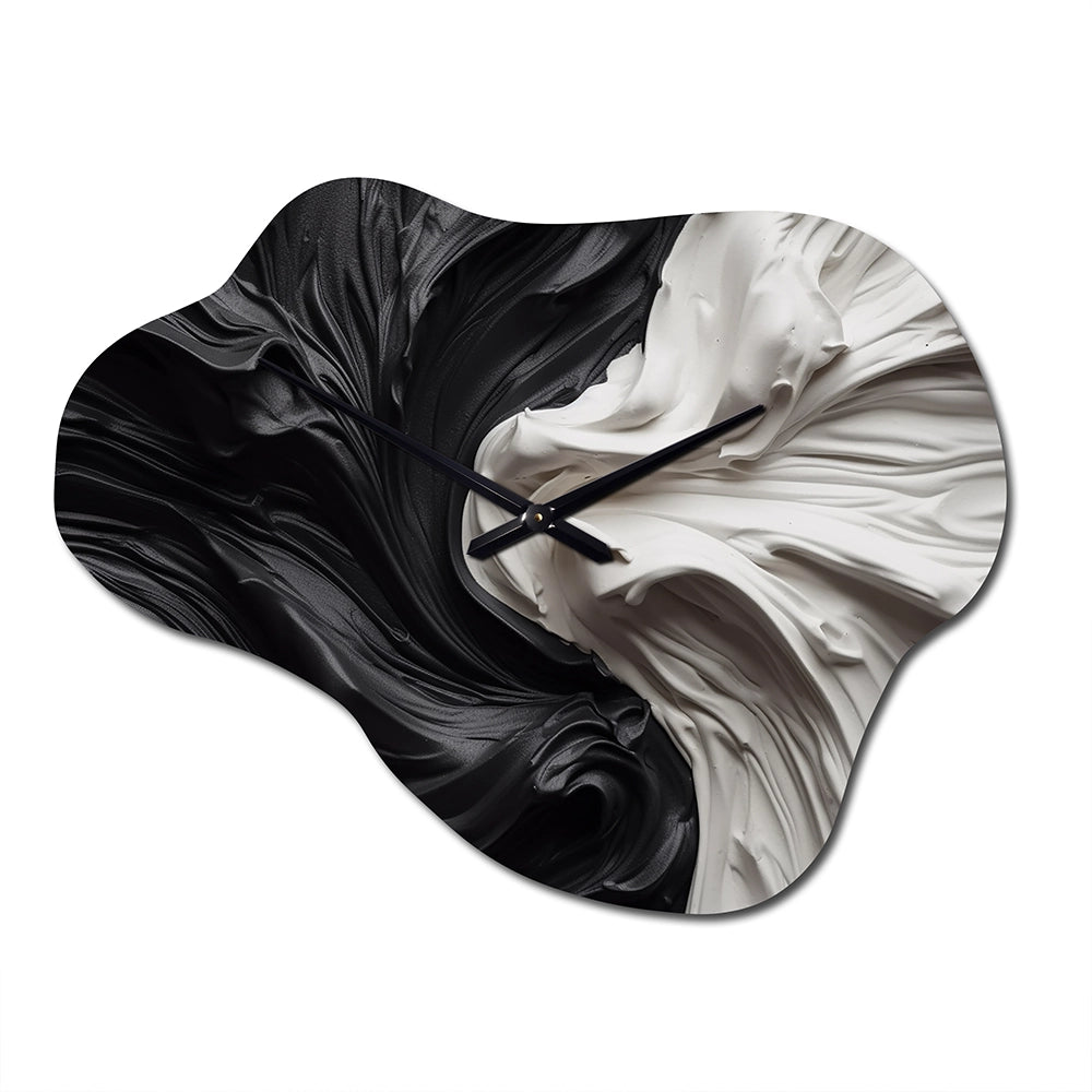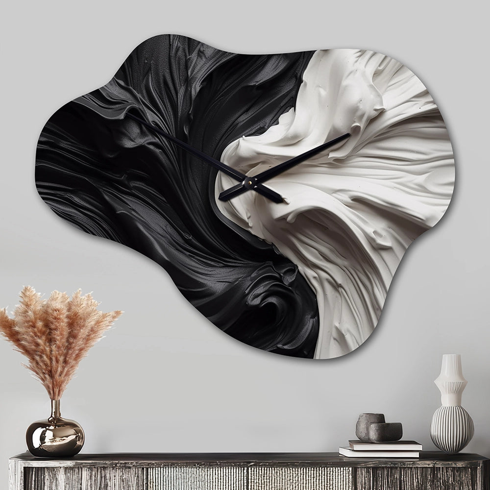 Black White Marbled Dreamscape V - Asymmetric Metal Wall Clock