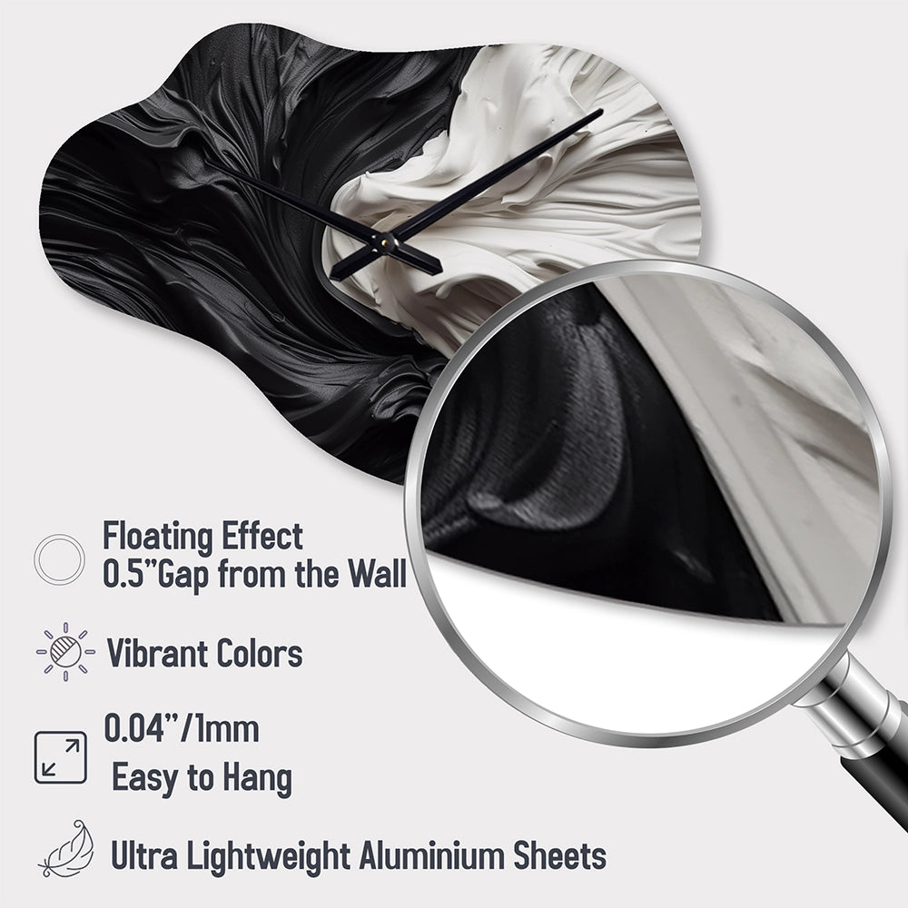 Elevate your space with this Modern asymmetrical metal wall Clock. Our handcrafted metal wall sculptures combine modern design with artistic elegance, creating a striking focal point in any room. This asymmetric metal wall Clock features unique, irregular shapes that bring dynamic movement and depth to your walls. Perfect for Abstract decor, these Black irregular metal wall sculptures are printed on aluminum panel, with extra gloss ensuring long-lasting beauty. Ideal for living rooms, offices decor, or entrance, this statement piece adds a bold, Abstract touch to any decor.