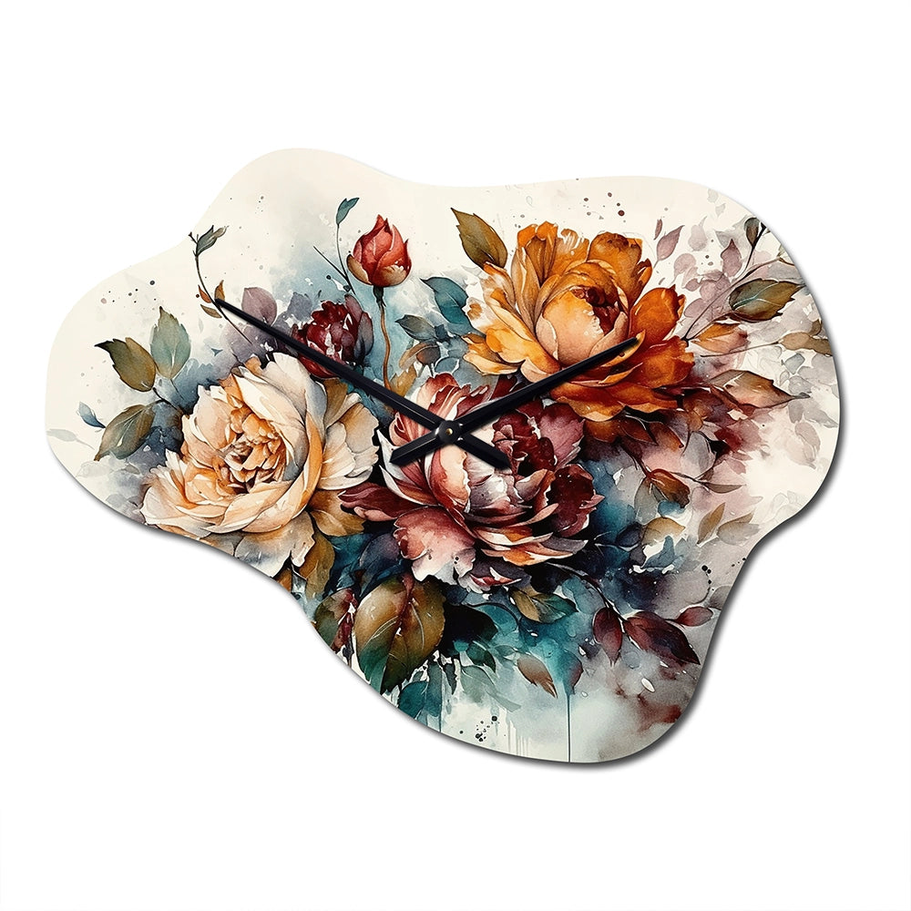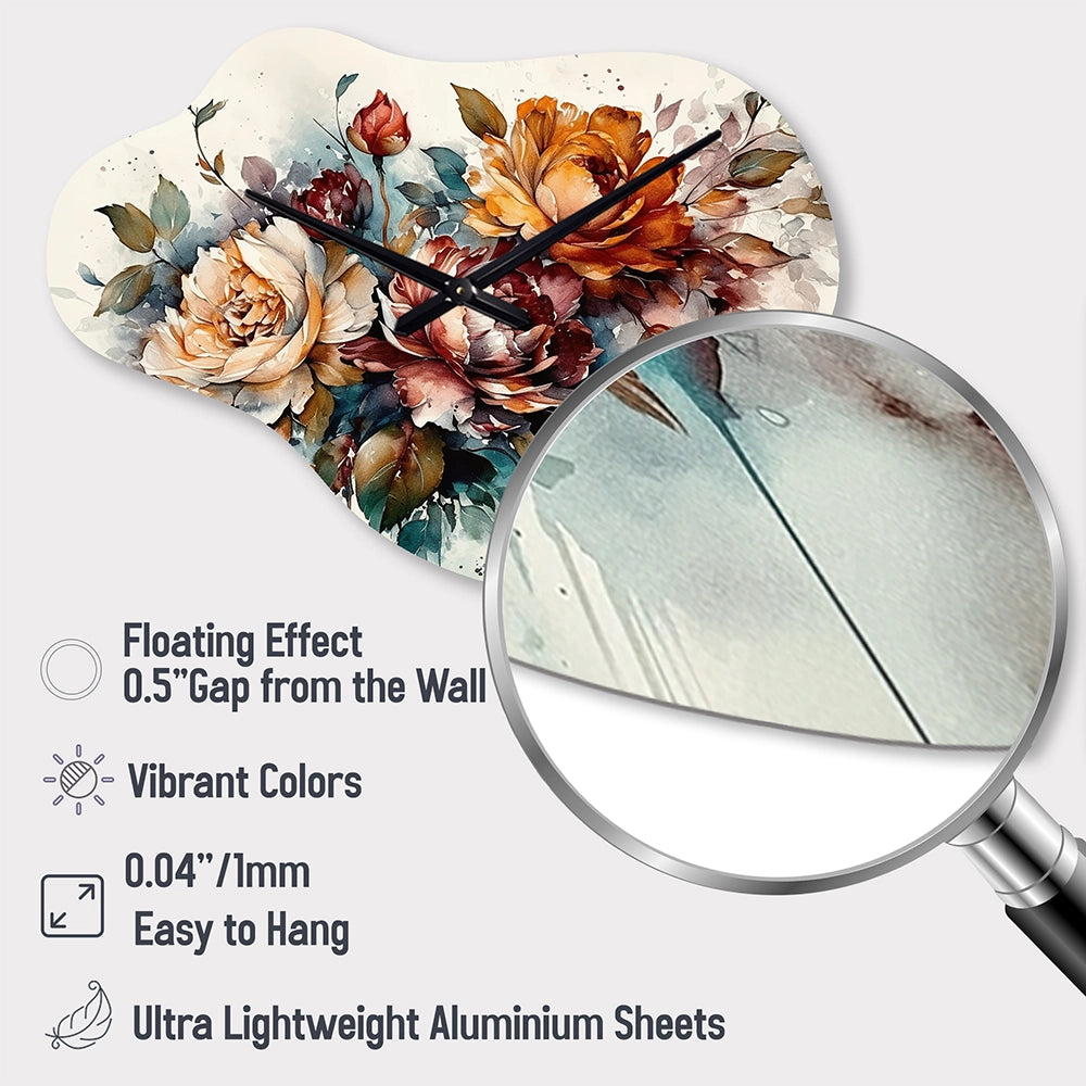Blooming Vintage Flowers I - Asymmetric Metal Wall Clock