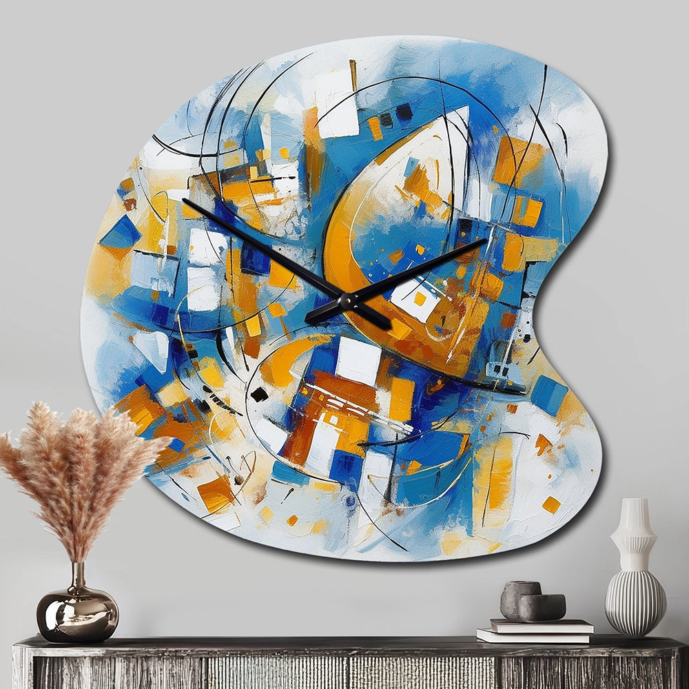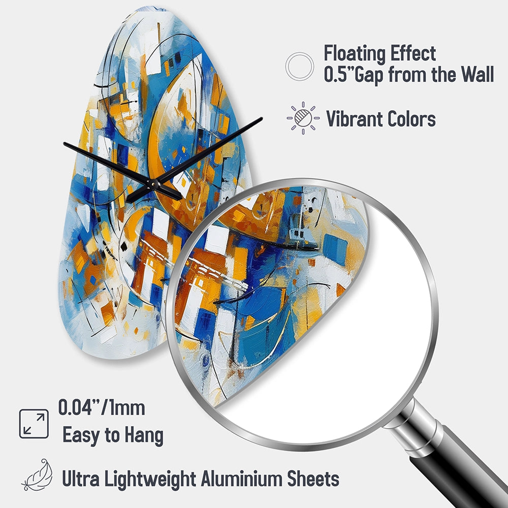 Elevate your space with this Modern asymmetrical metal wall Clock. Our handcrafted metal wall sculptures combine modern design with artistic elegance, creating a striking focal point in any room. This asymmetric metal wall Clock features unique, irregular shapes that bring dynamic movement and depth to your walls. Perfect for Abstract decor, these Blue irregular metal wall sculptures are printed on aluminum panel, with extra gloss ensuring long-lasting beauty. Ideal for living rooms, offices decor, or entrance, this statement piece adds a bold, Abstract touch to any decor.