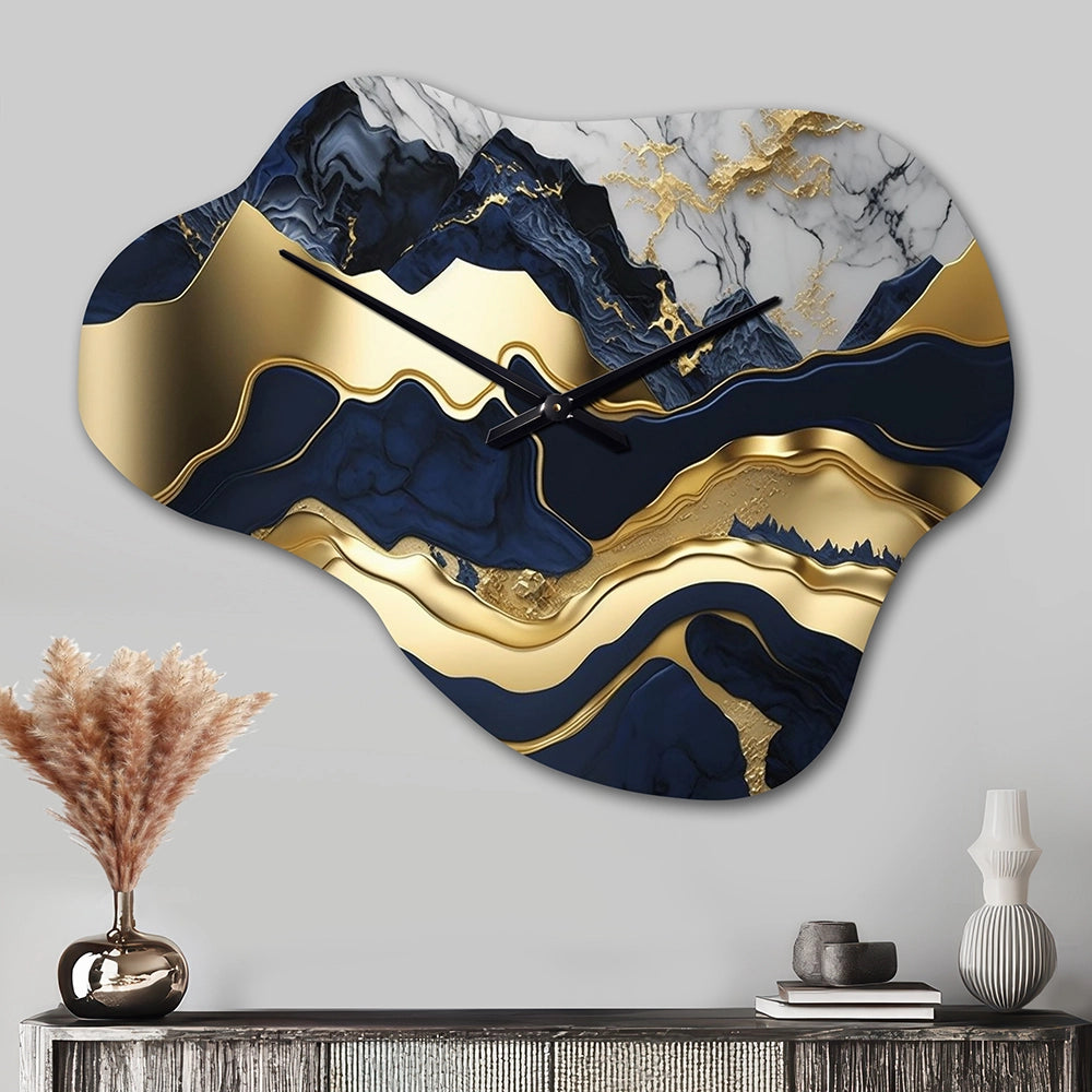 Blue And Gold Mesmerizing Marble Abstraction I - Asymmetric Metal Wall Clock