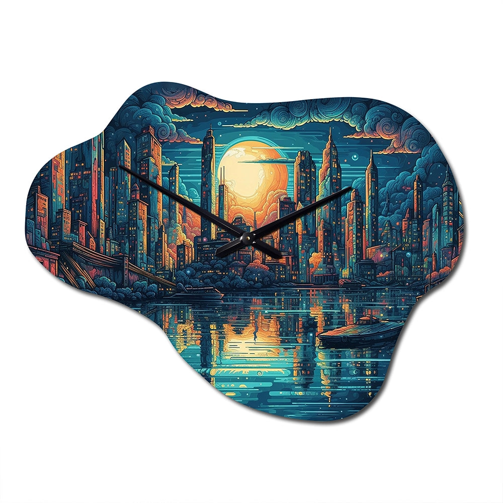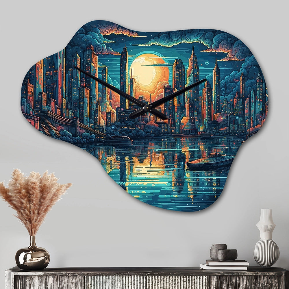 Blue And Orange Artistic Tributes To The Art Deco Era - Asymmetric Metal Wall Clock