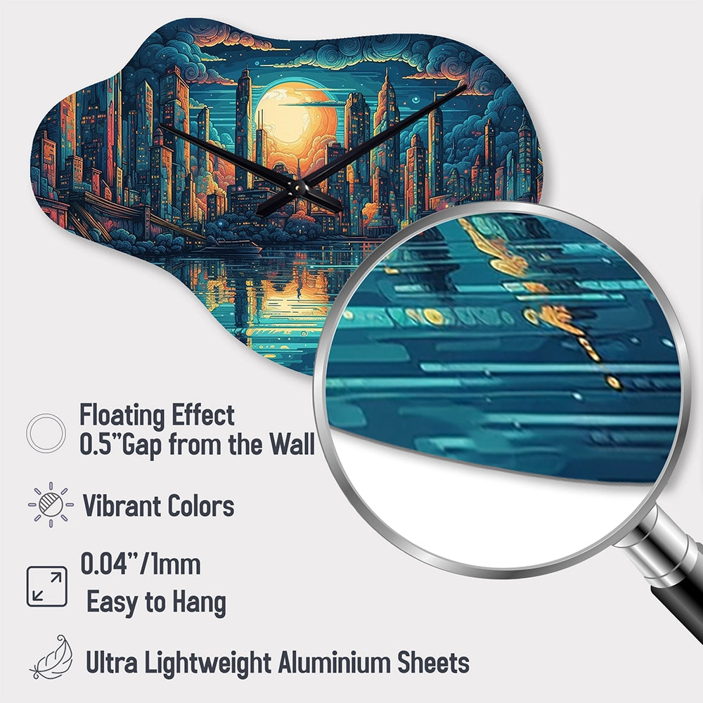 Elevate your space with this Modern asymmetrical metal wall Clock. Our handcrafted metal wall sculptures combine modern design with artistic elegance, creating a striking focal point in any room. This asymmetric metal wall Clock features unique, irregular shapes that bring dynamic movement and depth to your walls. Perfect for Abstract decor, these Blue irregular metal wall sculptures are printed on aluminum panel, with extra gloss ensuring long-lasting beauty. Ideal for living rooms, offices decor, or entrance, this statement piece adds a bold, Abstract touch to any decor.
