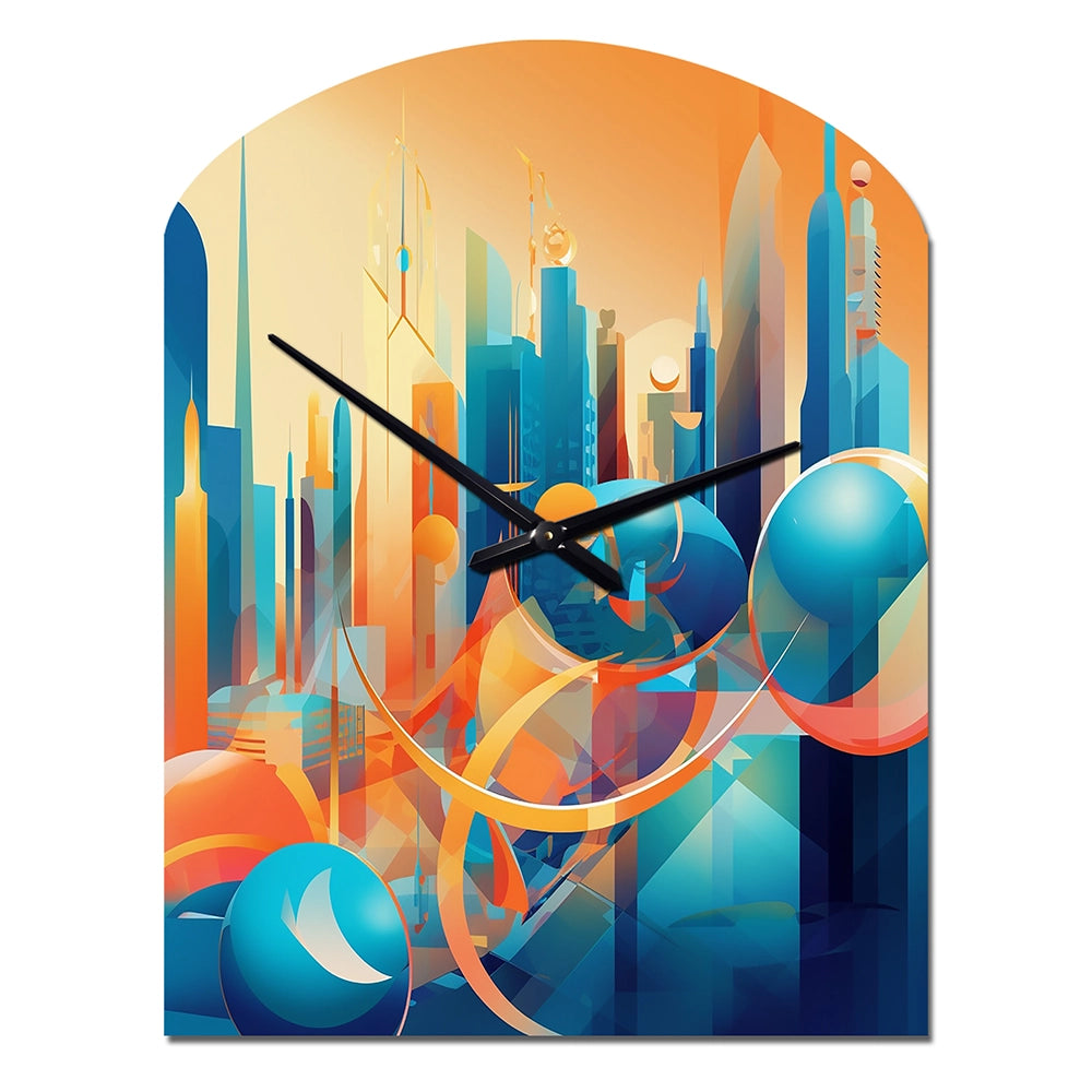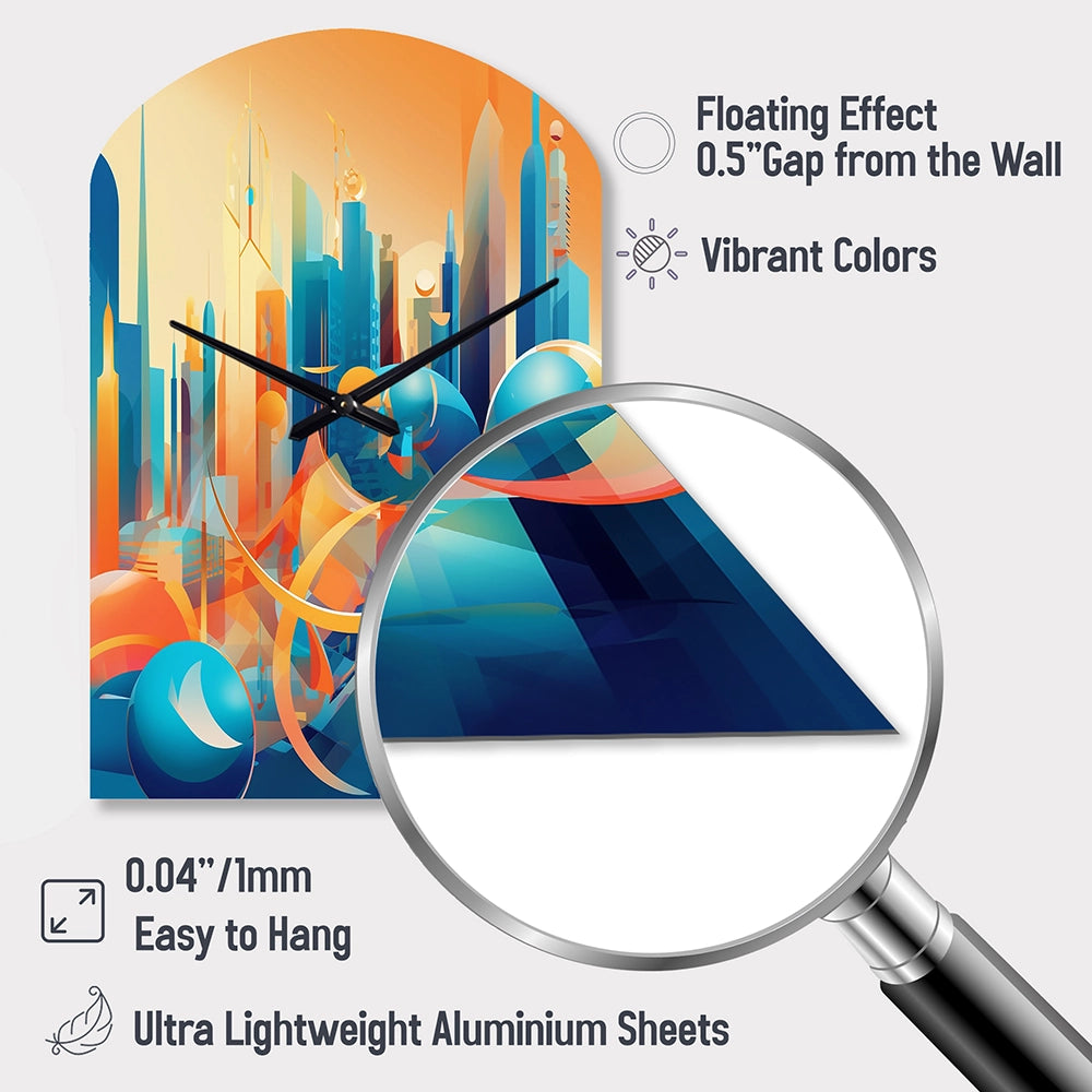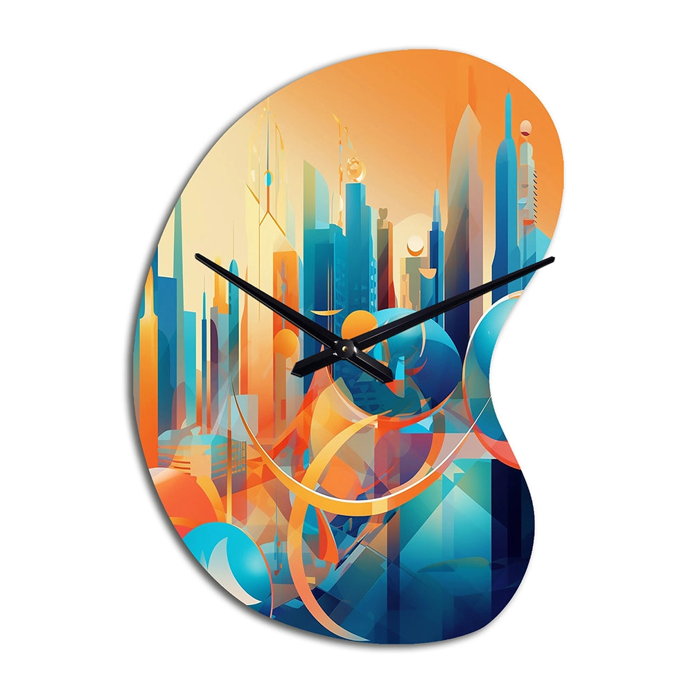 Blue And Orange Retro Radiance I - Asymmetric Metal Wall Clock