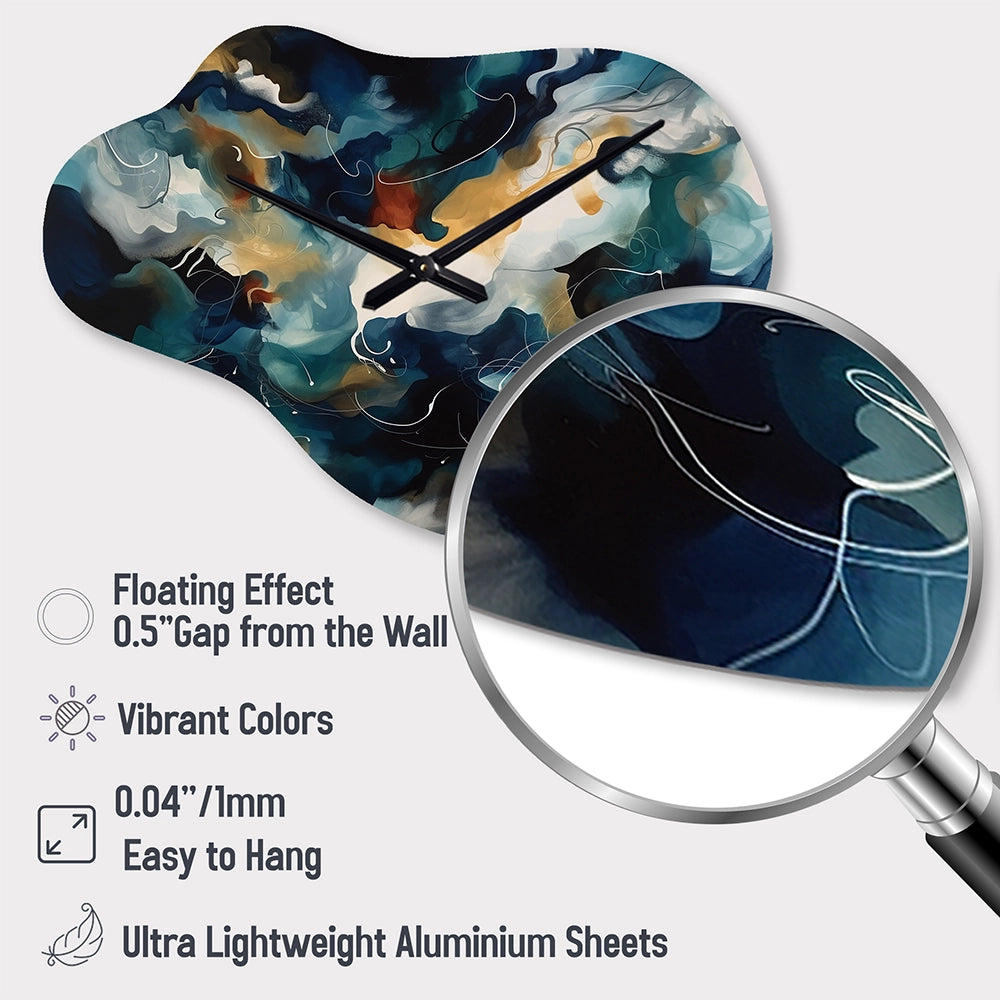 Elevate your space with this Modern asymmetrical metal wall Clock. Our handcrafted metal wall sculptures combine modern design with artistic elegance, creating a striking focal point in any room. This asymmetric metal wall Clock features unique, irregular shapes that bring dynamic movement and depth to your walls. Perfect for Abstract decor, these Blue irregular metal wall sculptures are printed on aluminum panel, with extra gloss ensuring long-lasting beauty. Ideal for living rooms, offices decor, or entrance, this statement piece adds a bold, Abstract touch to any decor.