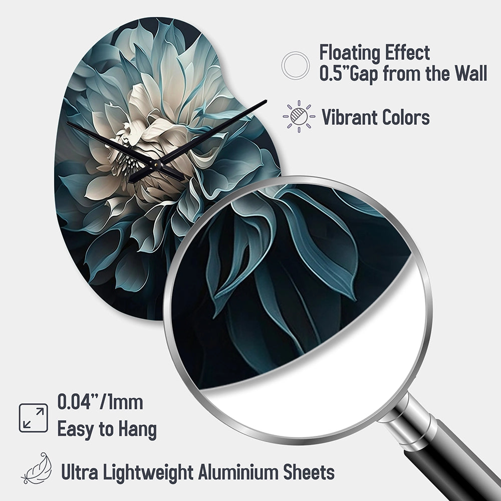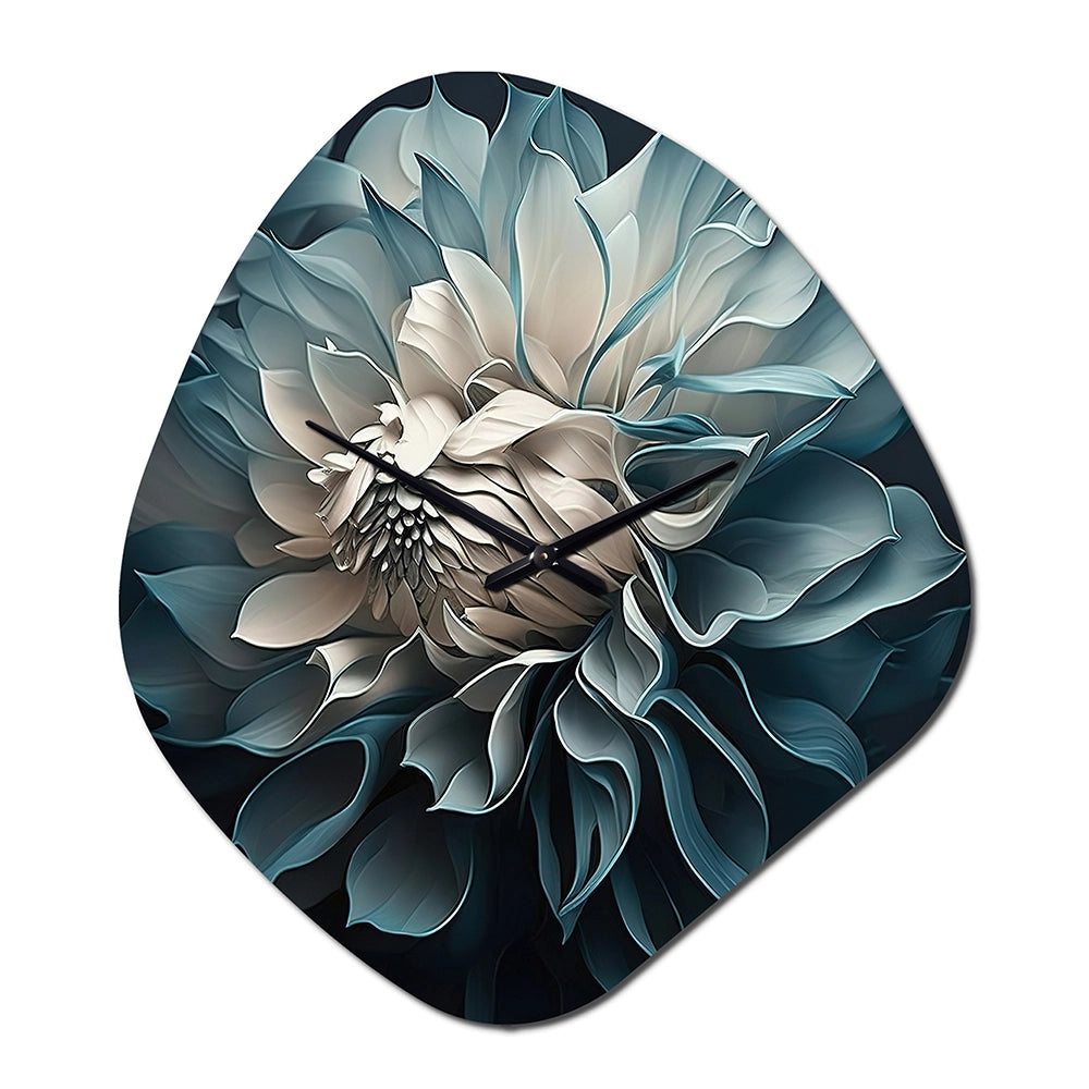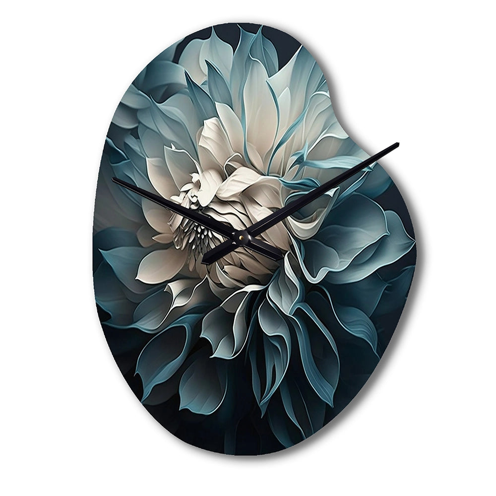 Blue And White Dahlia Flowers I - Asymmetric Metal Wall Clock