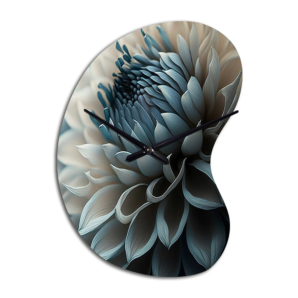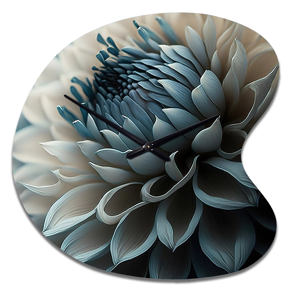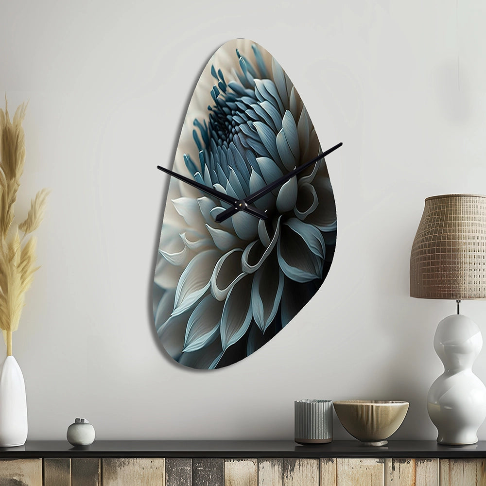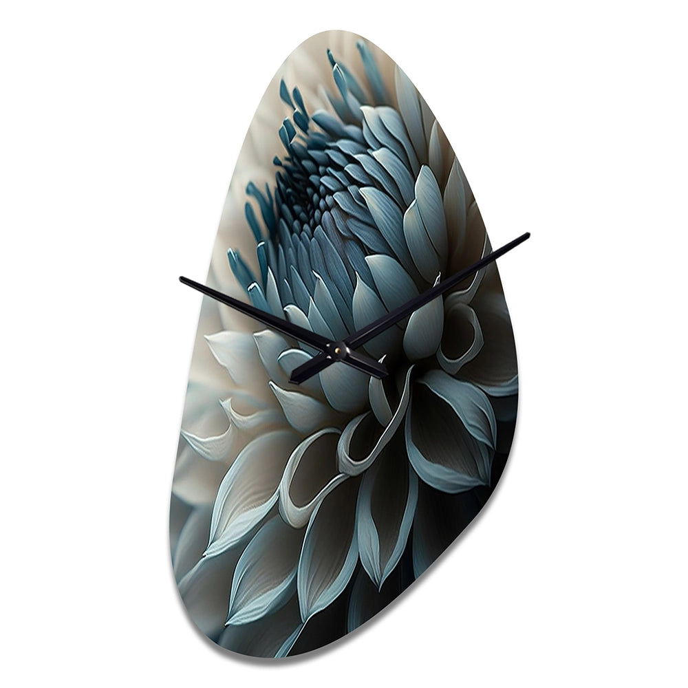 Blue And White Dahlia Flowers II - Asymmetric Metal Wall Clock