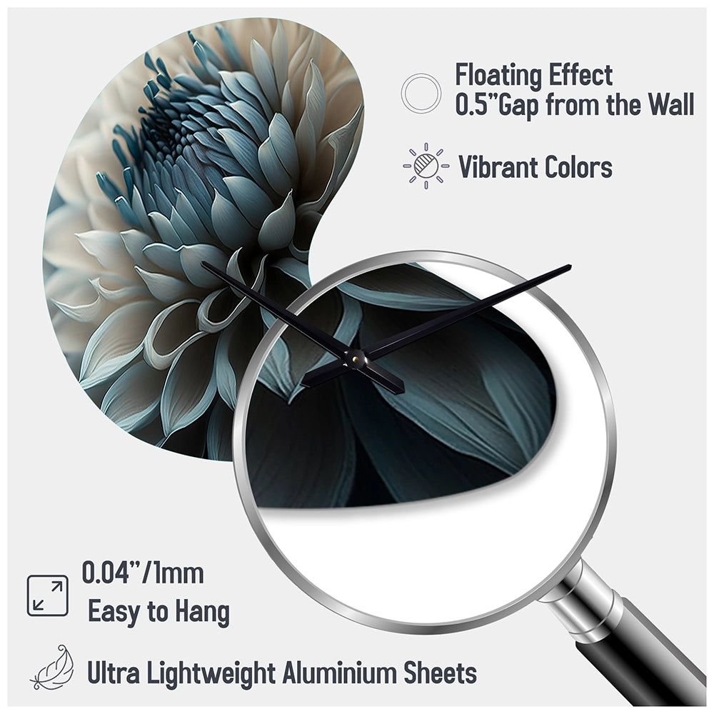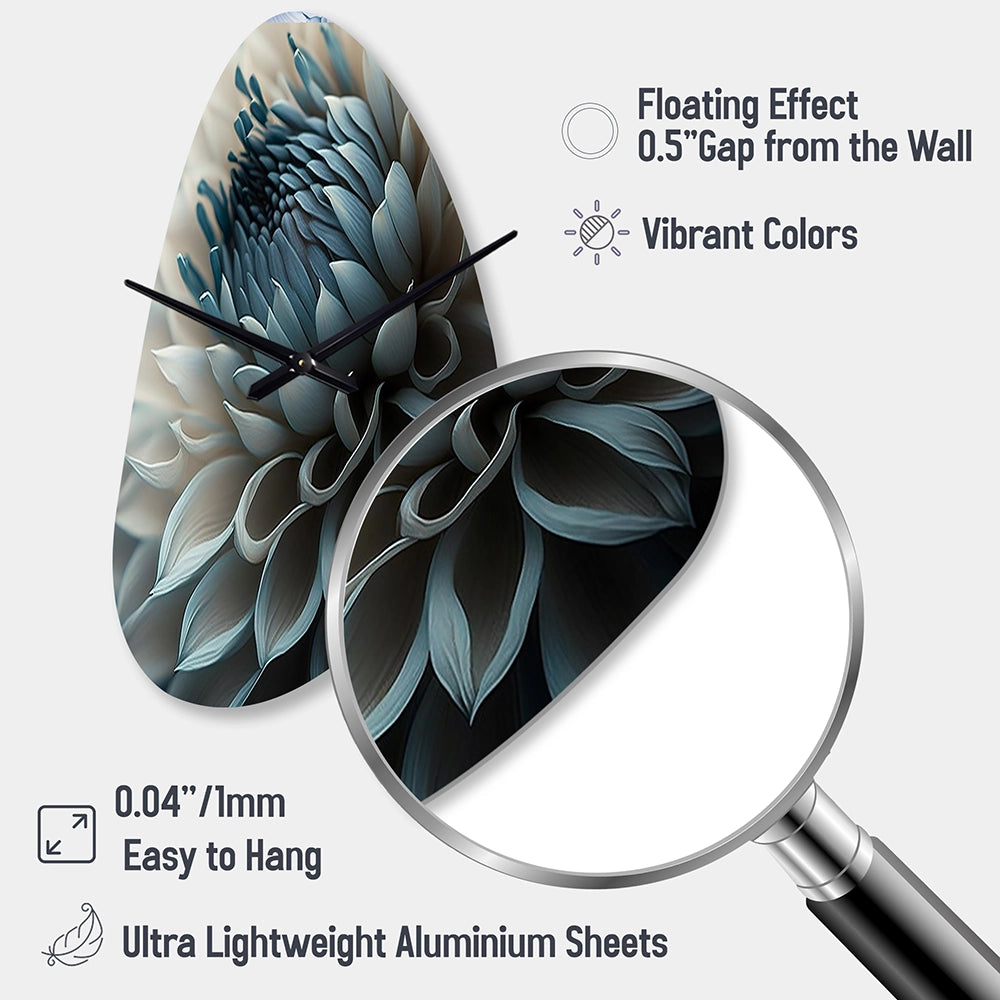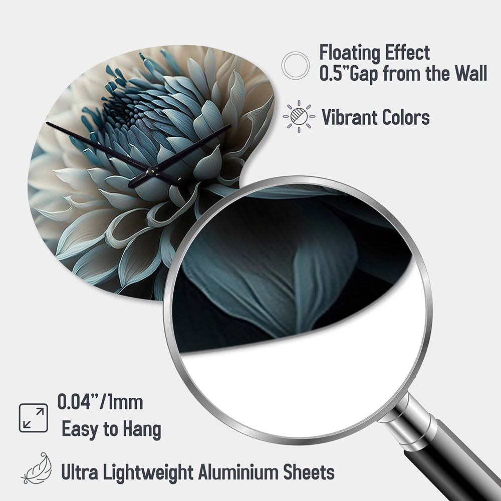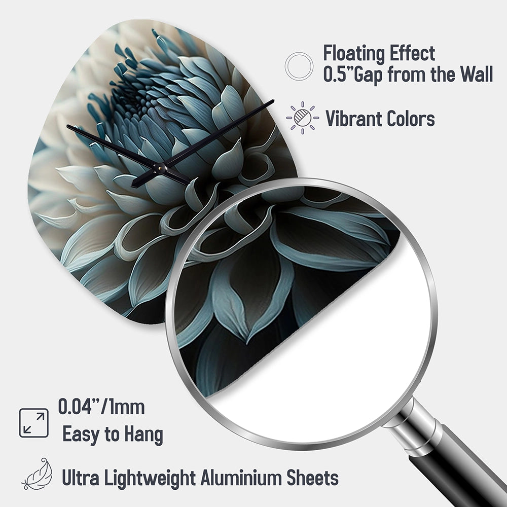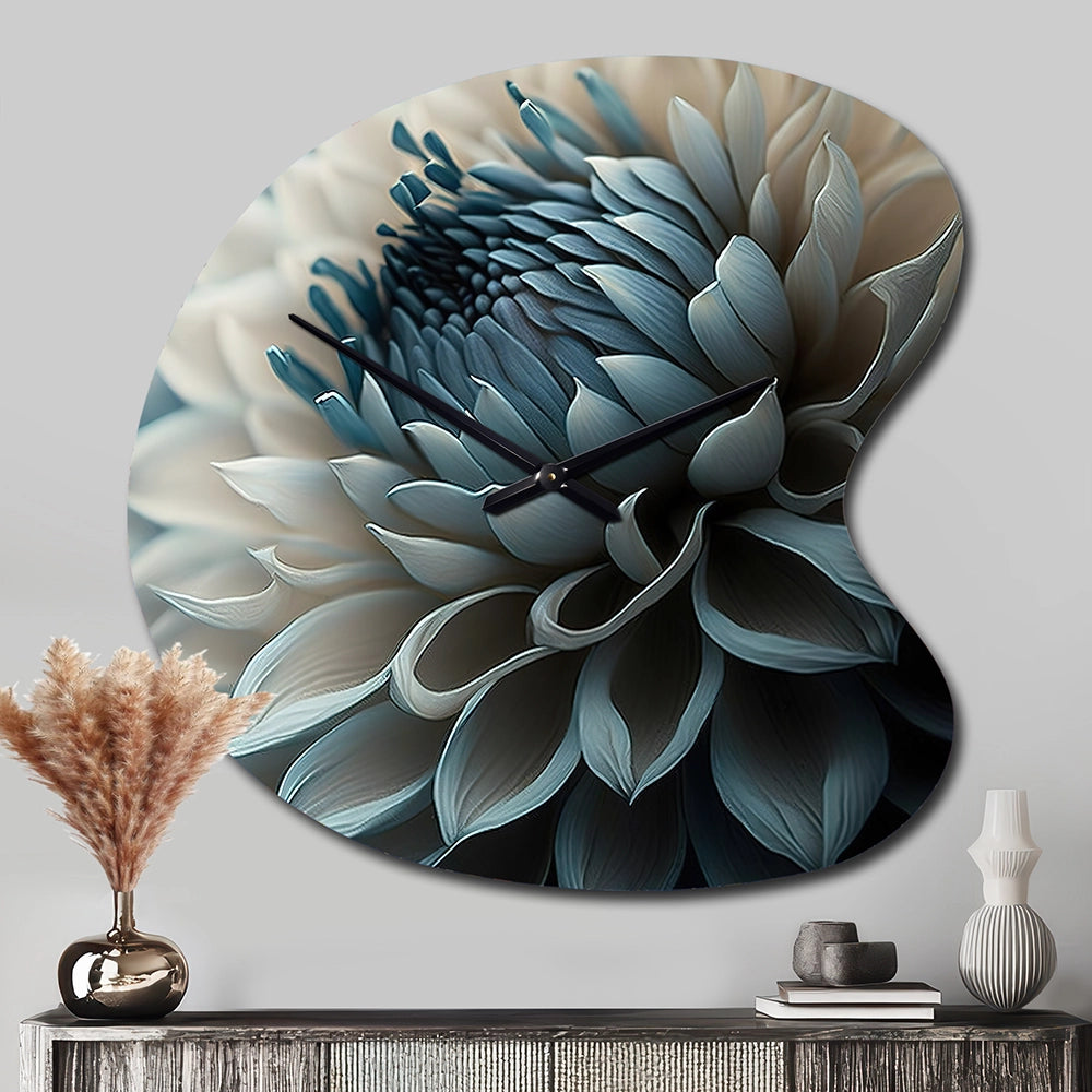 Blue And White Dahlia Flowers II - Asymmetric Metal Wall Clock