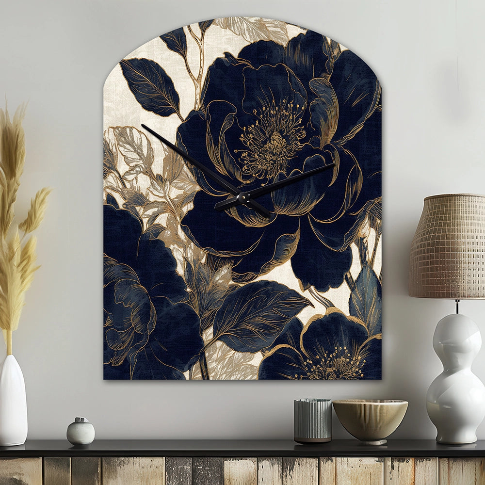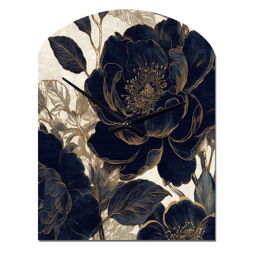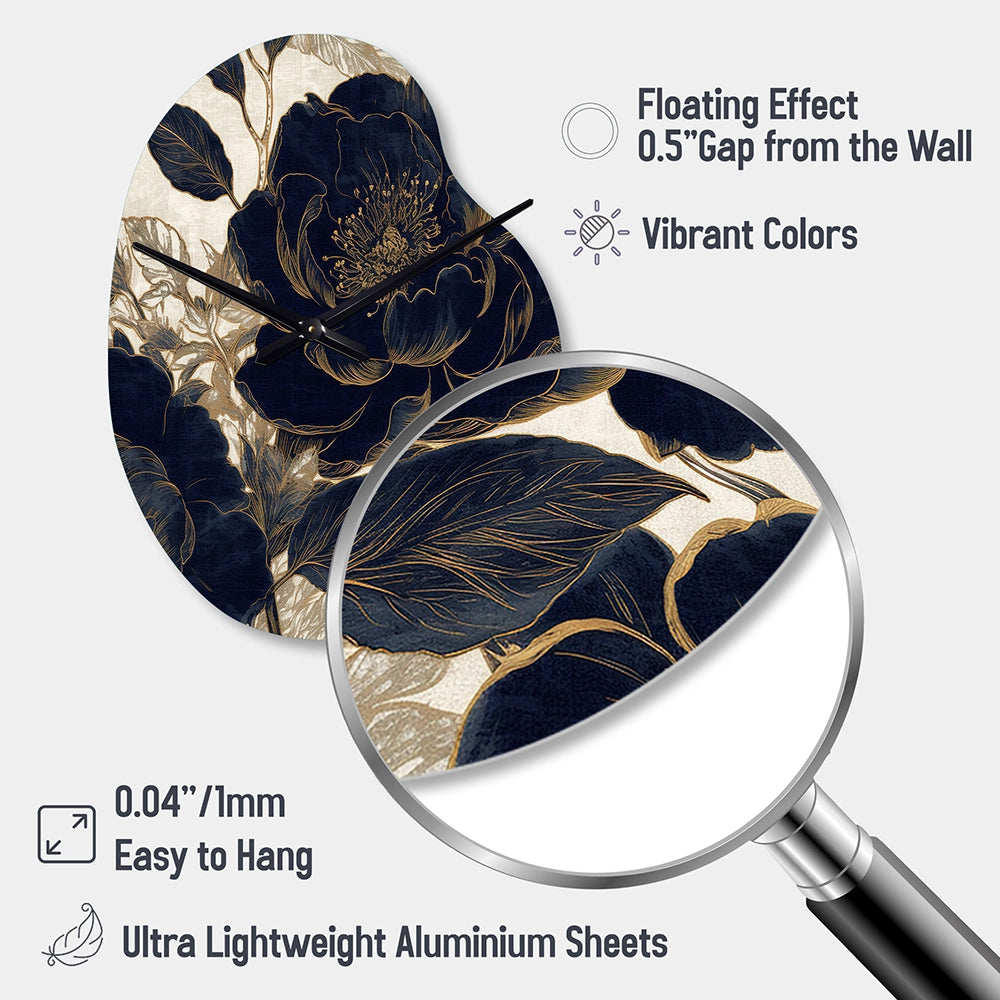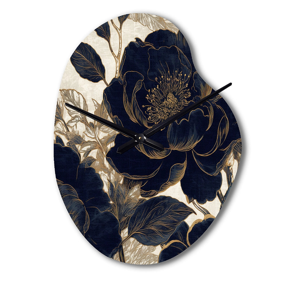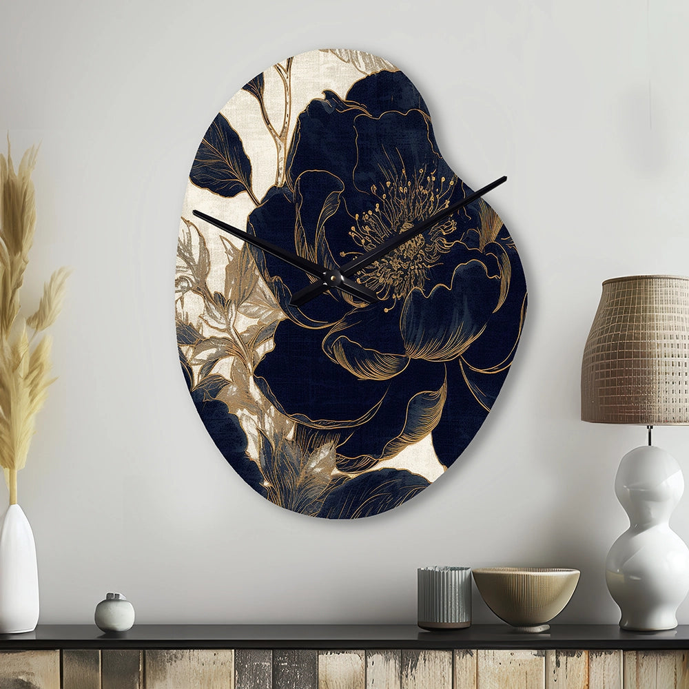 Blue Gold Peonies Celebration I - Asymmetric Metal Wall Clock