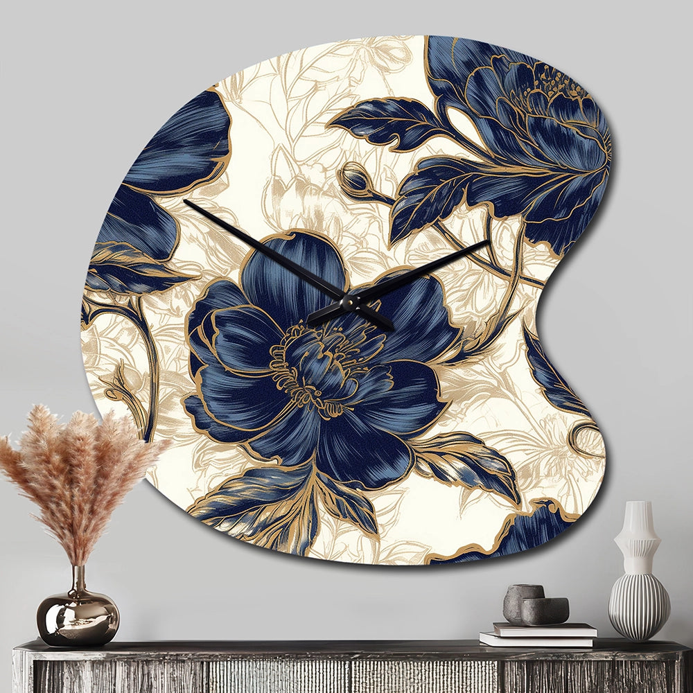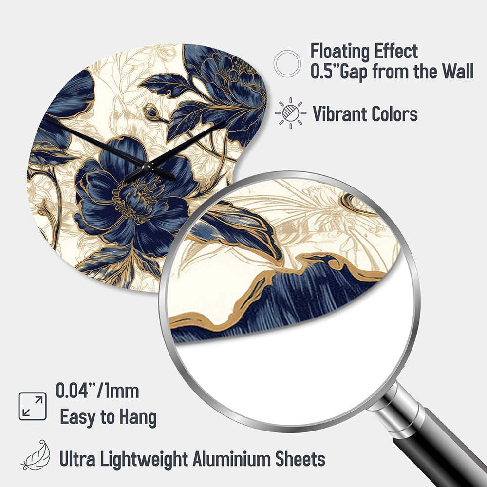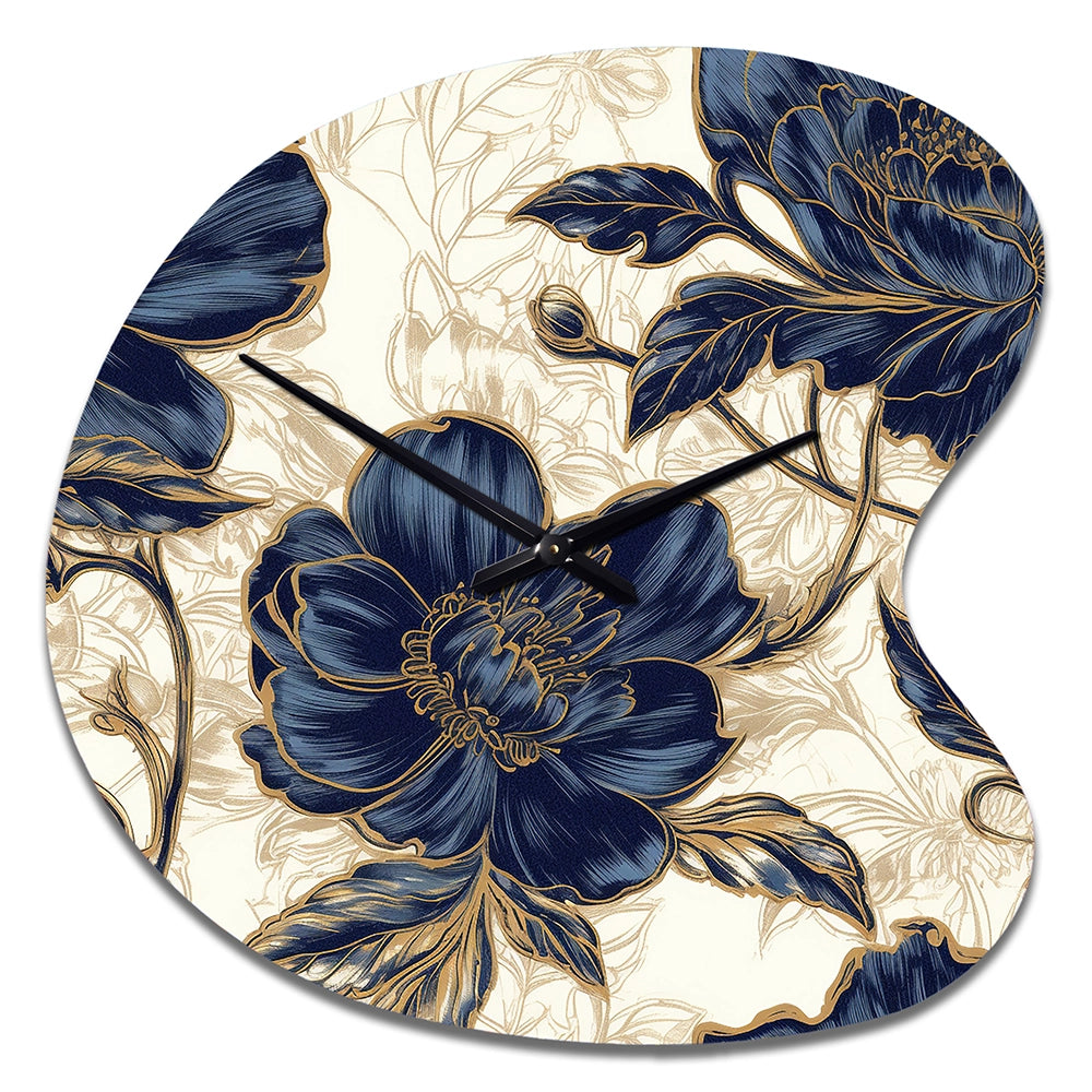 Blue Gold Peonies Celebration VII - Asymmetric Metal Wall Clock