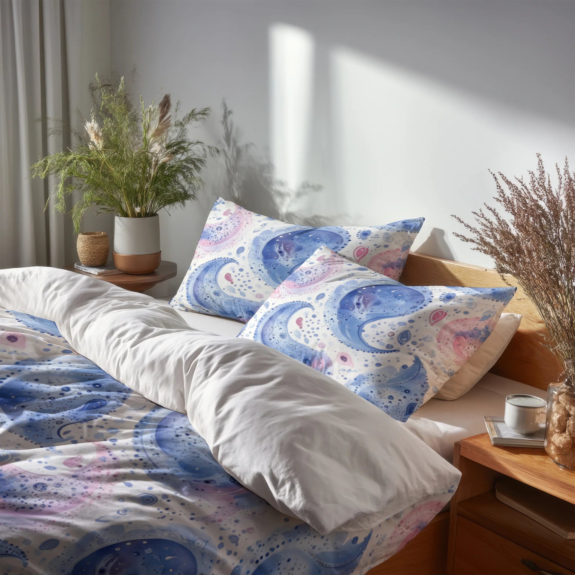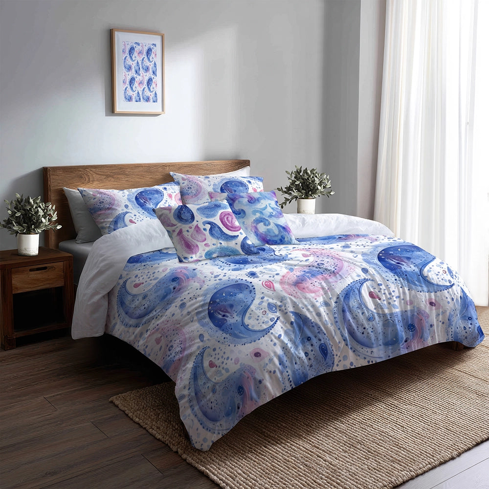 Boho Bedding Set - Blue And Pink Delicate Paisley Duvet Cover And Cushion Set