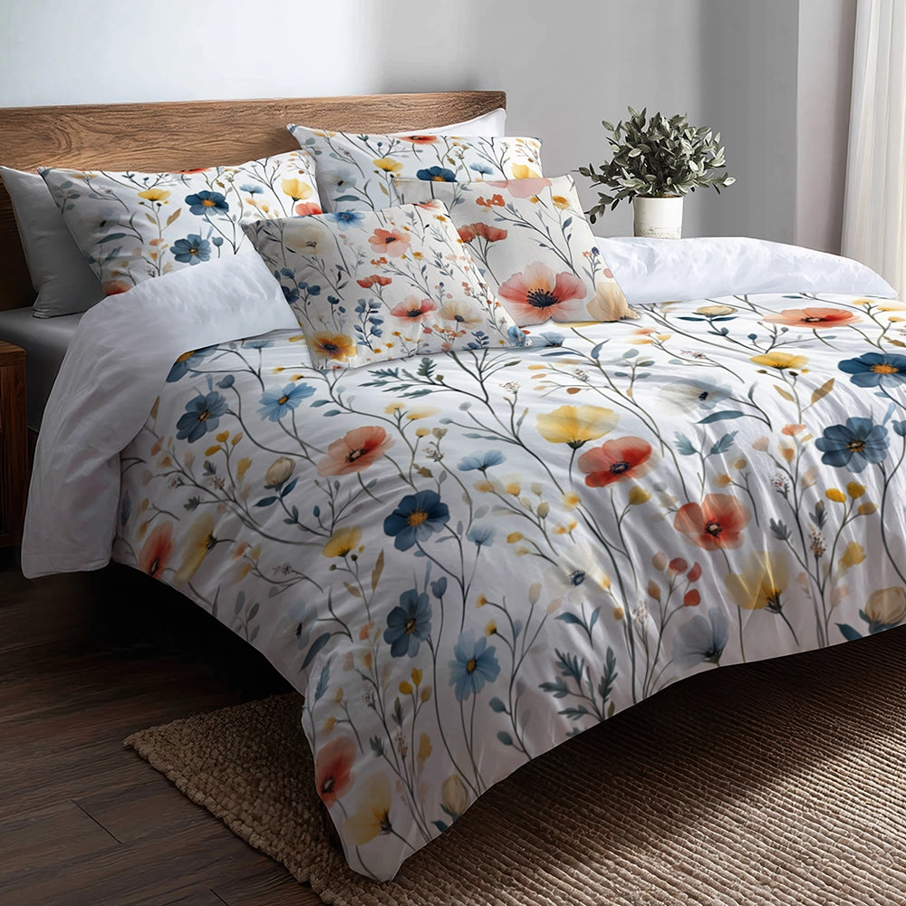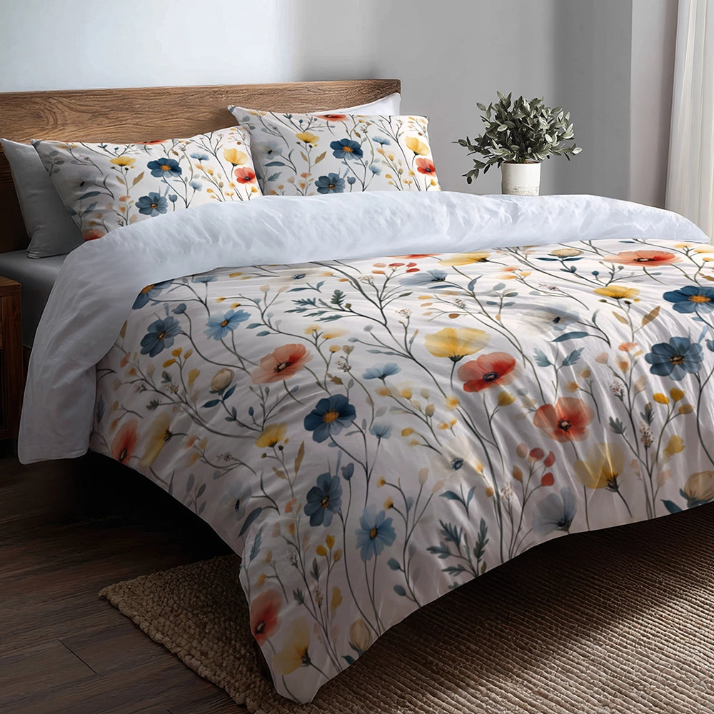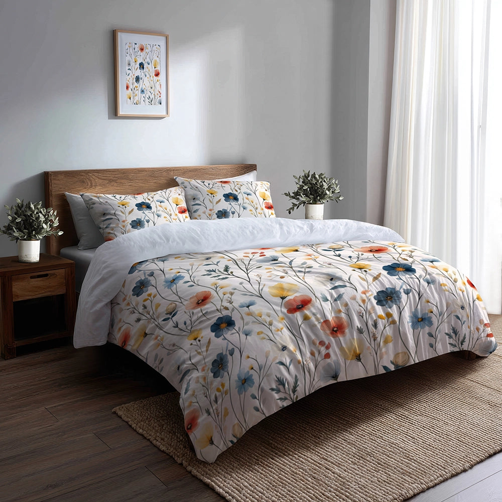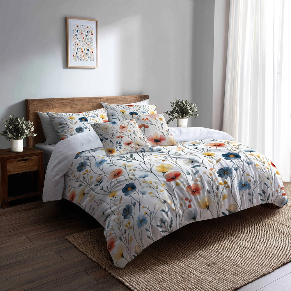 Boho Bedding Set - Boho Meadow Flowers Duvet Cover And Cushion Set