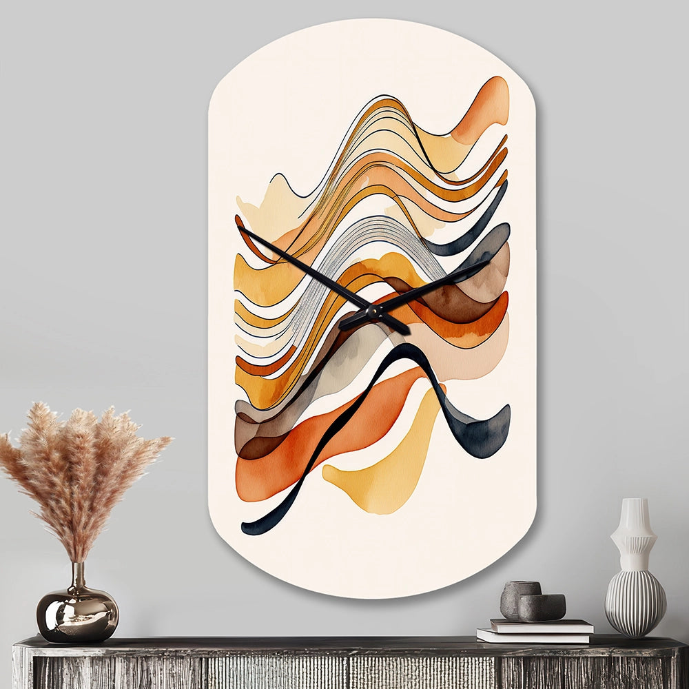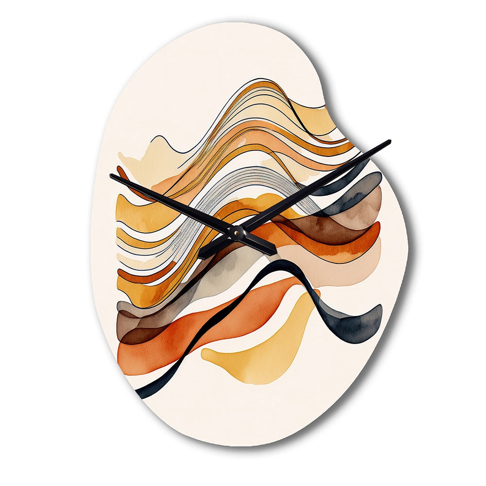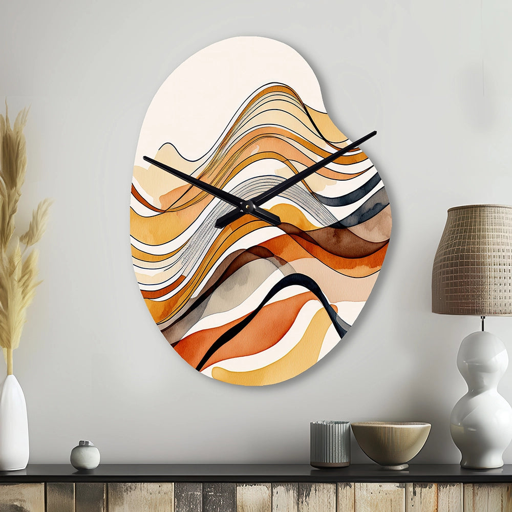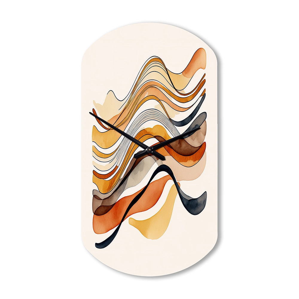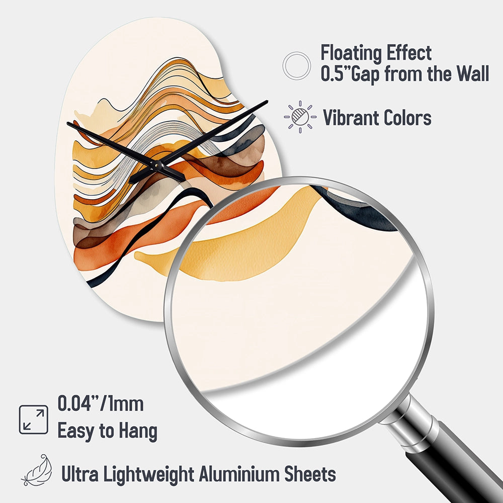 Burnt Orange Waves Abstract I - Asymmetric Metal Wall Clock