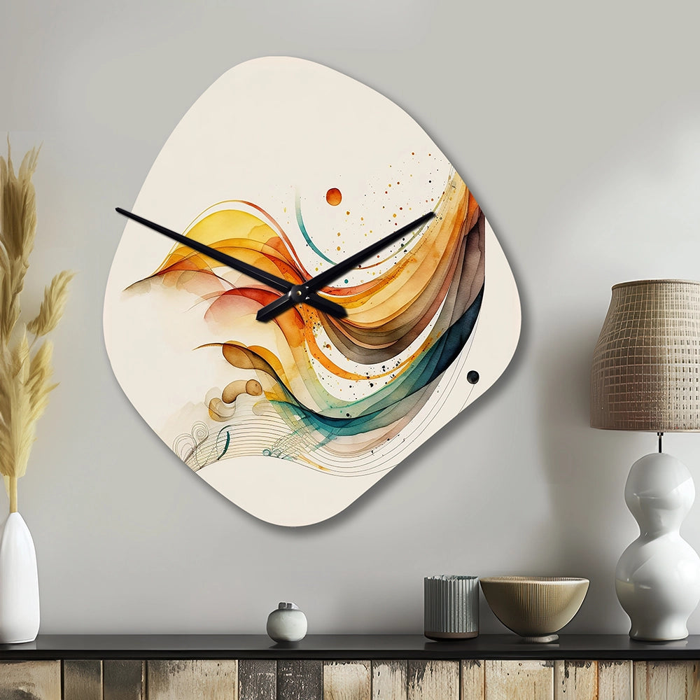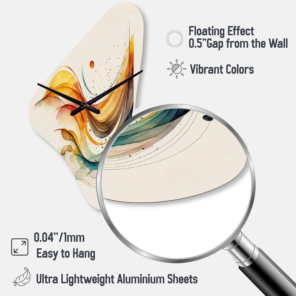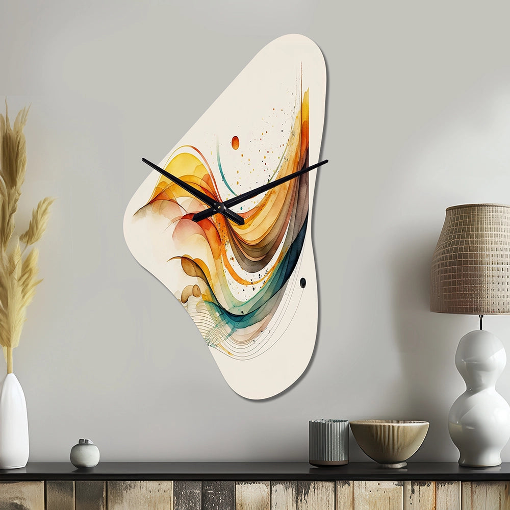 Burnt Orange Waves Abstract II - Asymmetric Metal Wall Clock