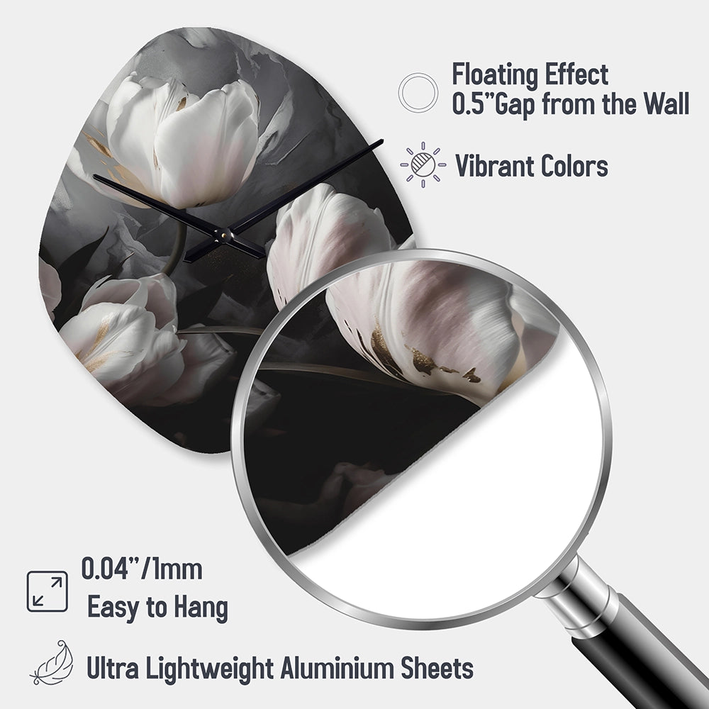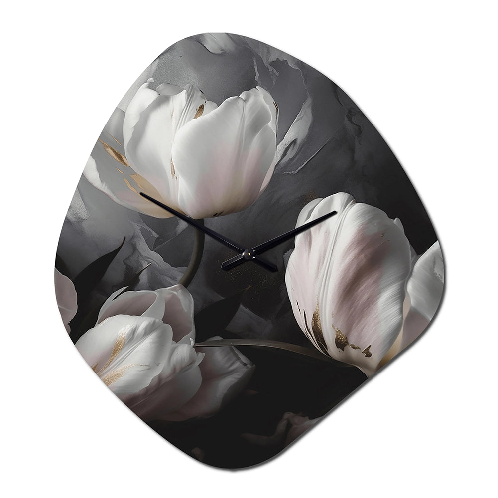 Cream Serenade Of Tulips I - Asymmetric Metal Wall Clock