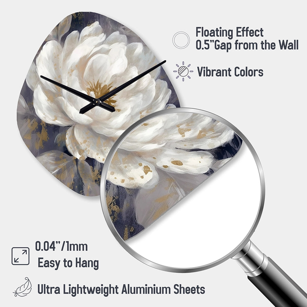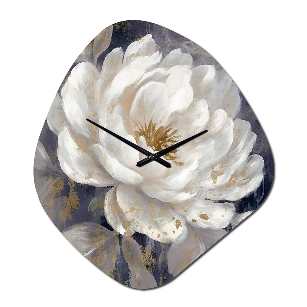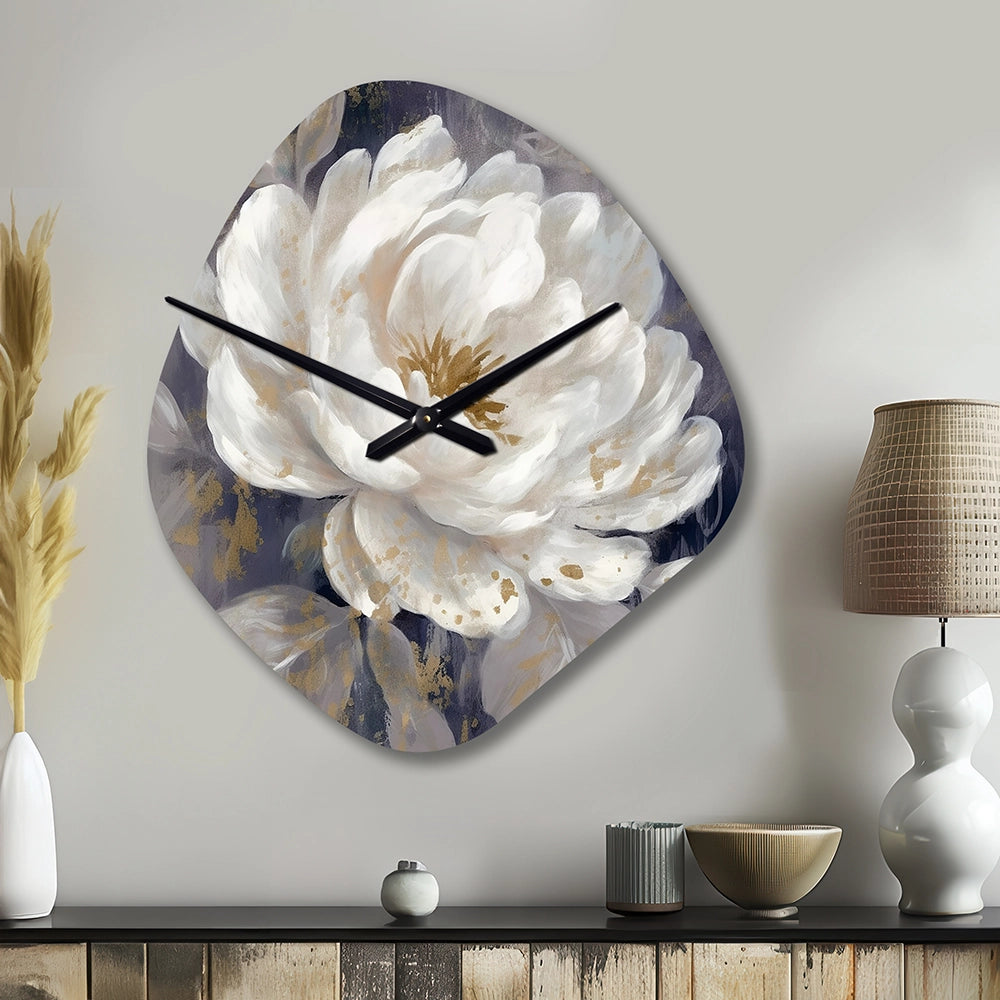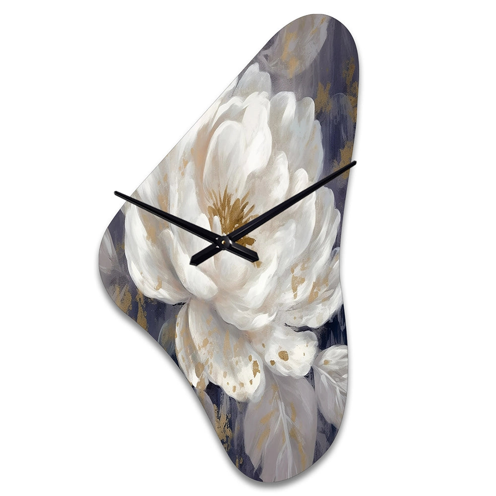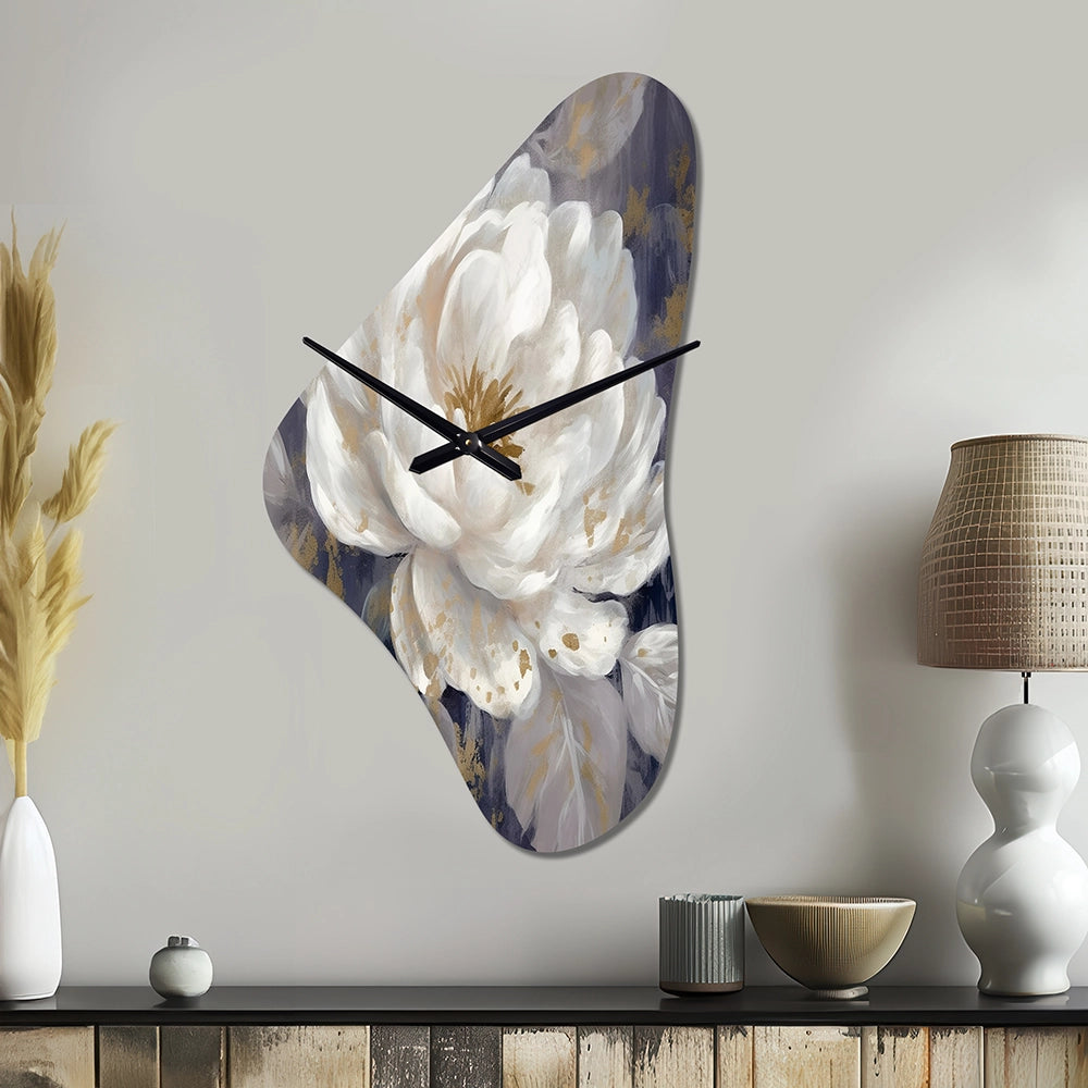 Emotions Of White Blue Peony Flower III - Asymmetric Metal Wall Clock