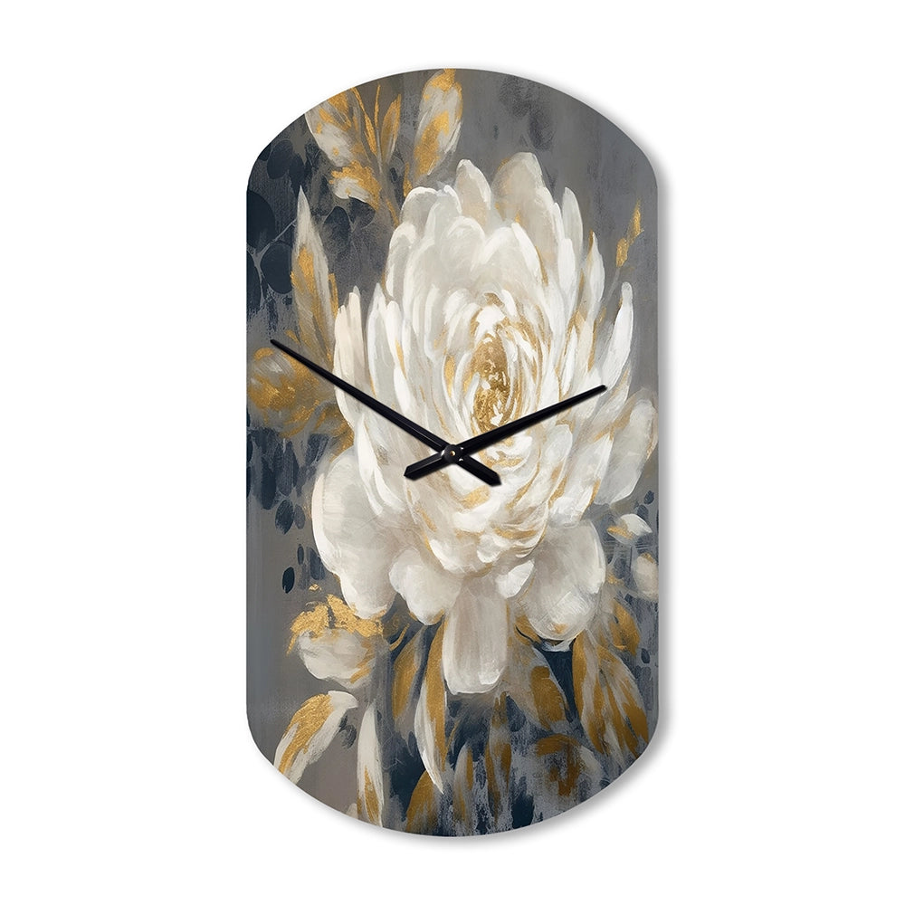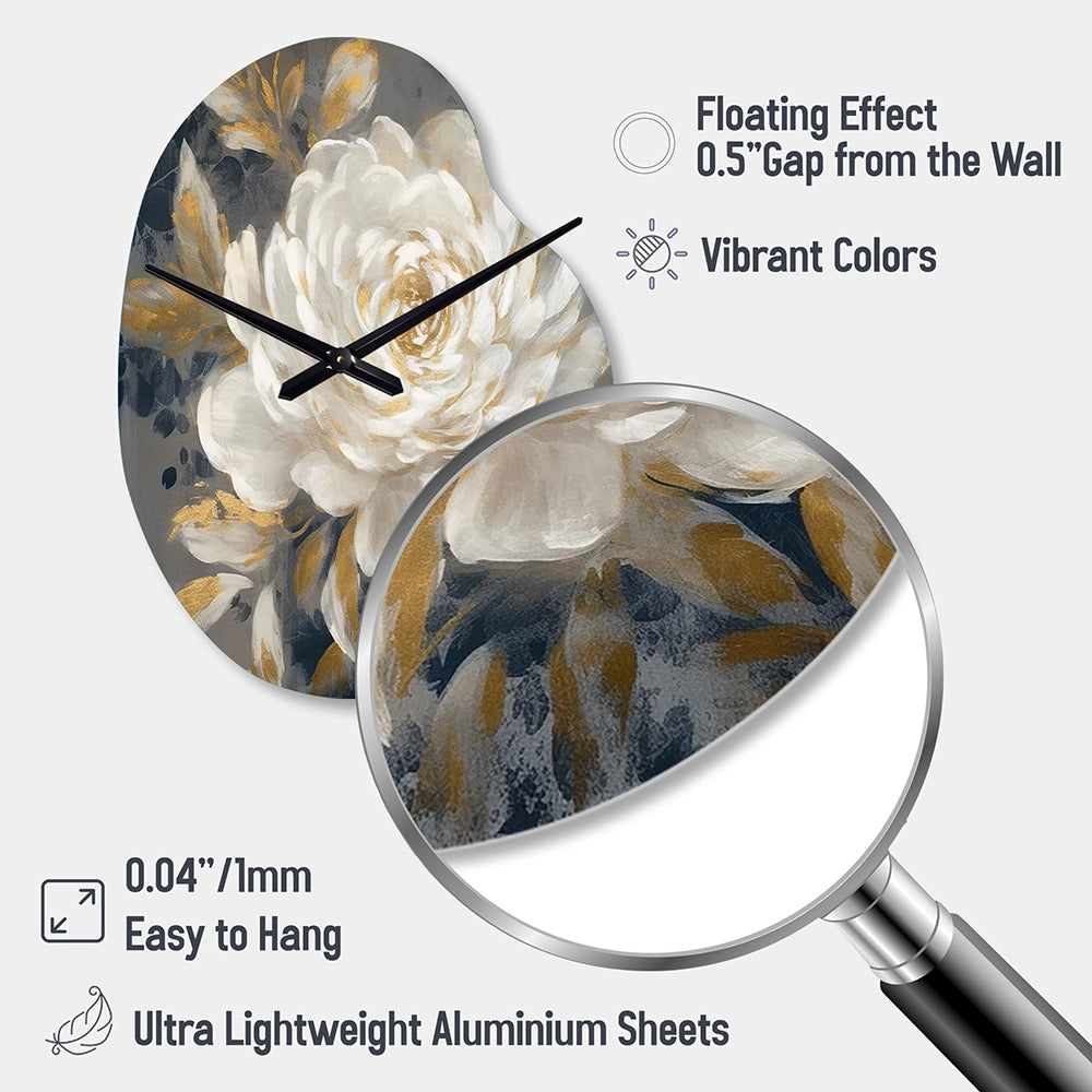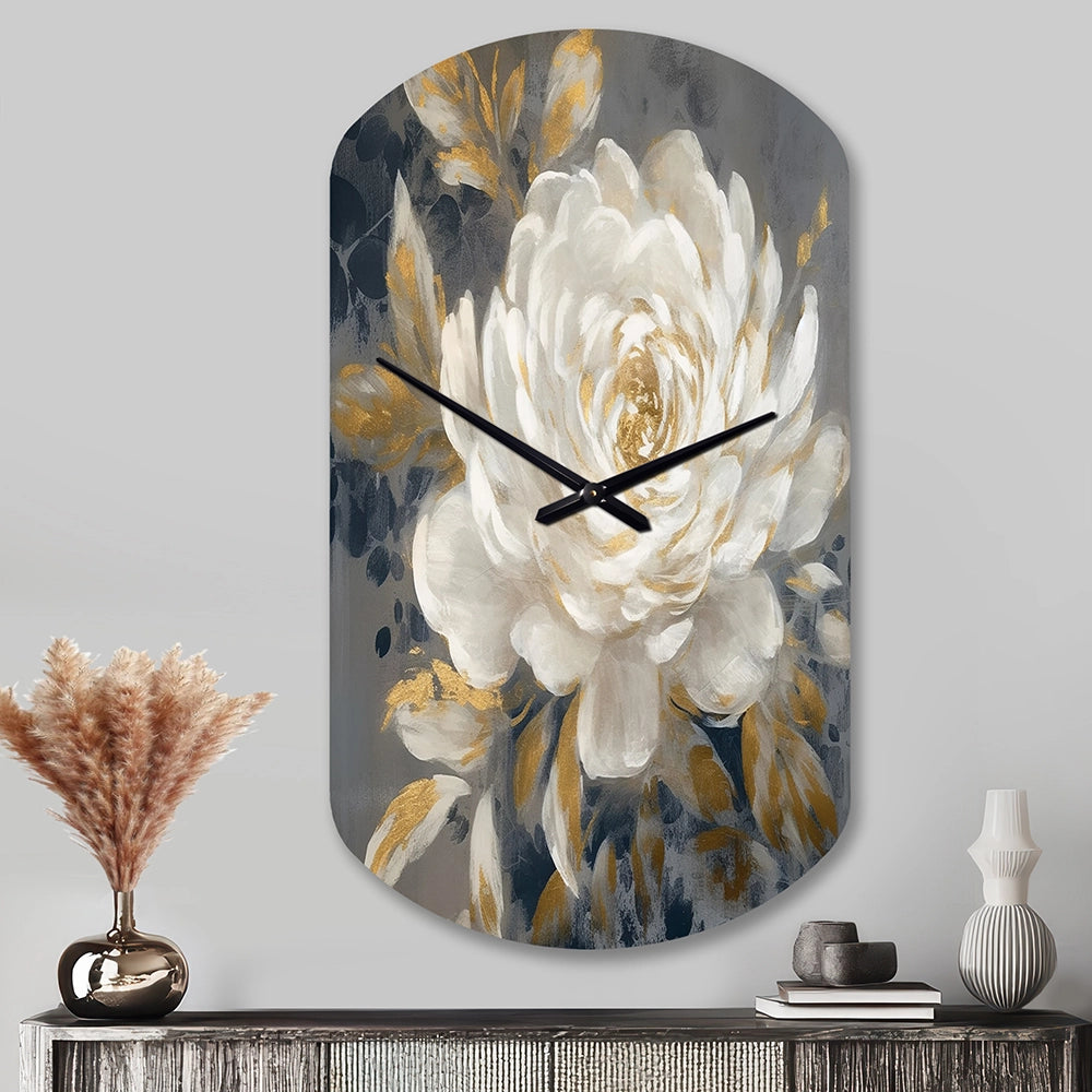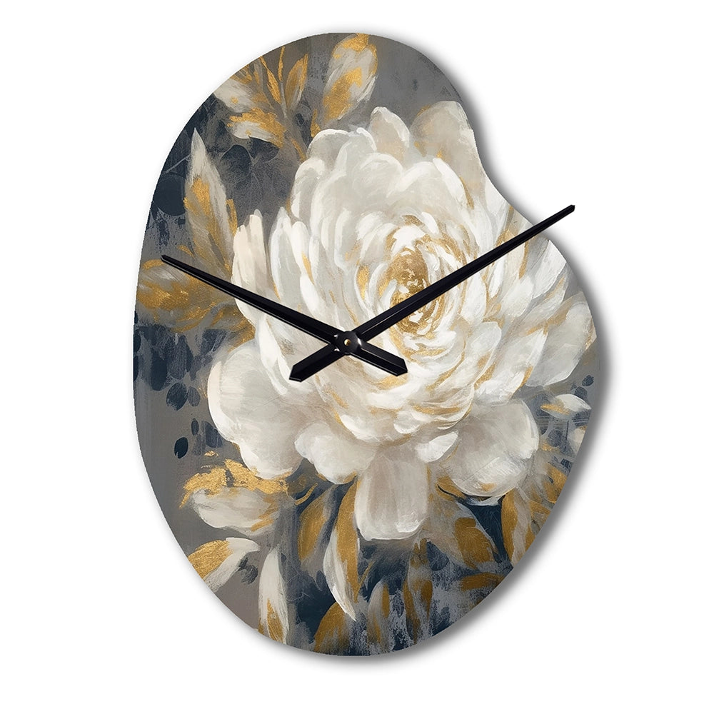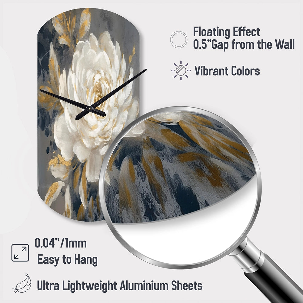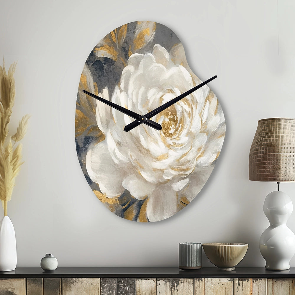 Emotions Of White Gold Peony Flower II - Asymmetric Metal Wall Clock
