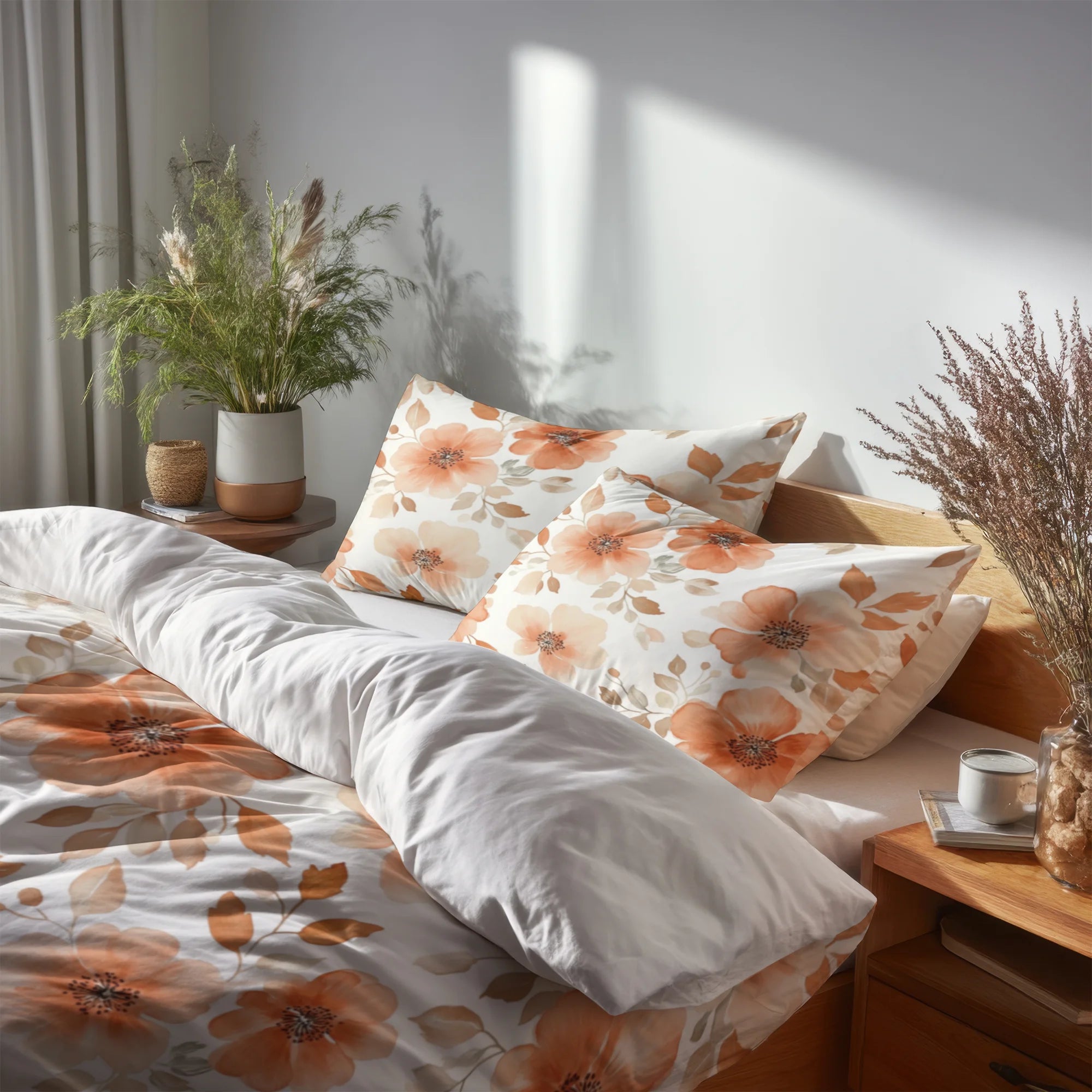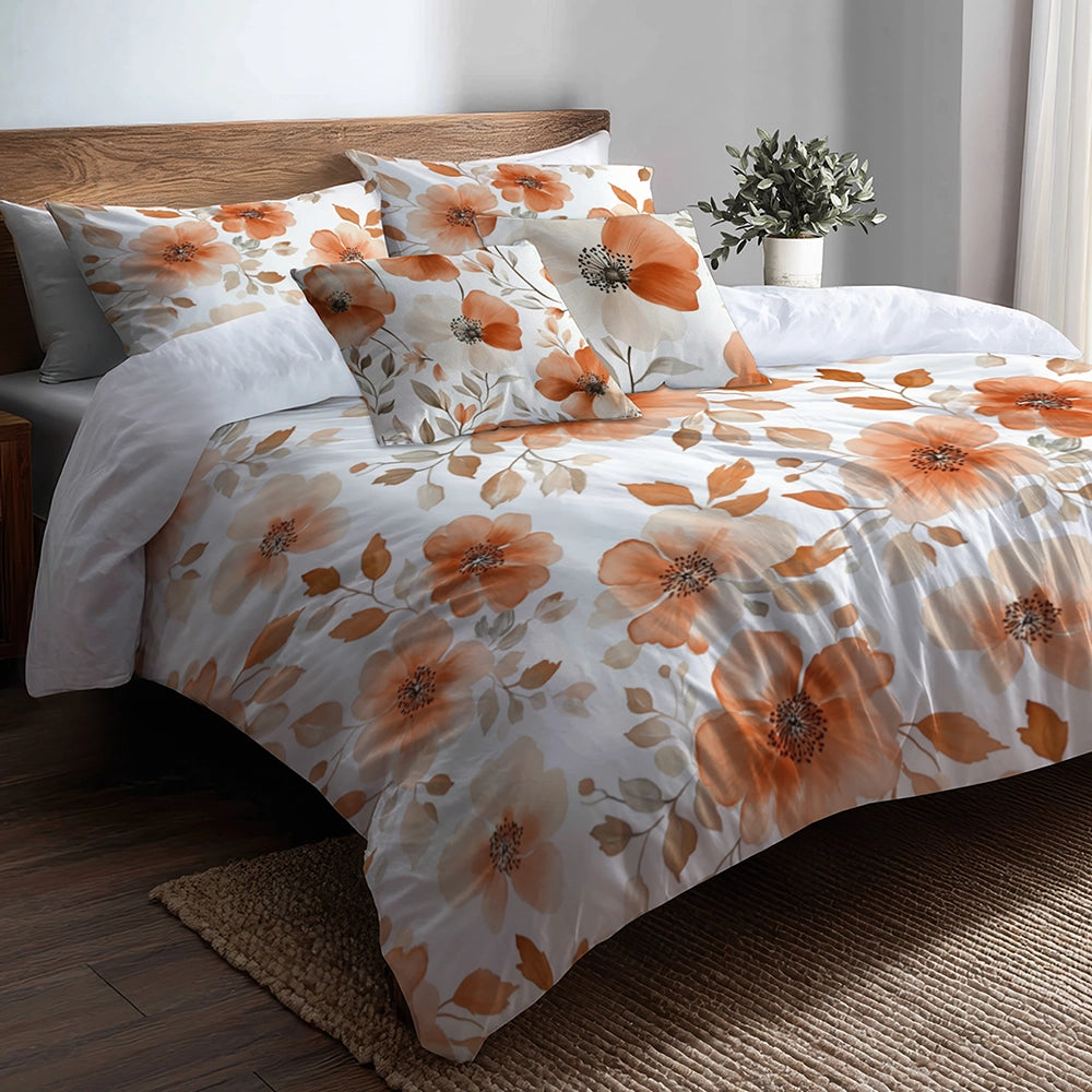 Floral Duvet Cover Set of 5 - Terra Bloom Bedding And Throw Pillow Set