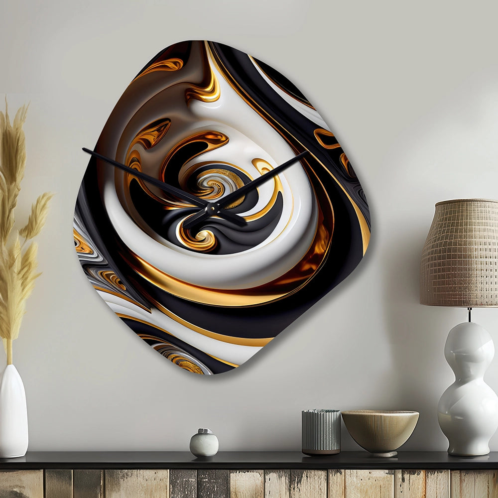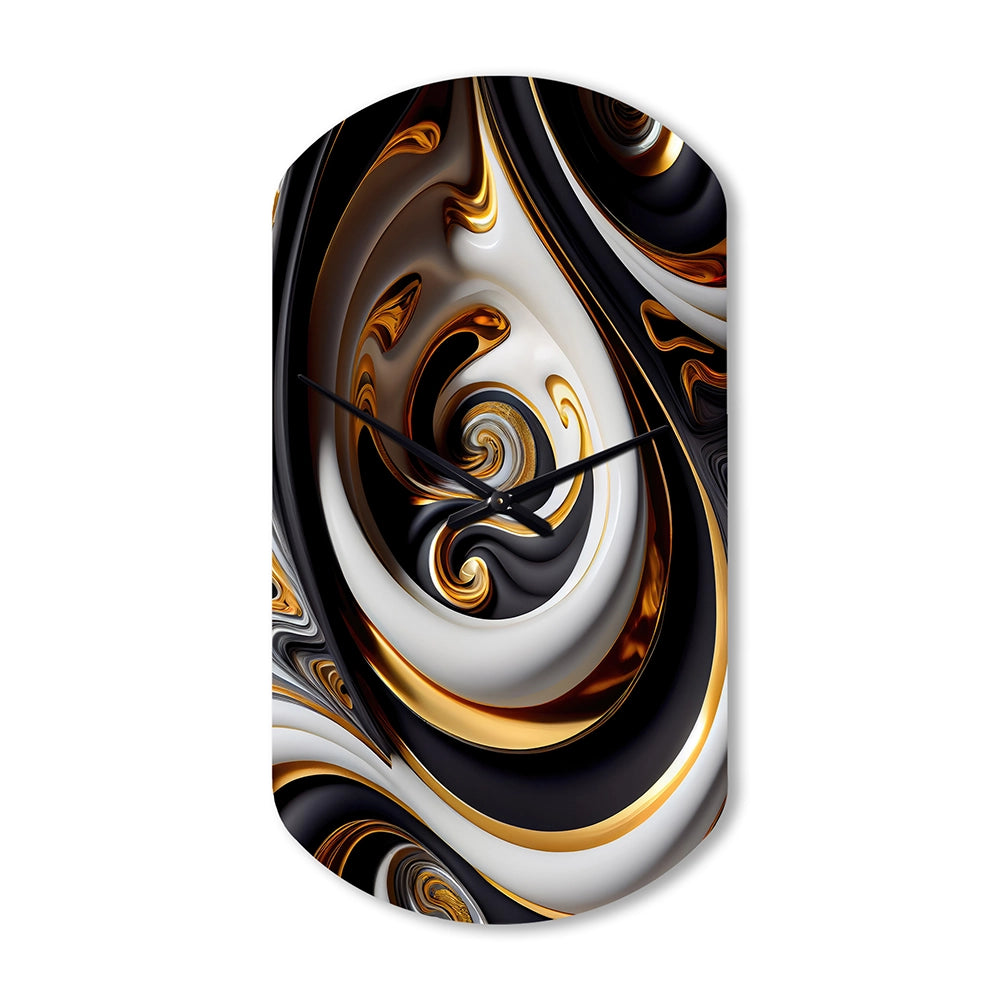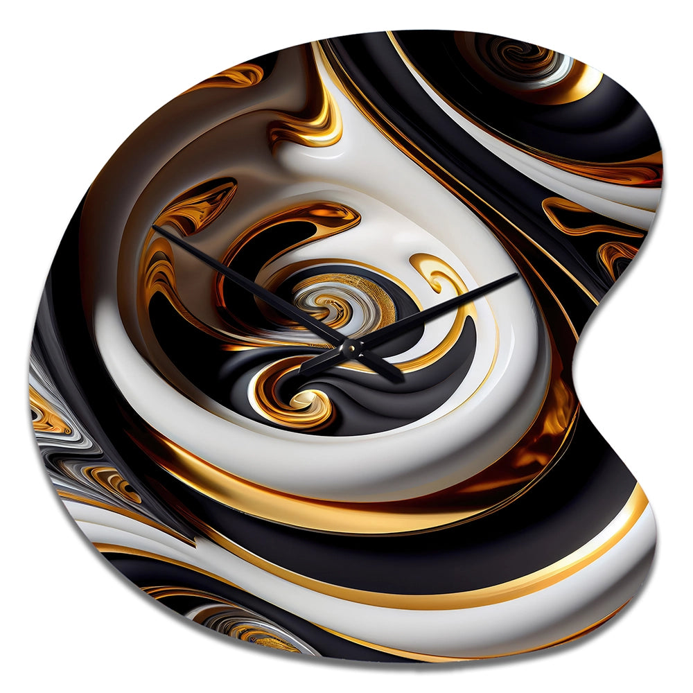 Gold And Black Stained Glass Spiral IV - Asymmetric Metal Wall Clock