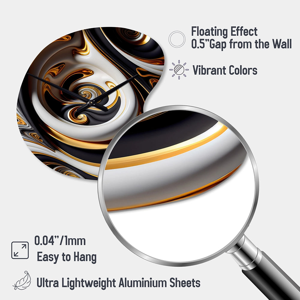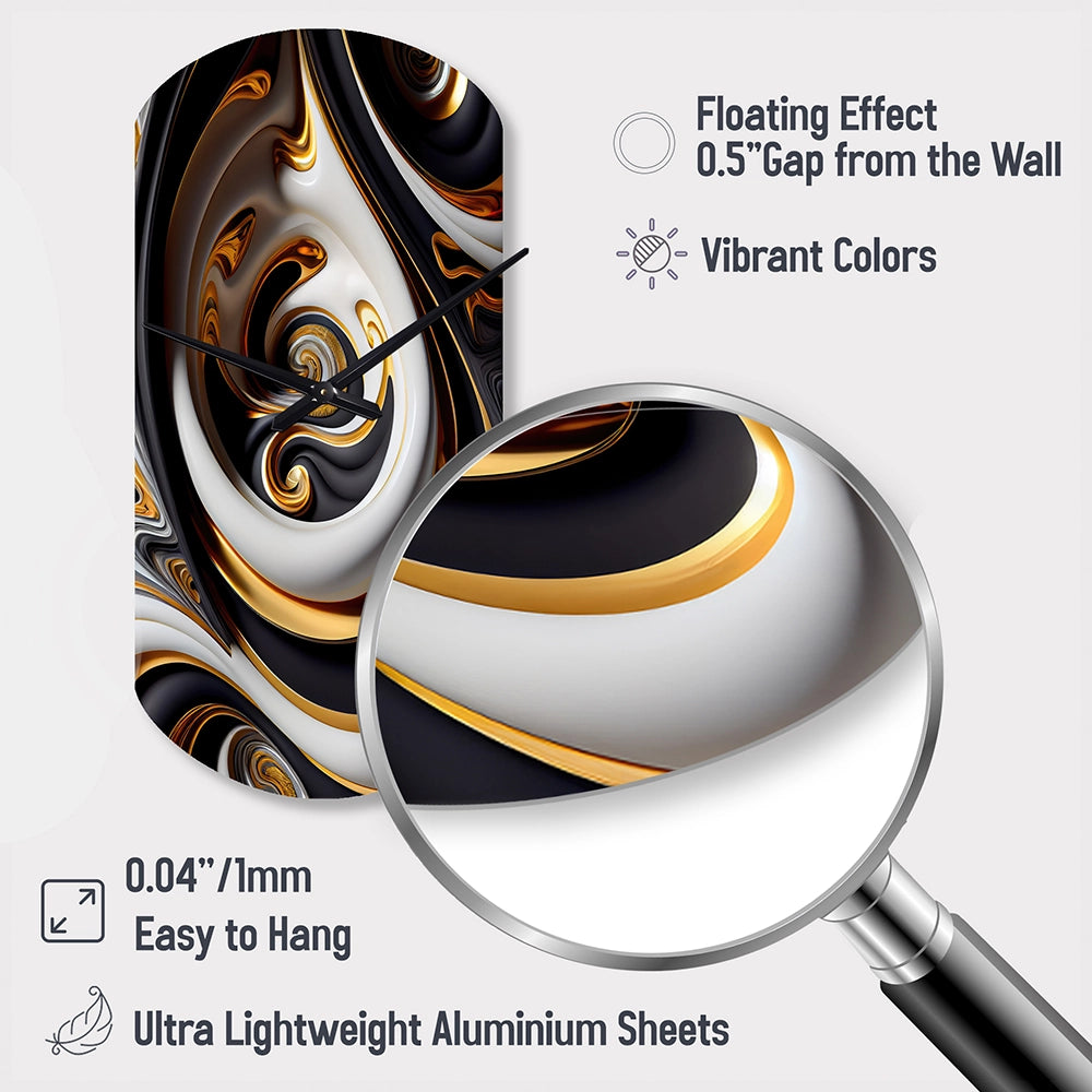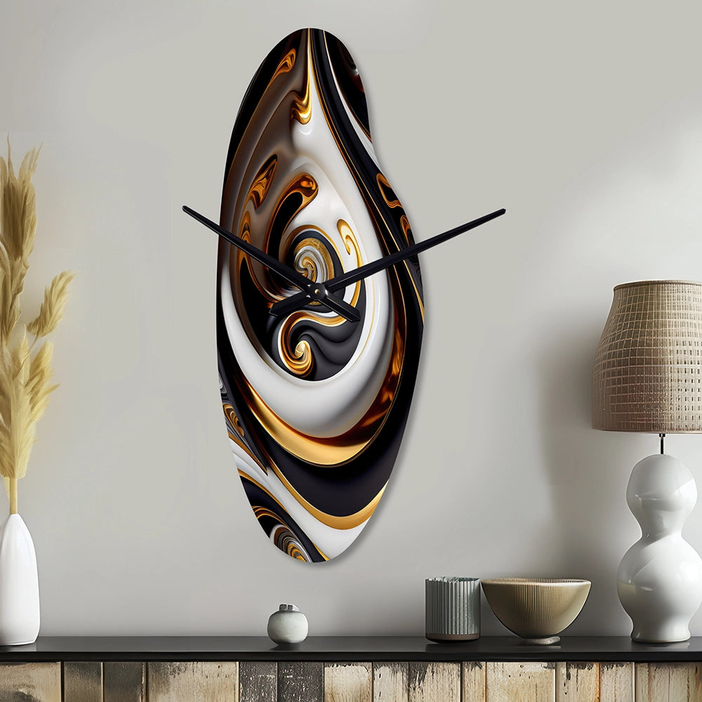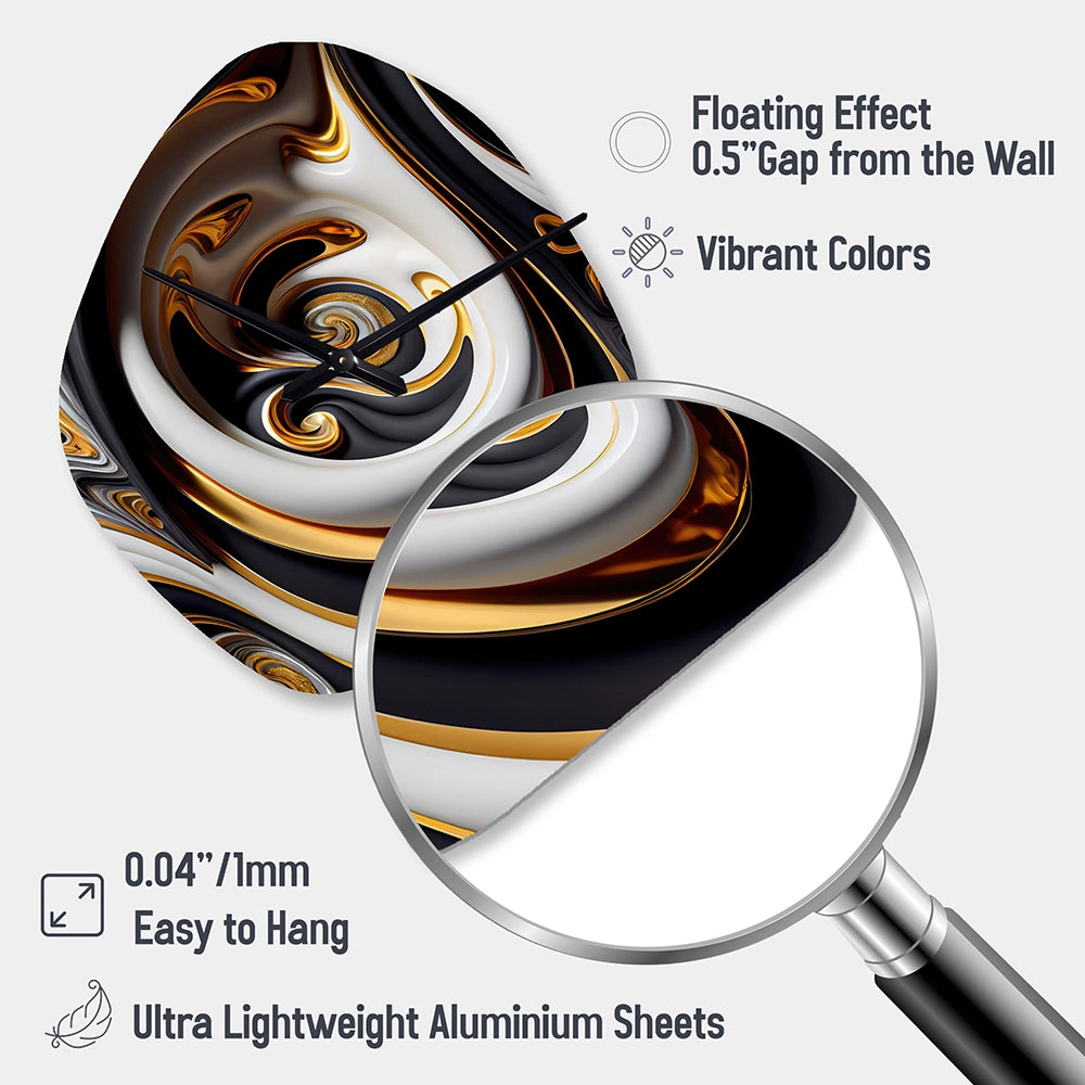 Gold And Black Stained Glass Spiral IV - Asymmetric Metal Wall Clock