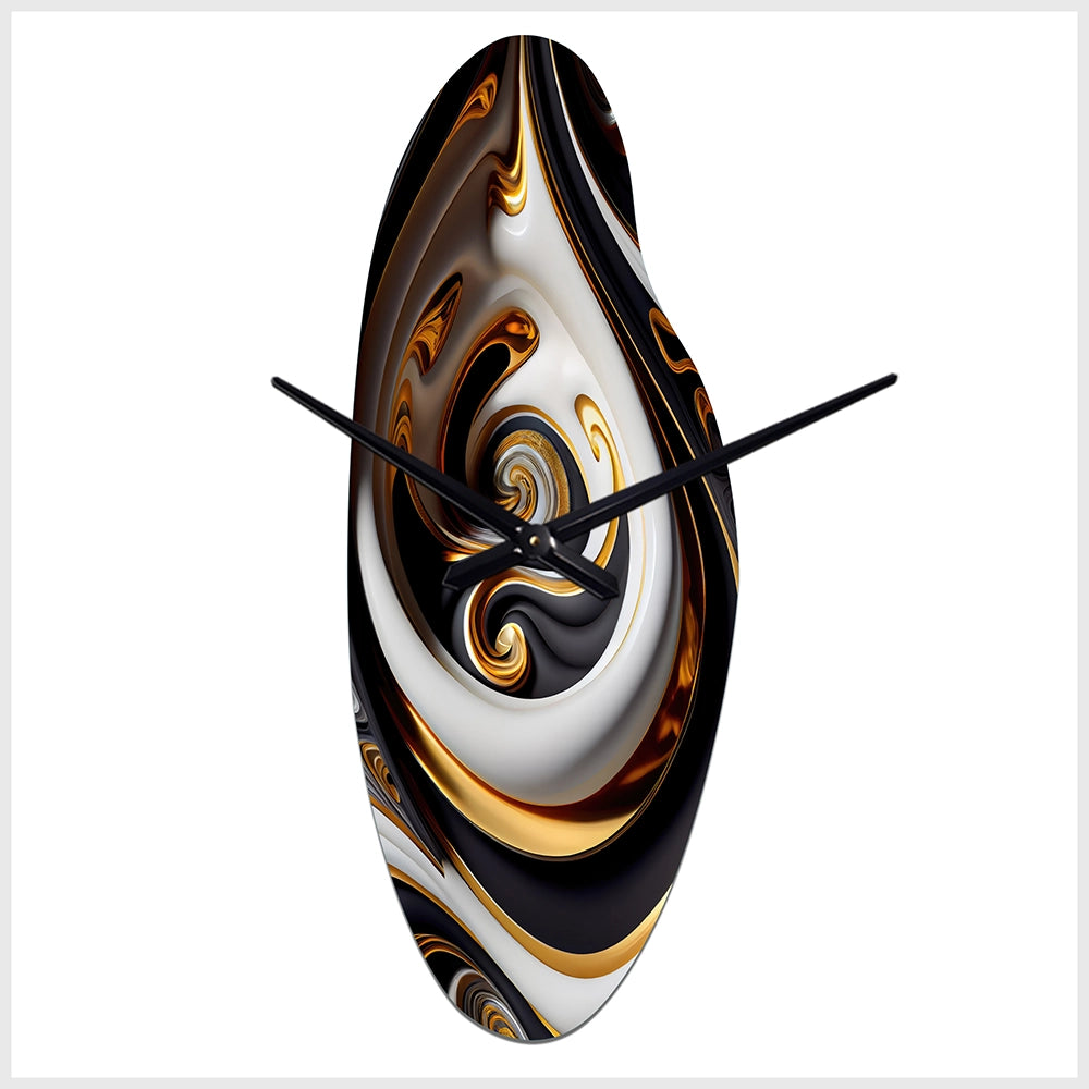 Elevate your space with this Modern asymmetrical metal wall Clock. Our handcrafted metal wall sculptures combine modern design with artistic elegance, creating a striking focal point in any room. This asymmetric metal wall Clock features unique, irregular shapes that bring dynamic movement and depth to your walls. Perfect for Abstract decor, these Gold irregular metal wall sculptures are printed on aluminum panel, with extra gloss ensuring long-lasting beauty. Ideal for living rooms, offices decor, or entrance, this statement piece adds a bold, Abstract touch to any decor.