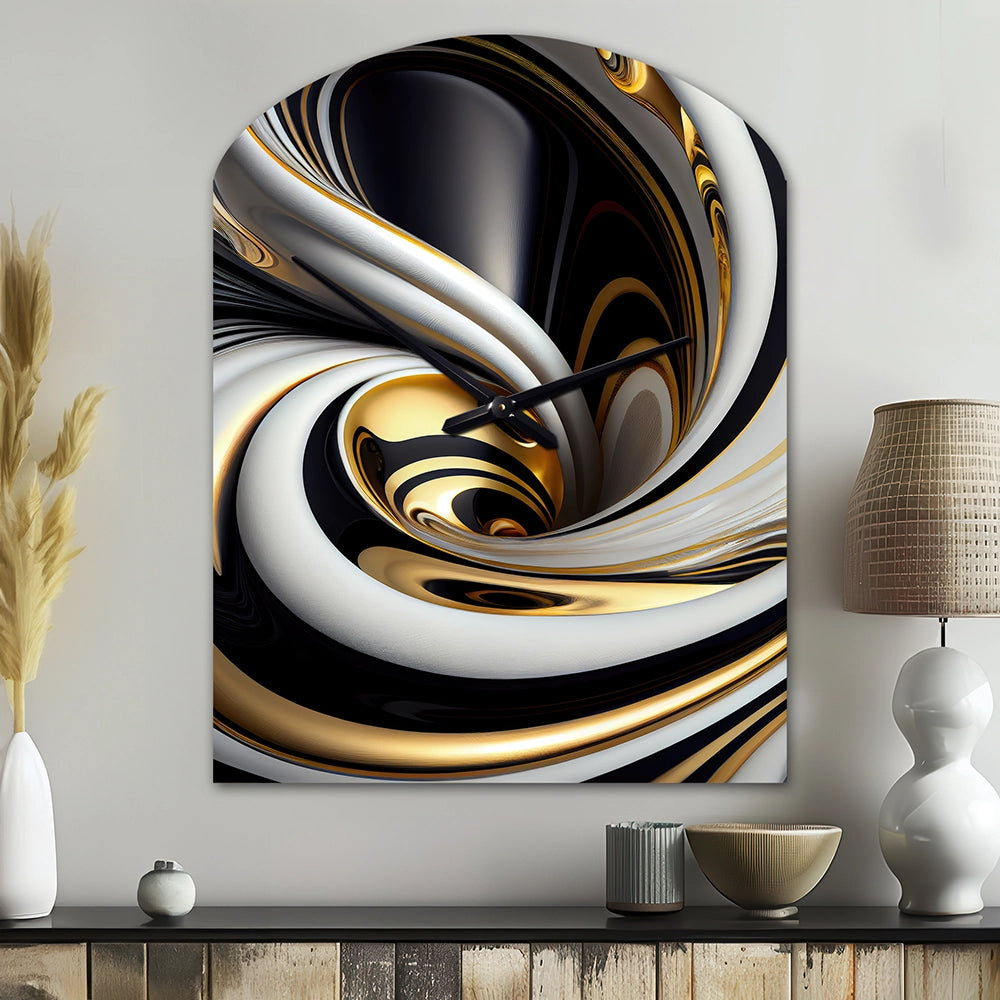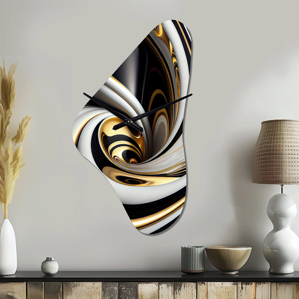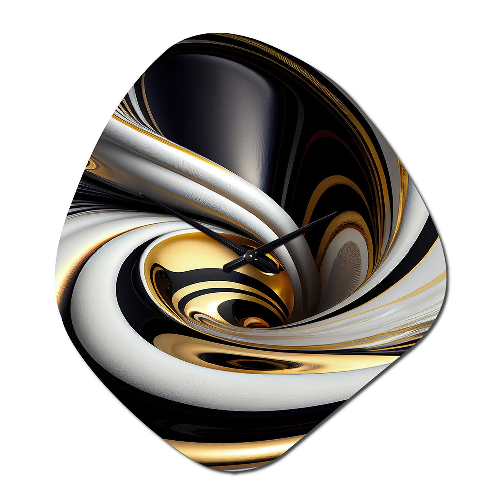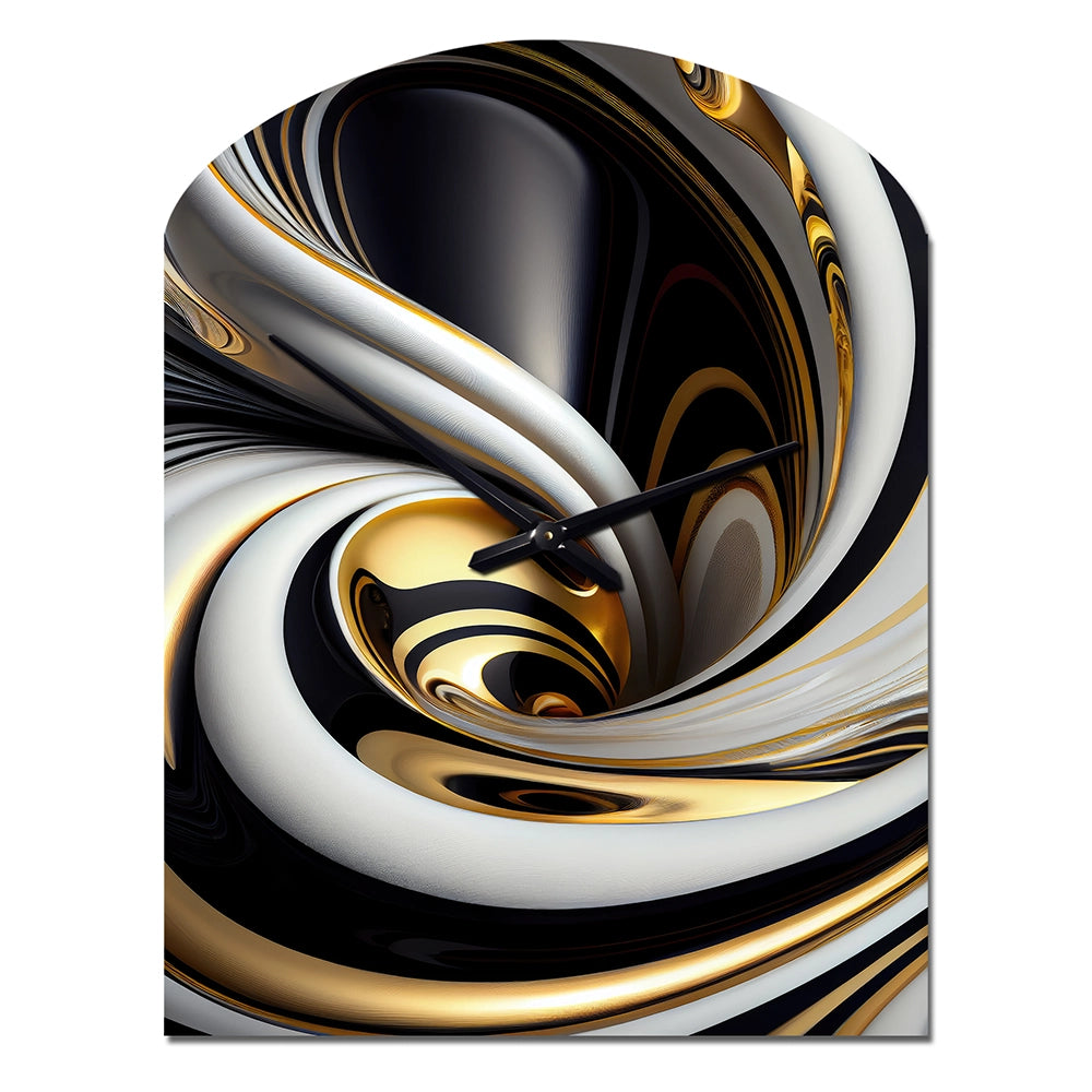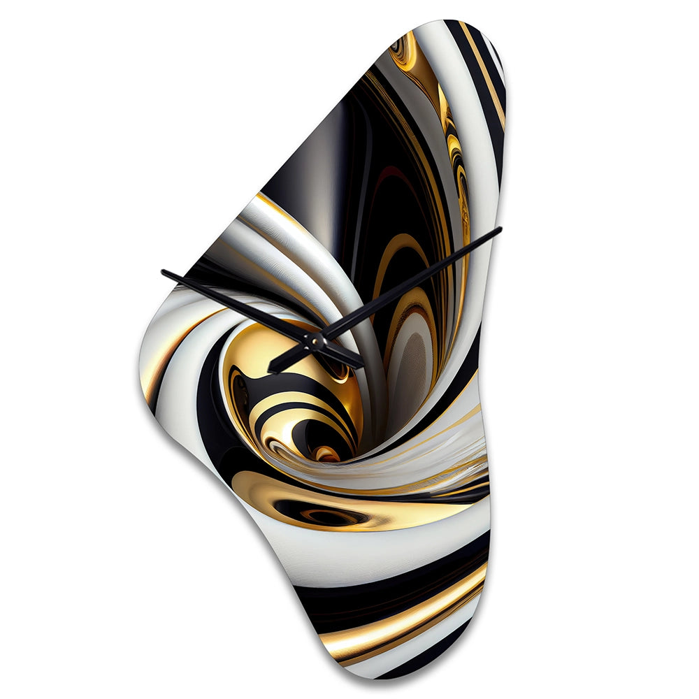 Gold Black And White Stained Glass I - Asymmetric Metal Wall Clock