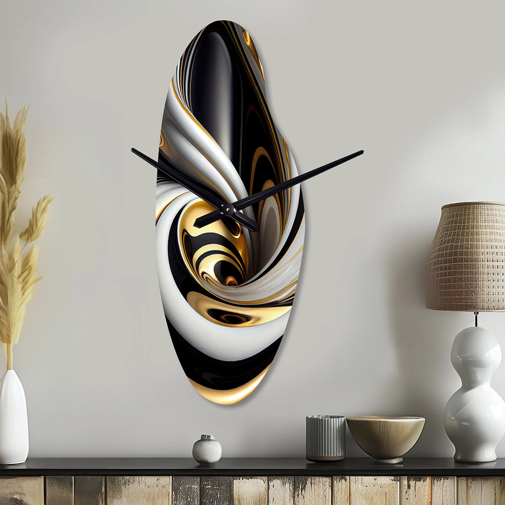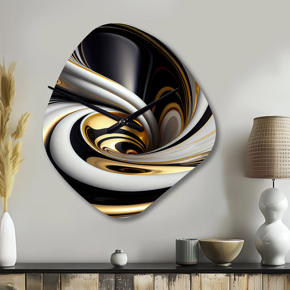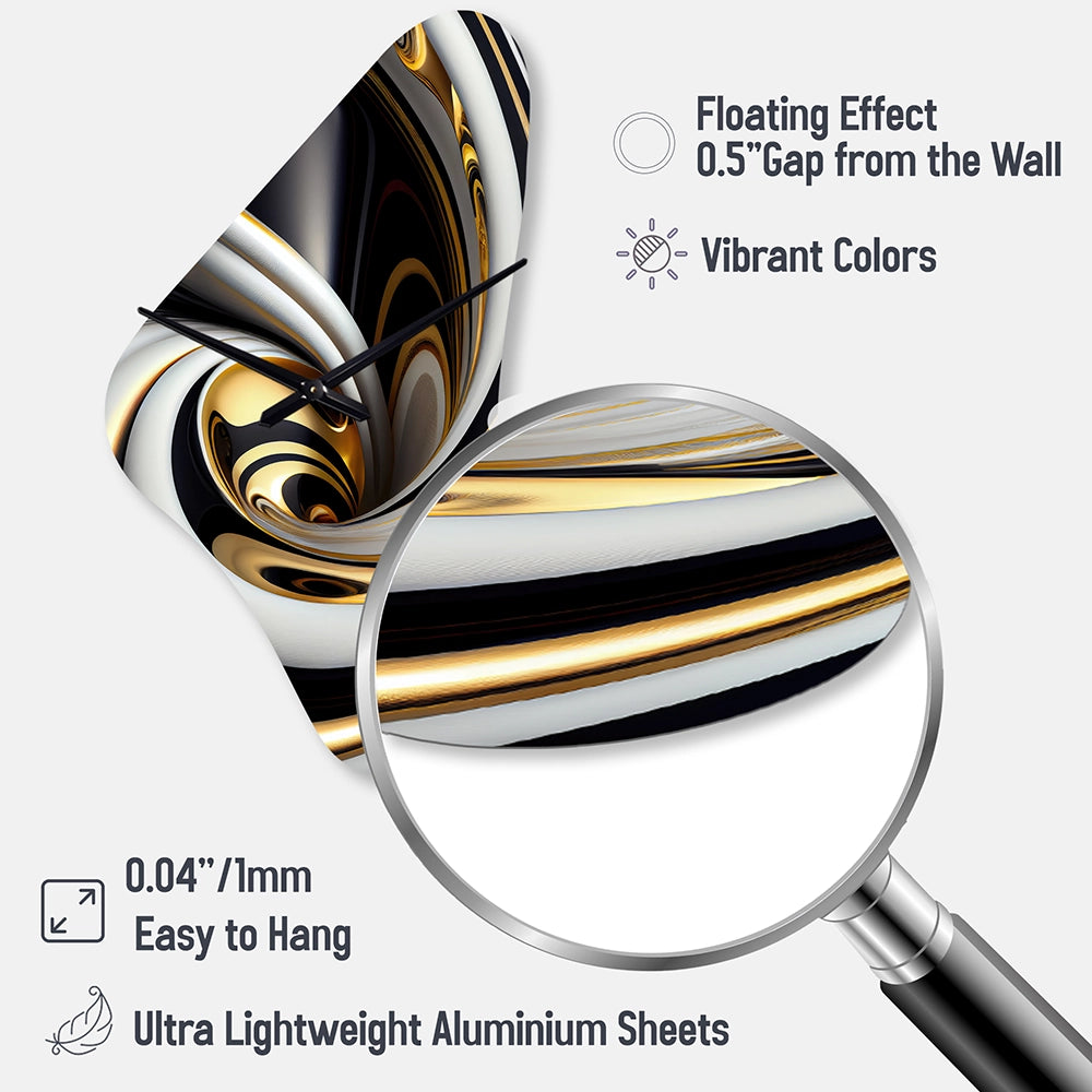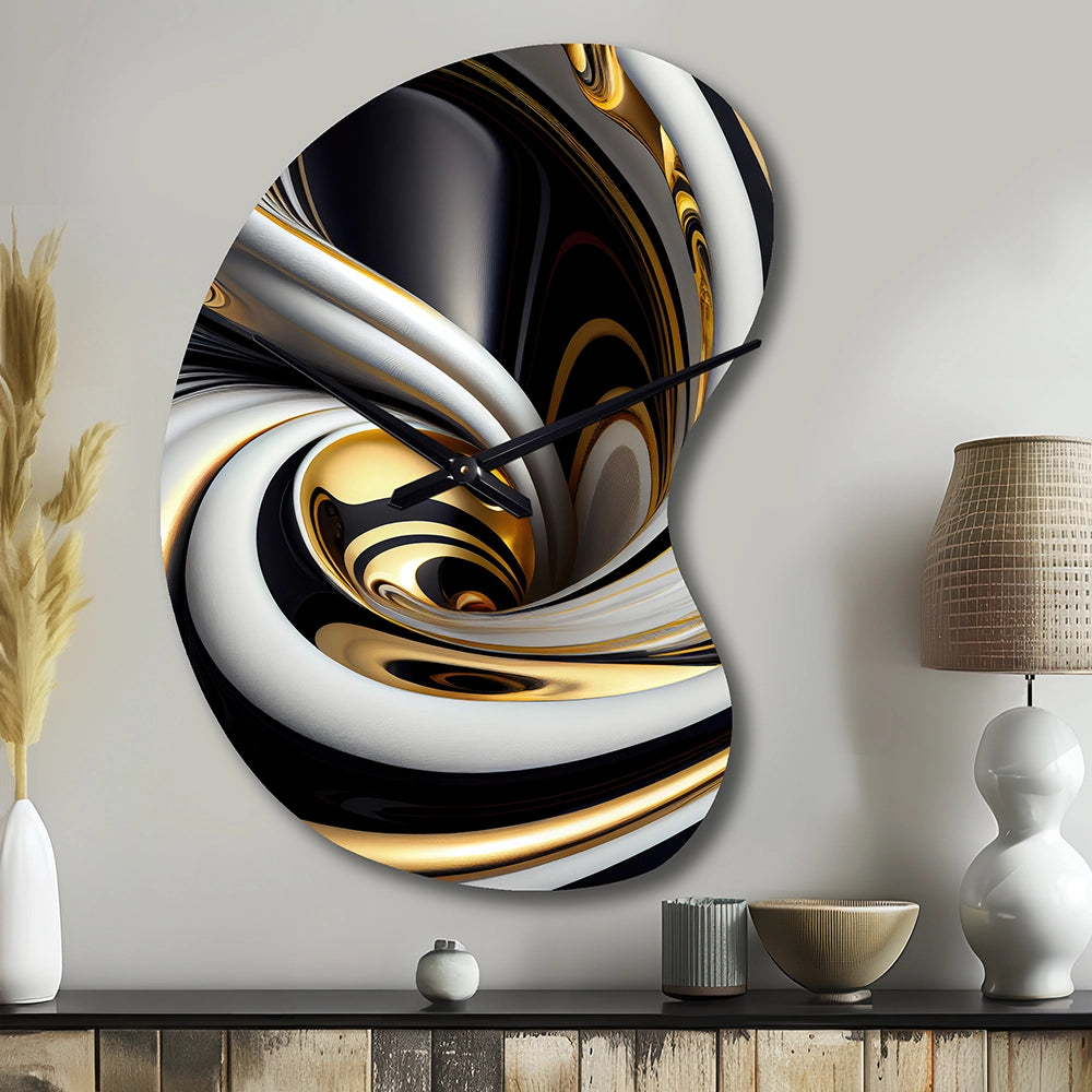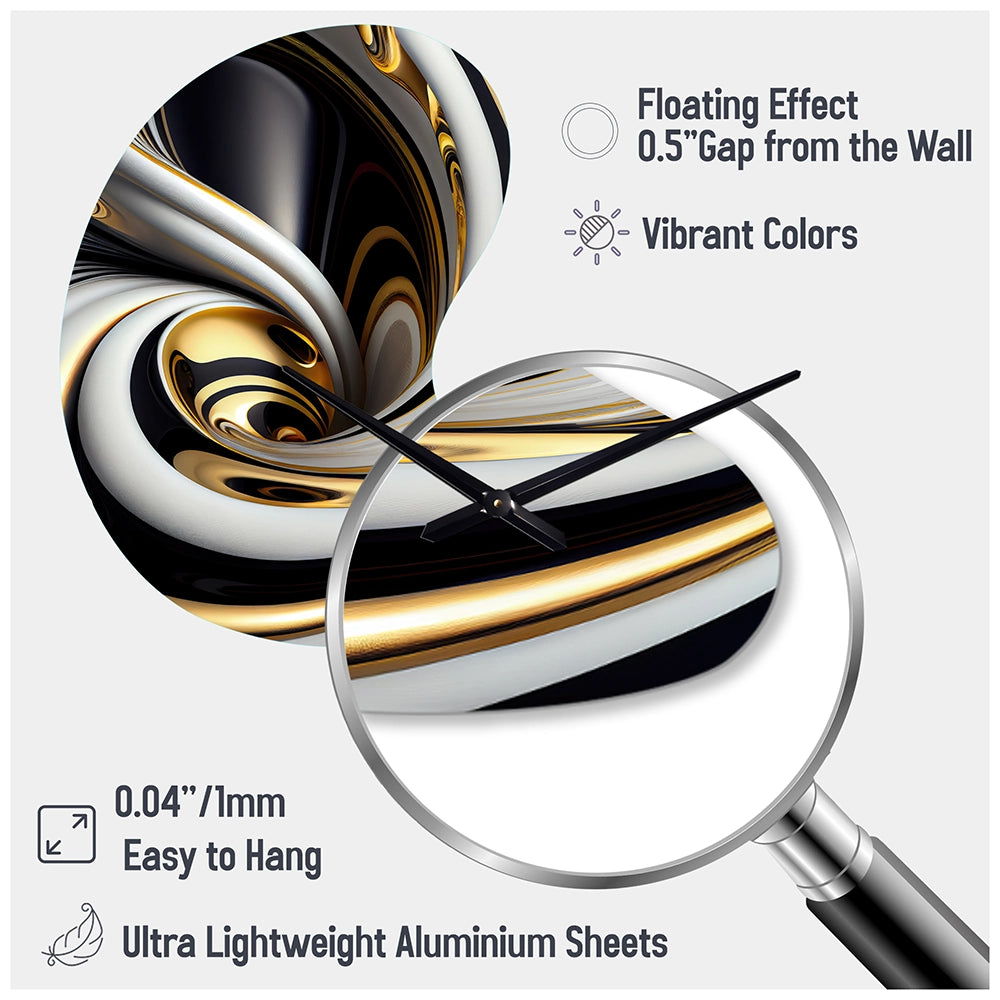Gold Black And White Stained Glass I - Asymmetric Metal Wall Clock