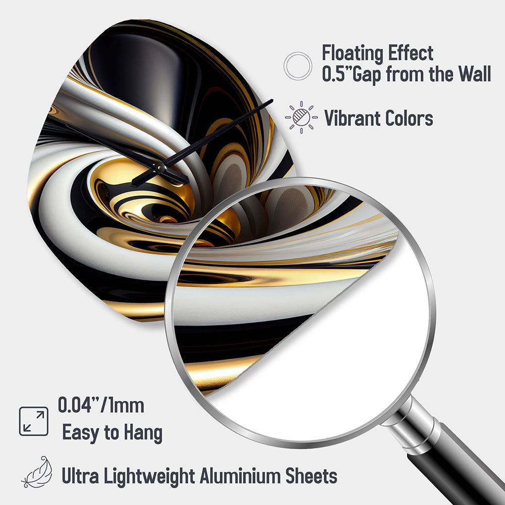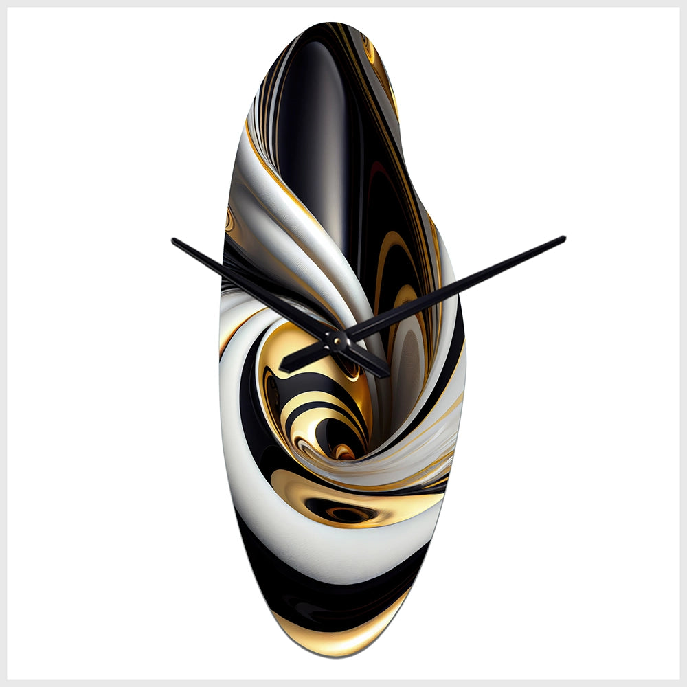 Elevate your space with this Modern asymmetrical metal wall Clock. Our handcrafted metal wall sculptures combine modern design with artistic elegance, creating a striking focal point in any room. This asymmetric metal wall Clock features unique, irregular shapes that bring dynamic movement and depth to your walls. Perfect for Abstract decor, these Gold irregular metal wall sculptures are printed on aluminum panel, with extra gloss ensuring long-lasting beauty. Ideal for living rooms, offices decor, or entrance, this statement piece adds a bold, Abstract touch to any decor.
