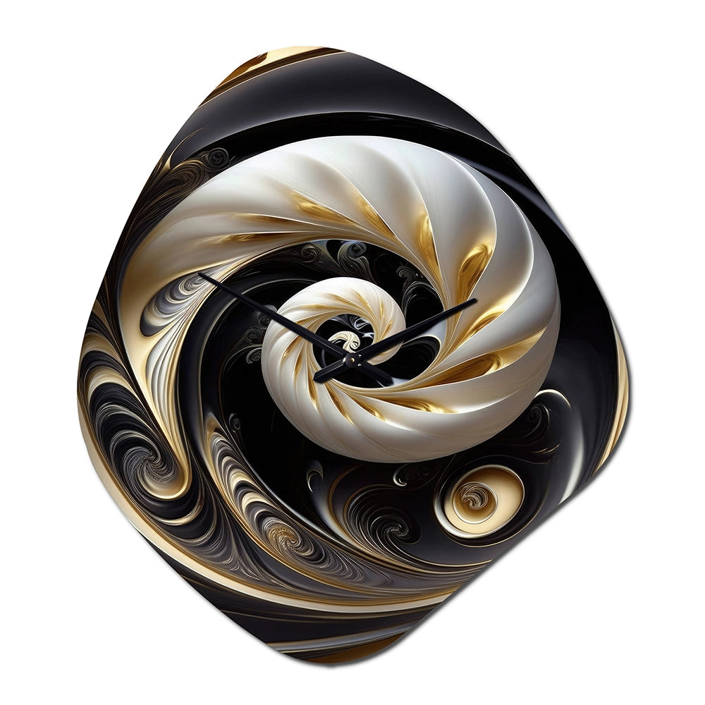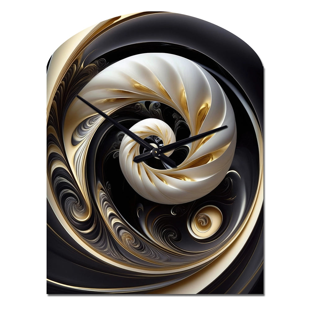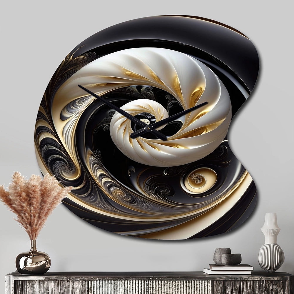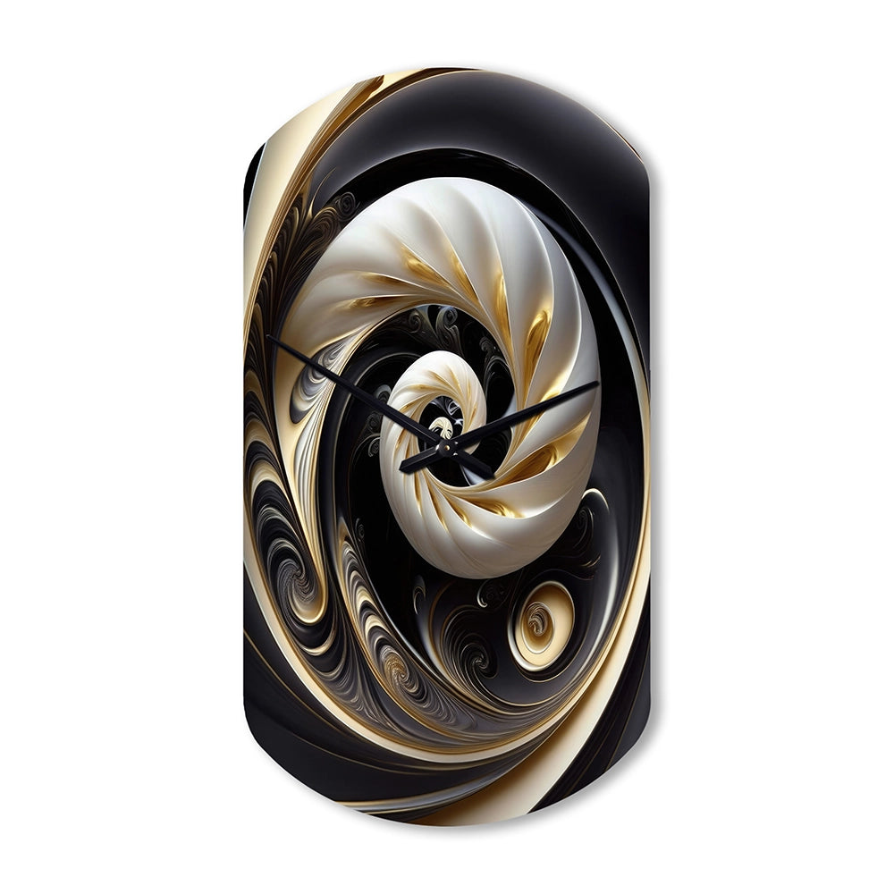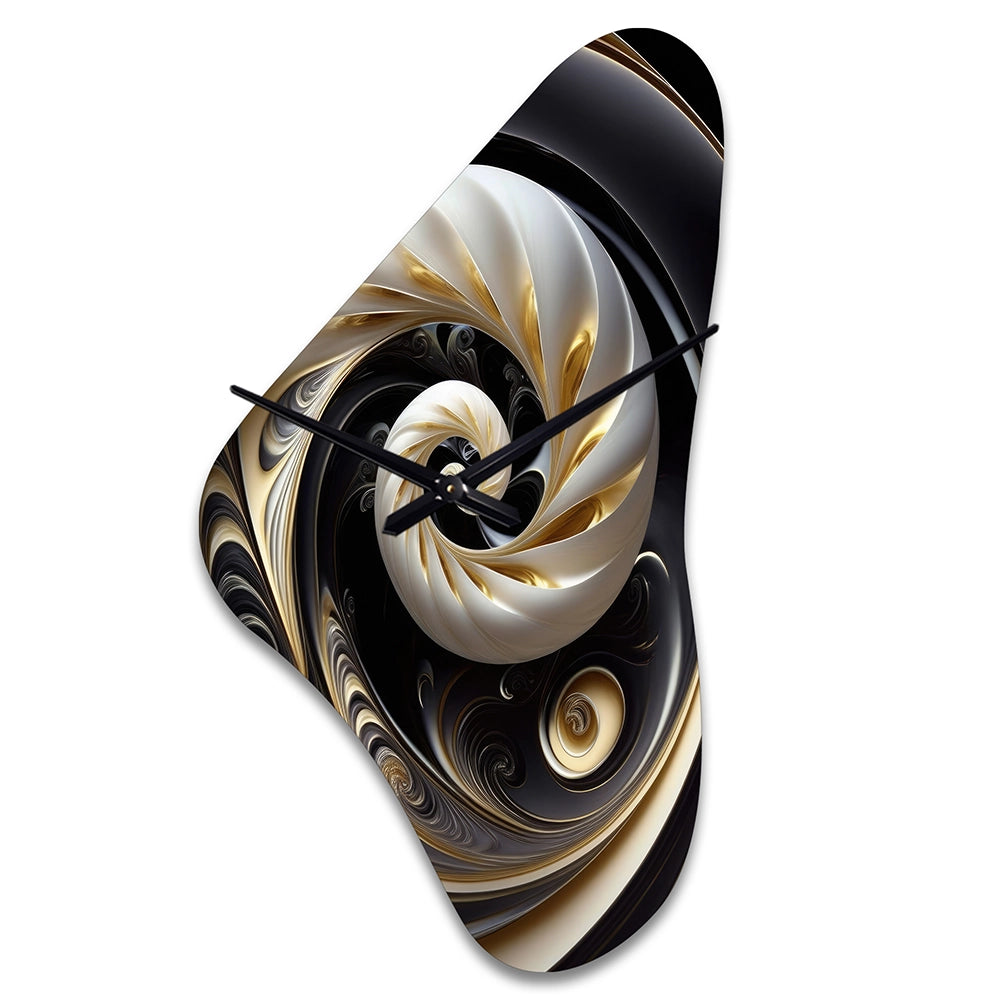Gold Black And White Stained Glass V - Asymmetric Metal Wall Clock
