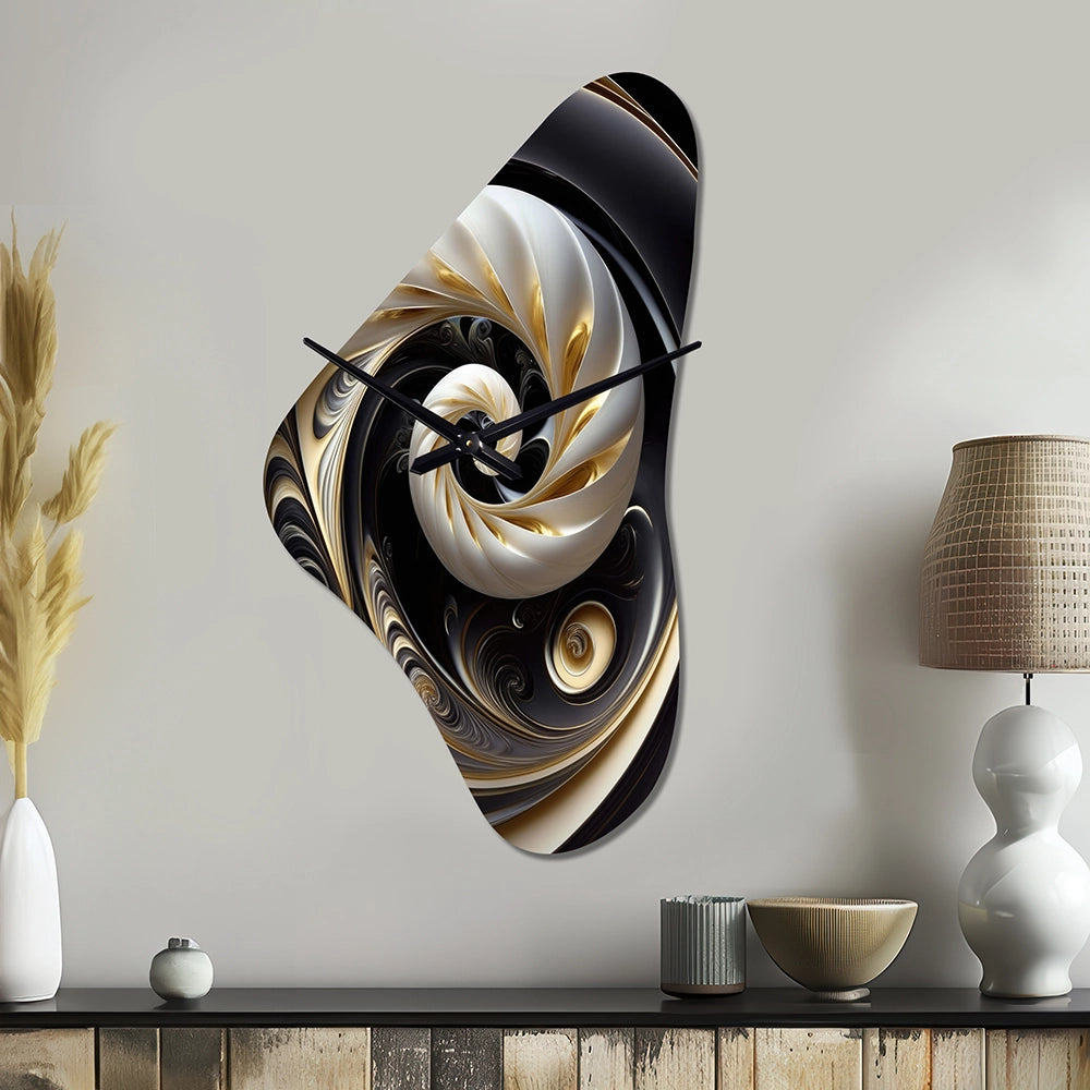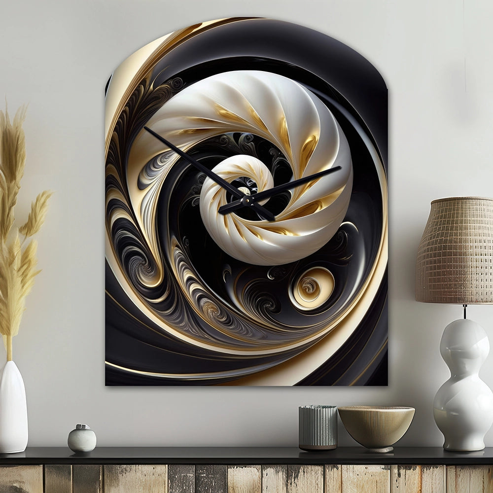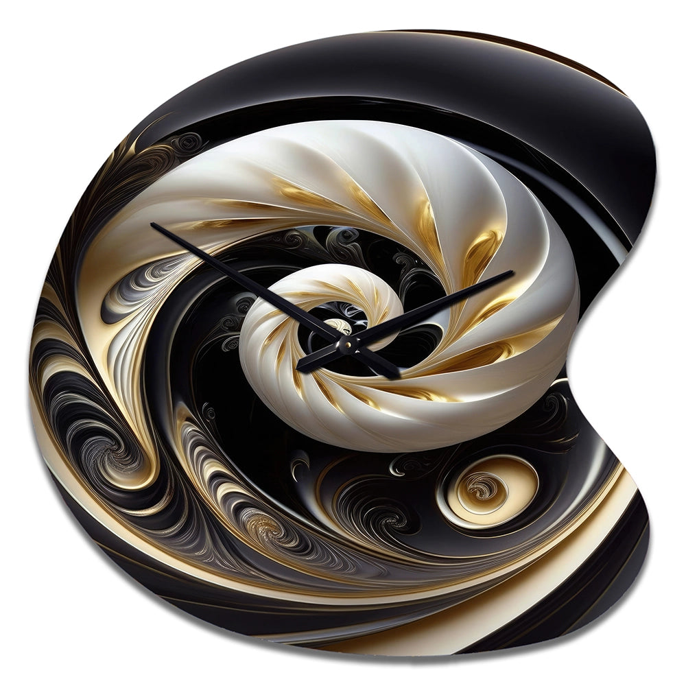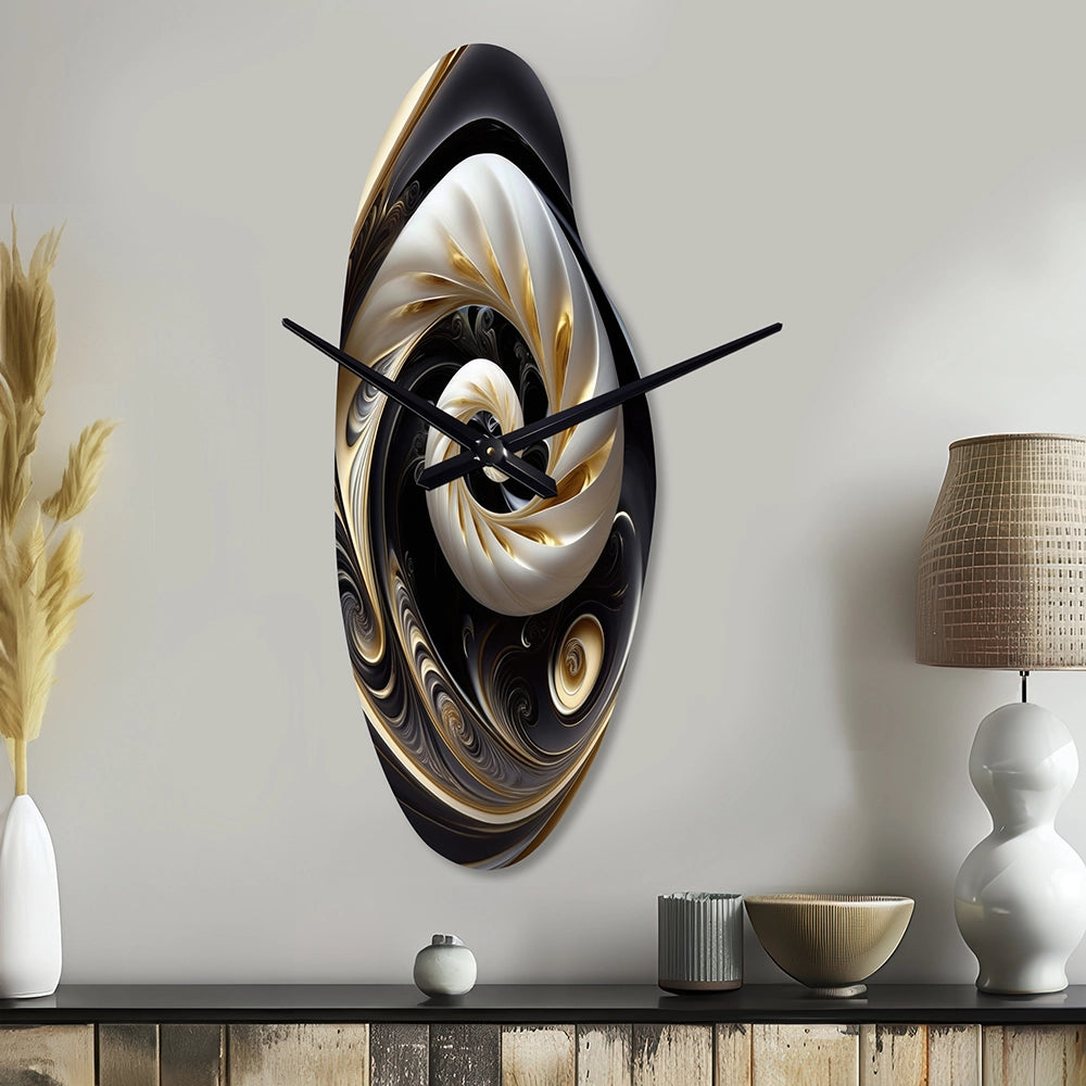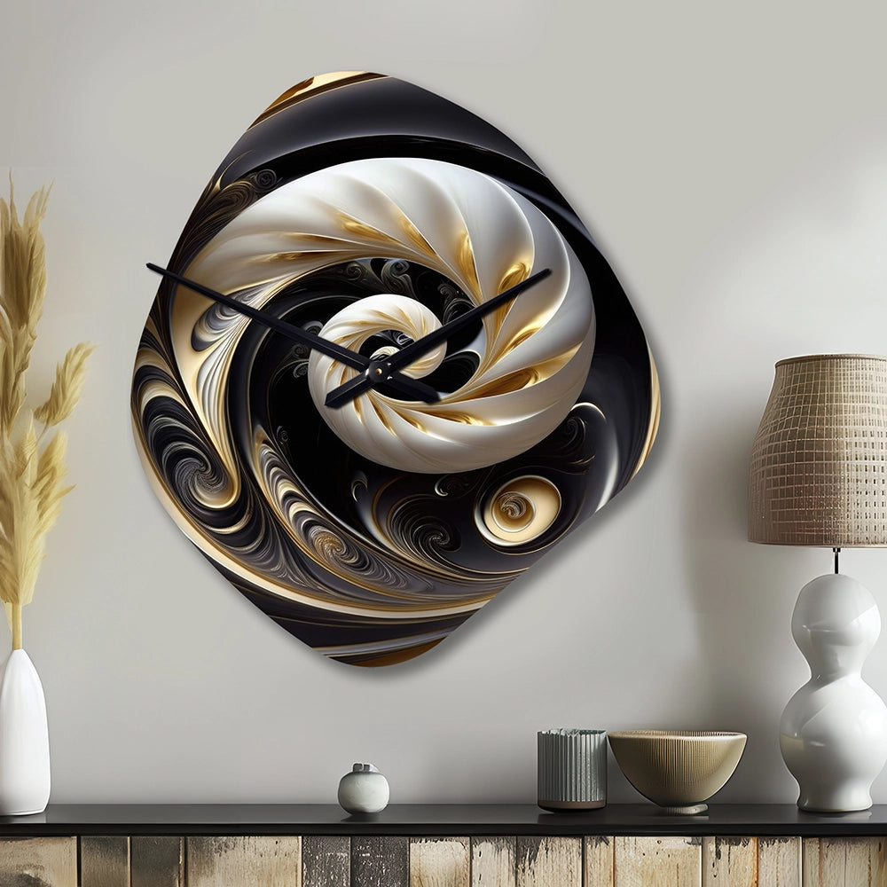 Gold Black And White Stained Glass V - Asymmetric Metal Wall Clock