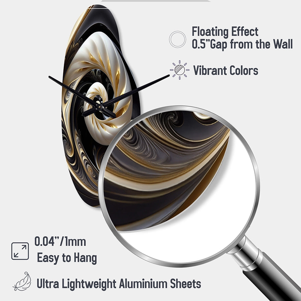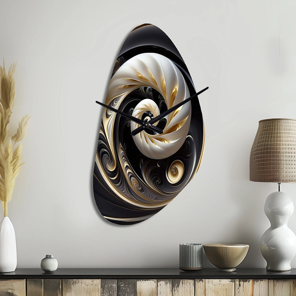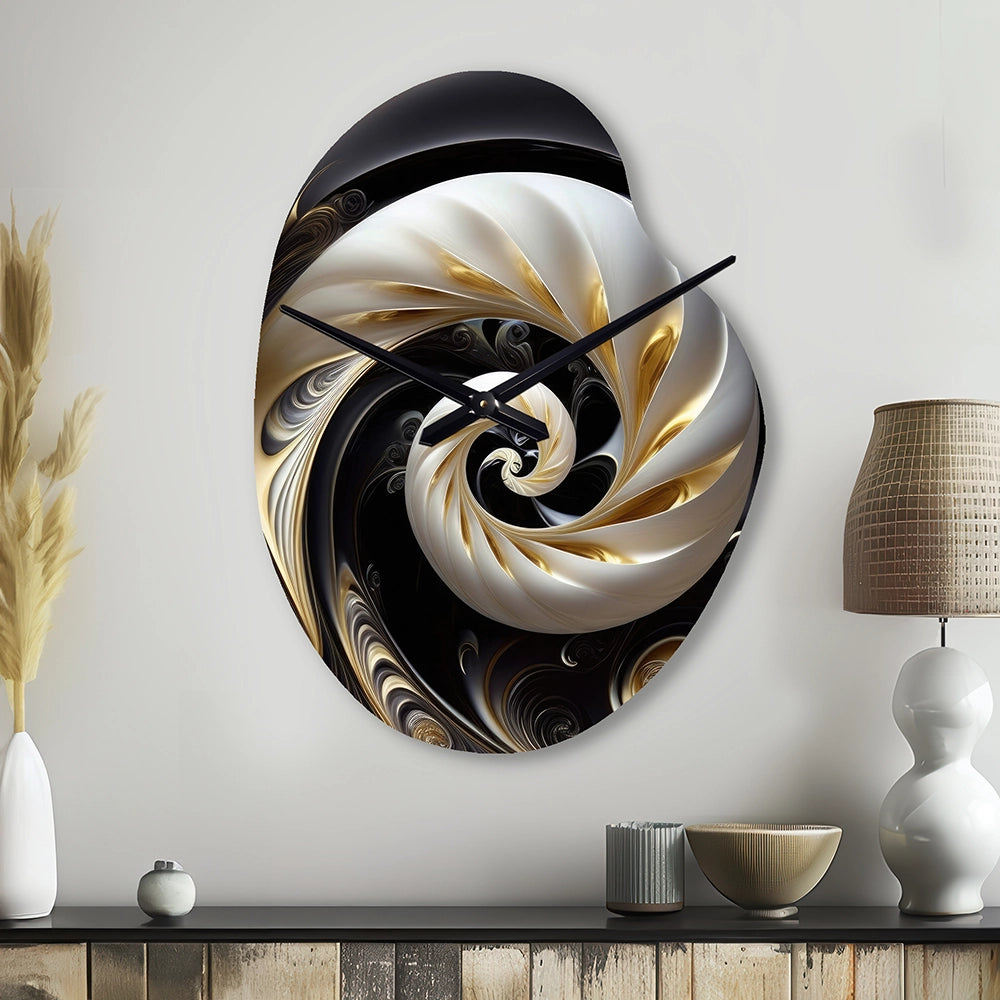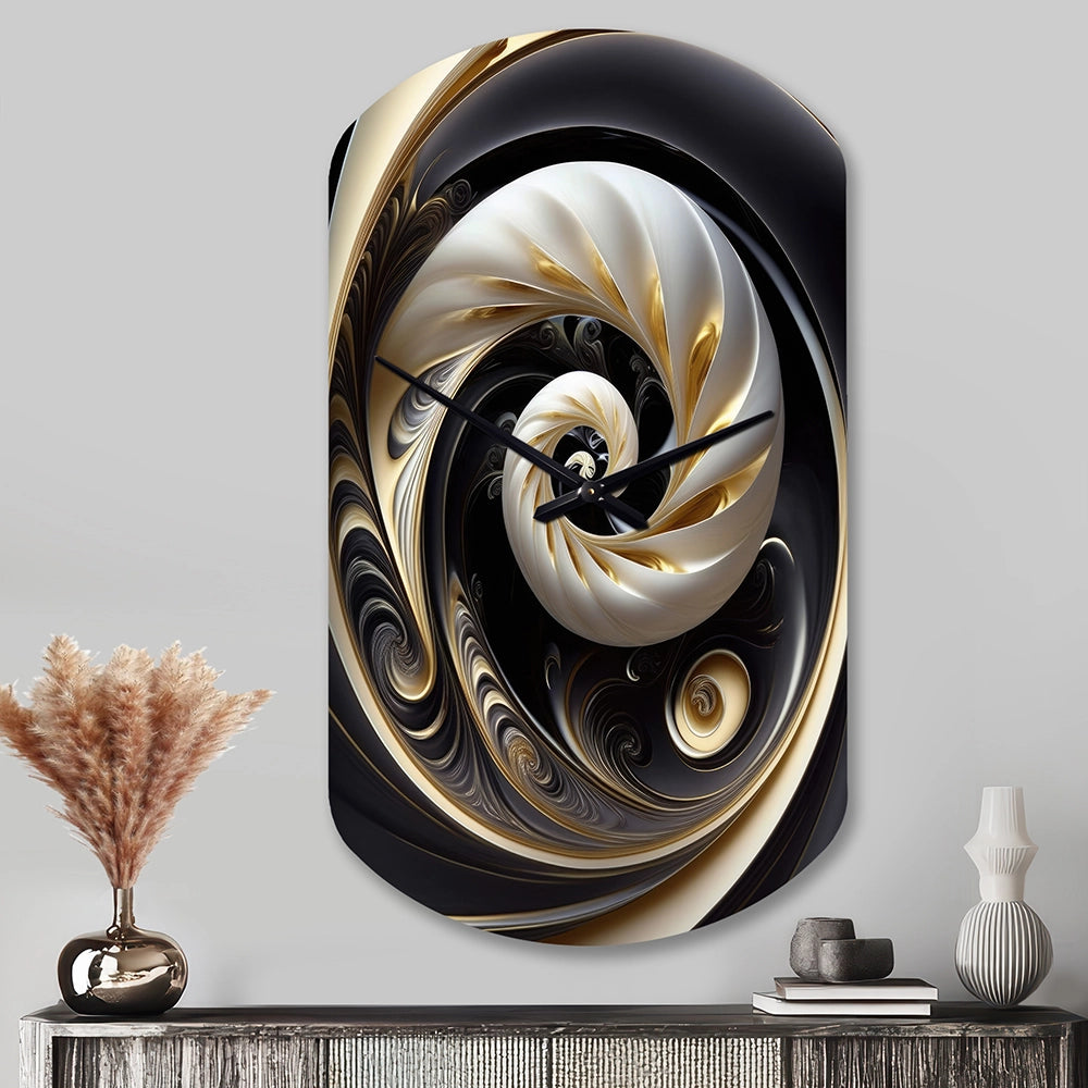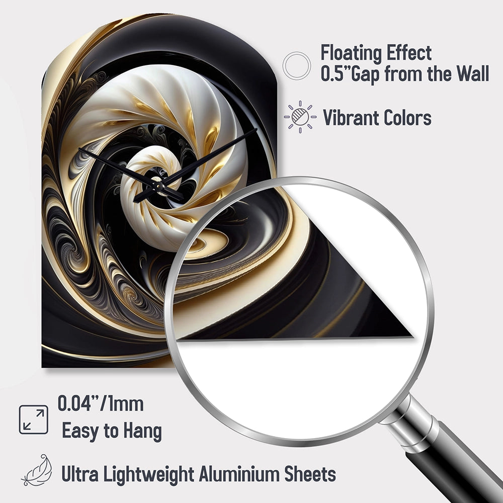 Gold Black And White Stained Glass V - Asymmetric Metal Wall Clock