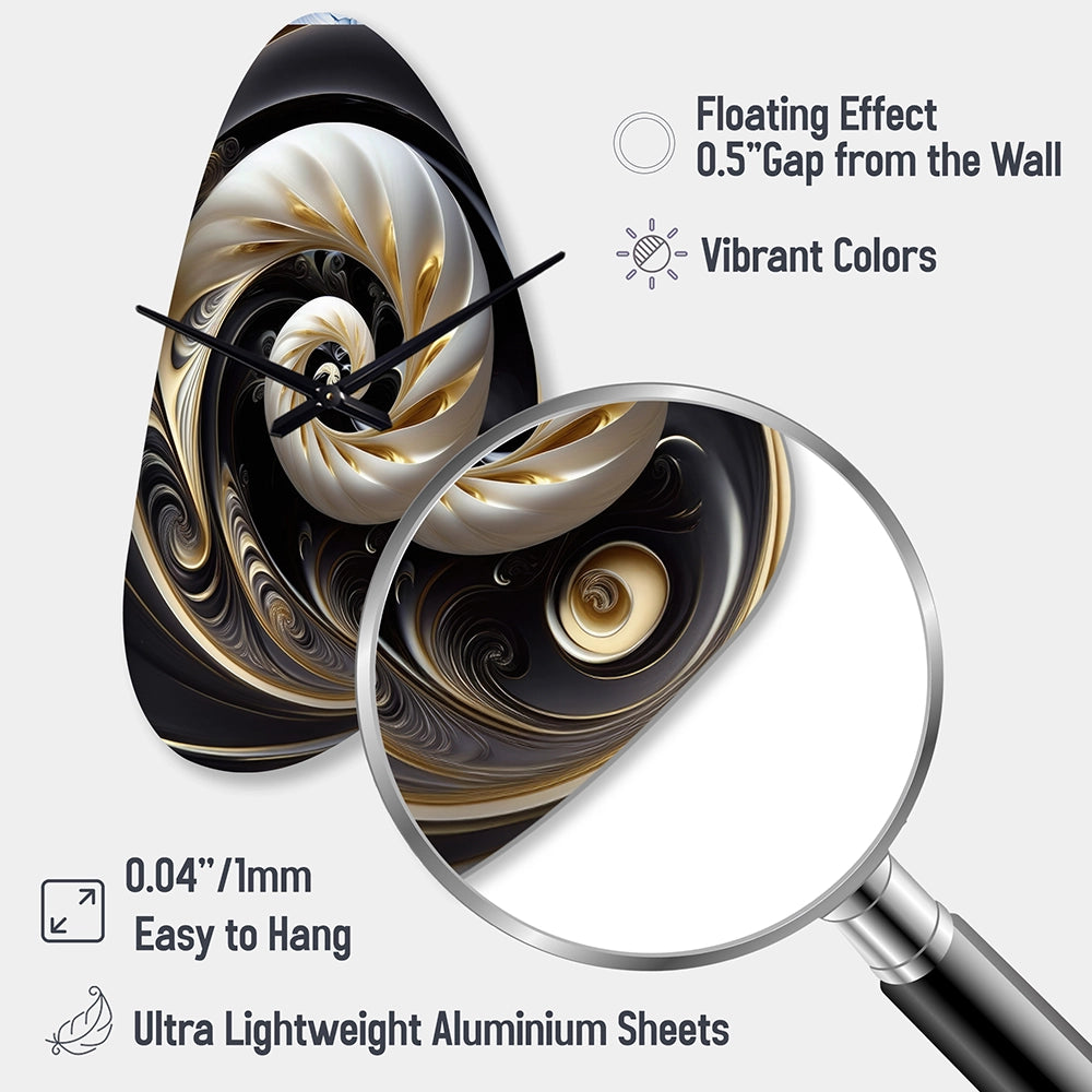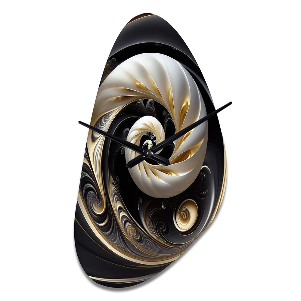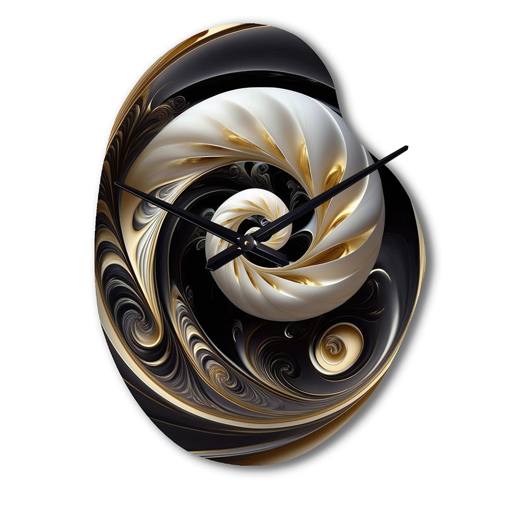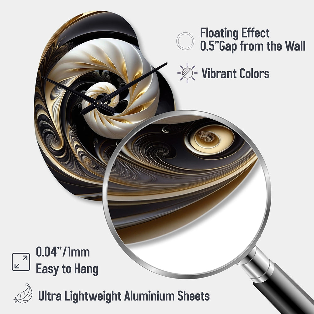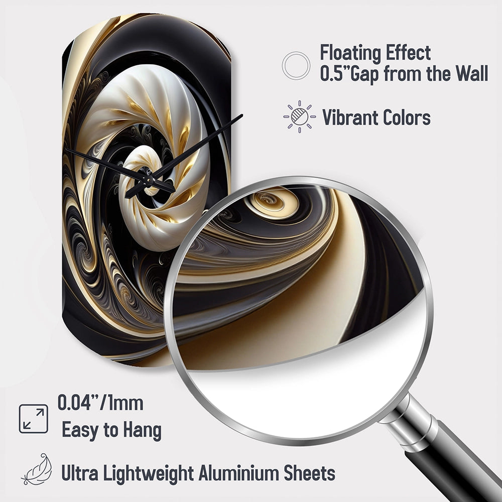 Gold Black And White Stained Glass V - Asymmetric Metal Wall Clock
