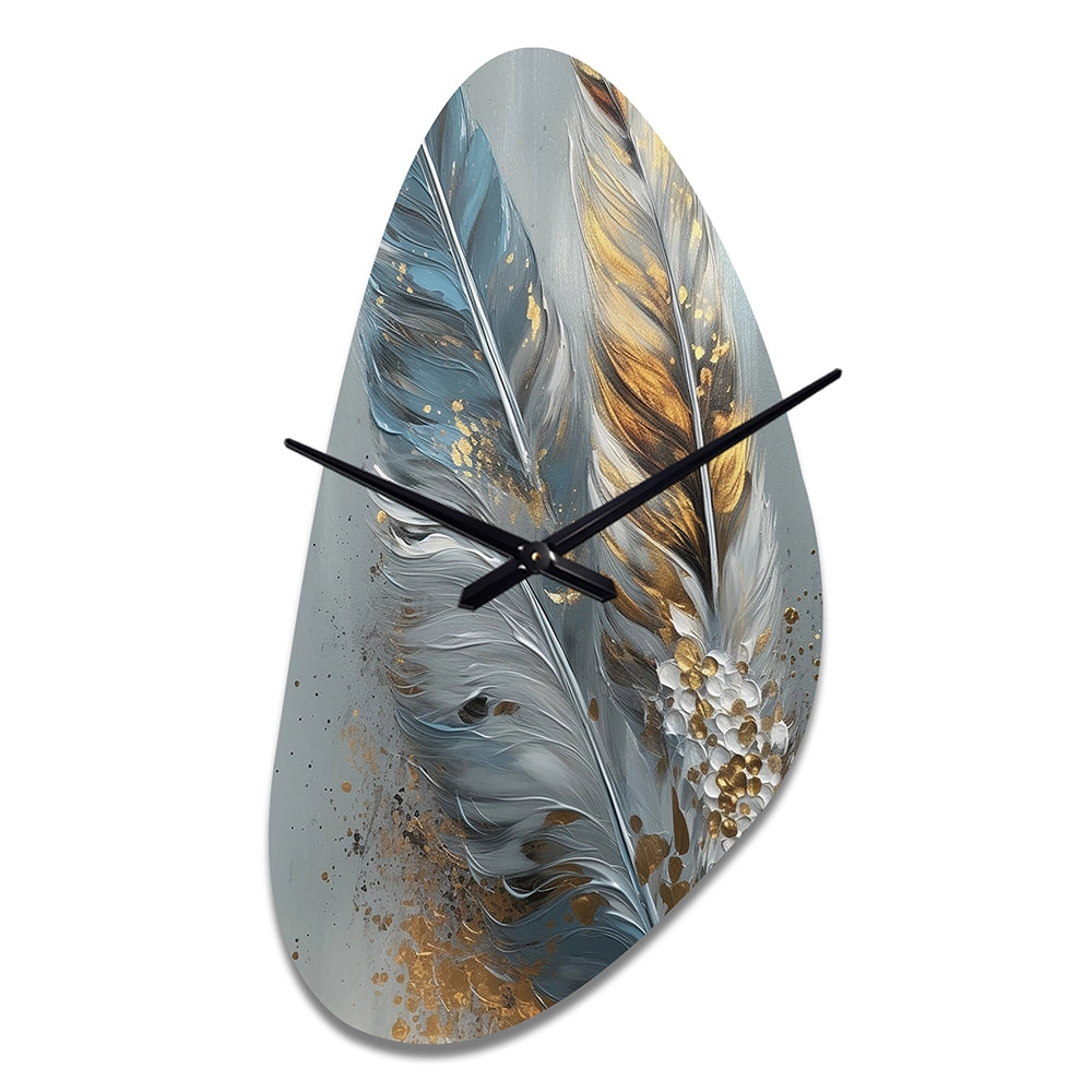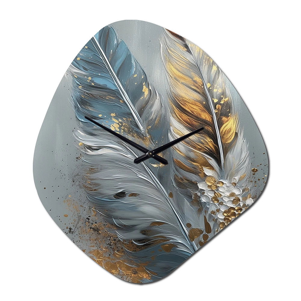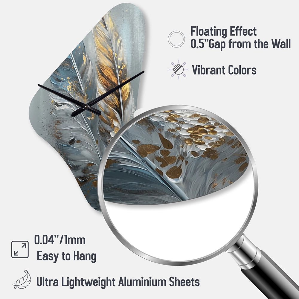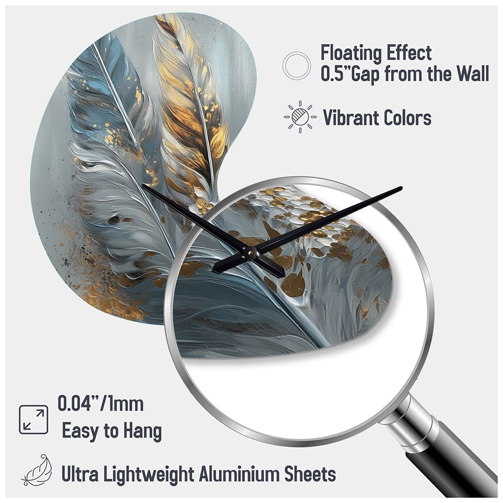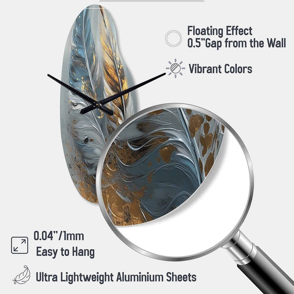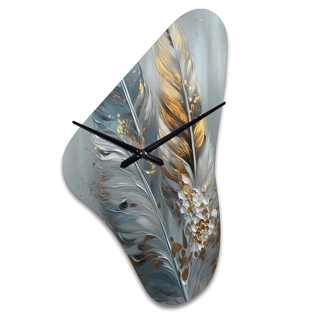 Gold Feather Wanderlust I - Asymmetric Metal Wall Clock