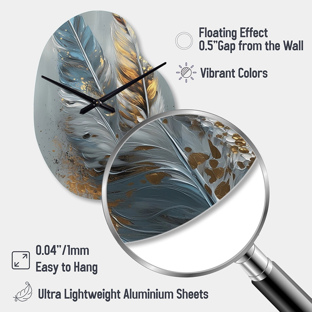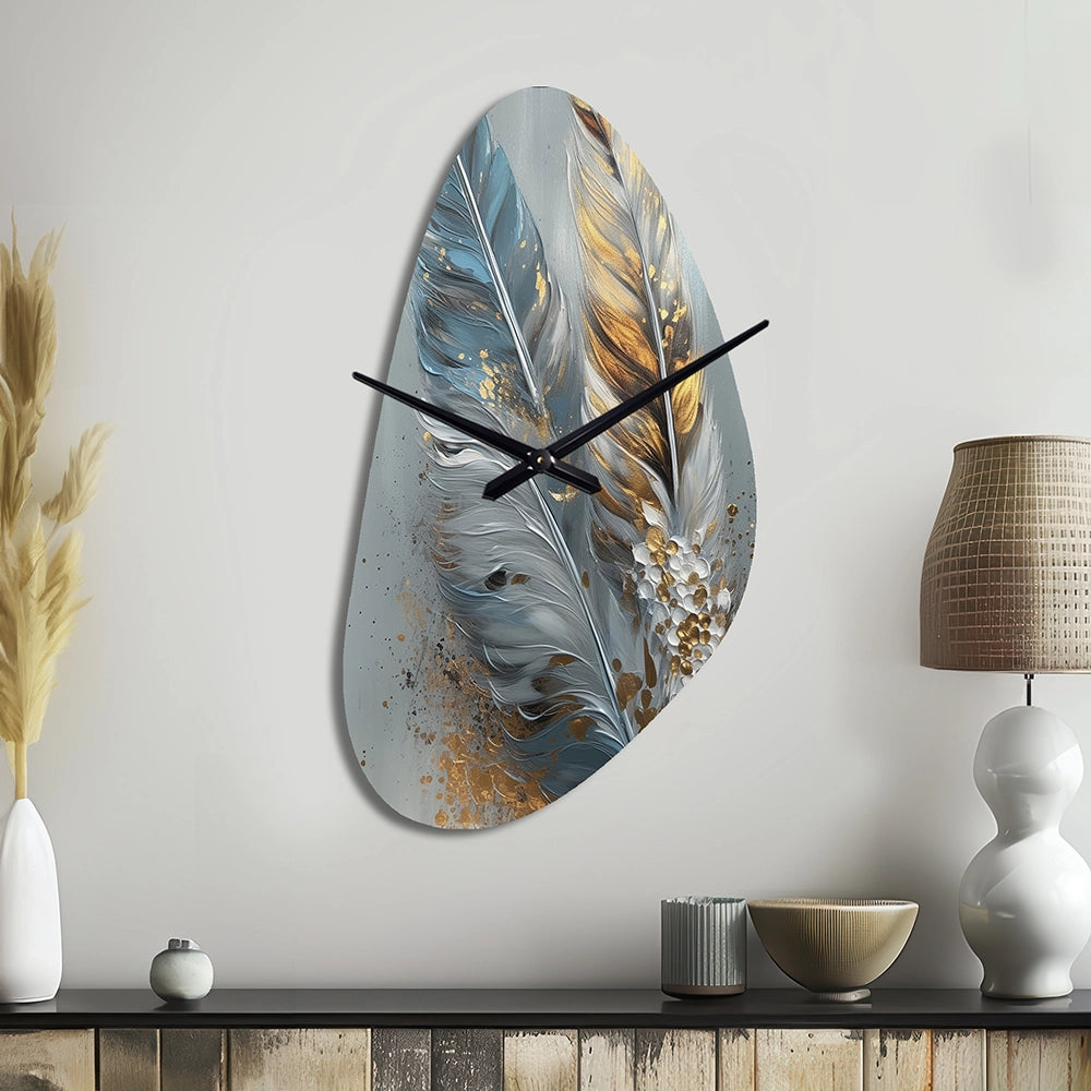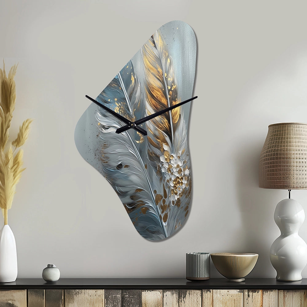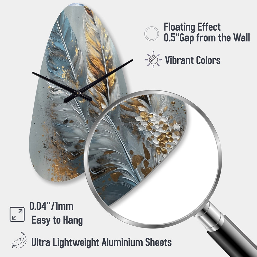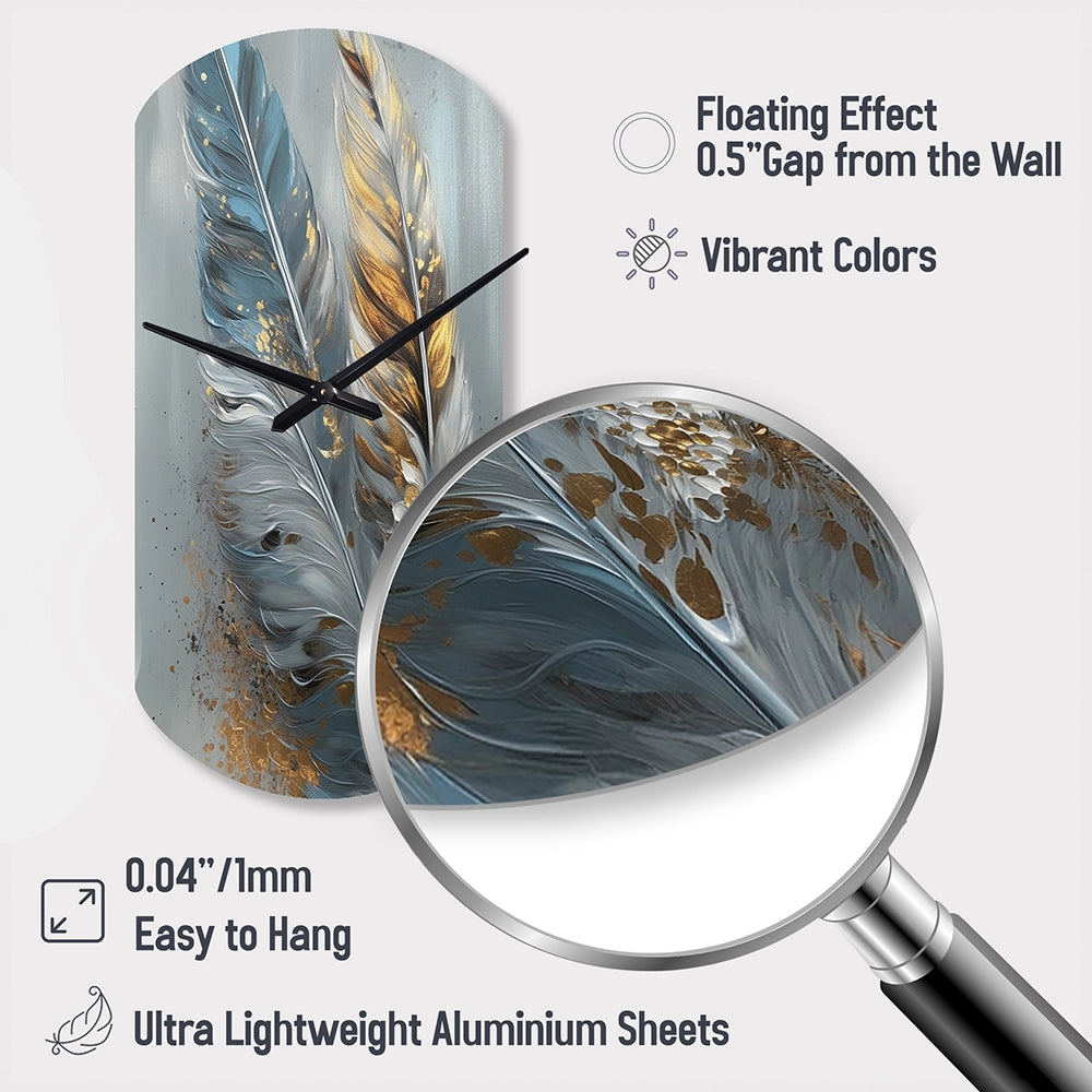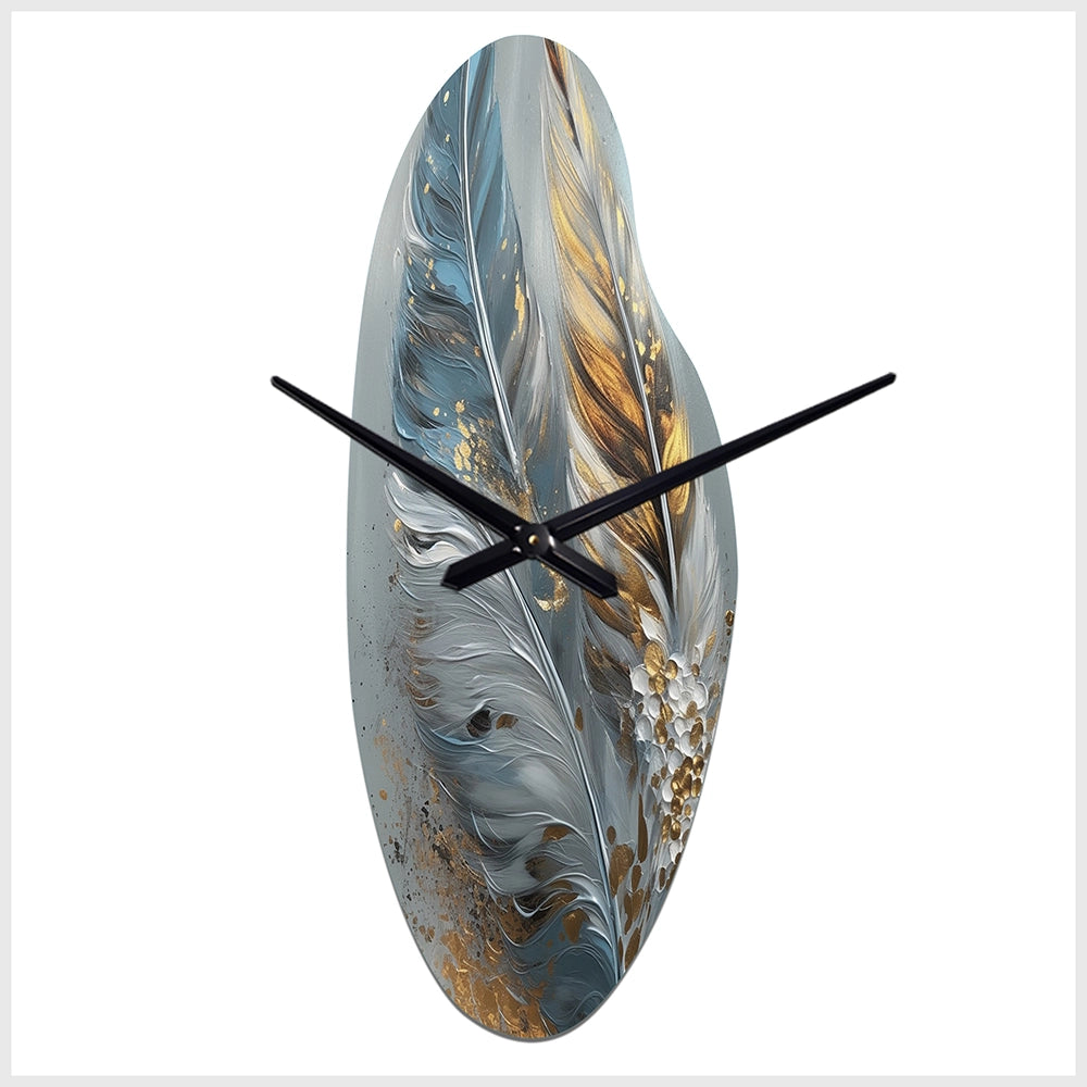 Gold Feather Wanderlust I - Asymmetric Metal Wall Clock